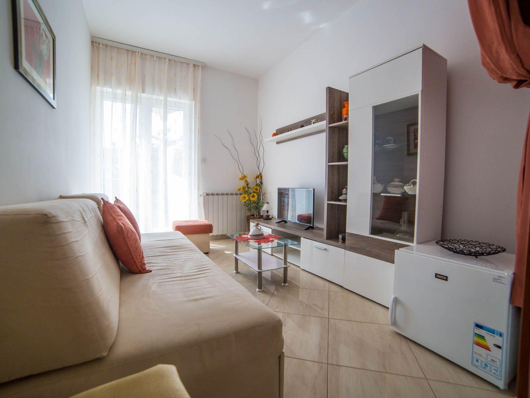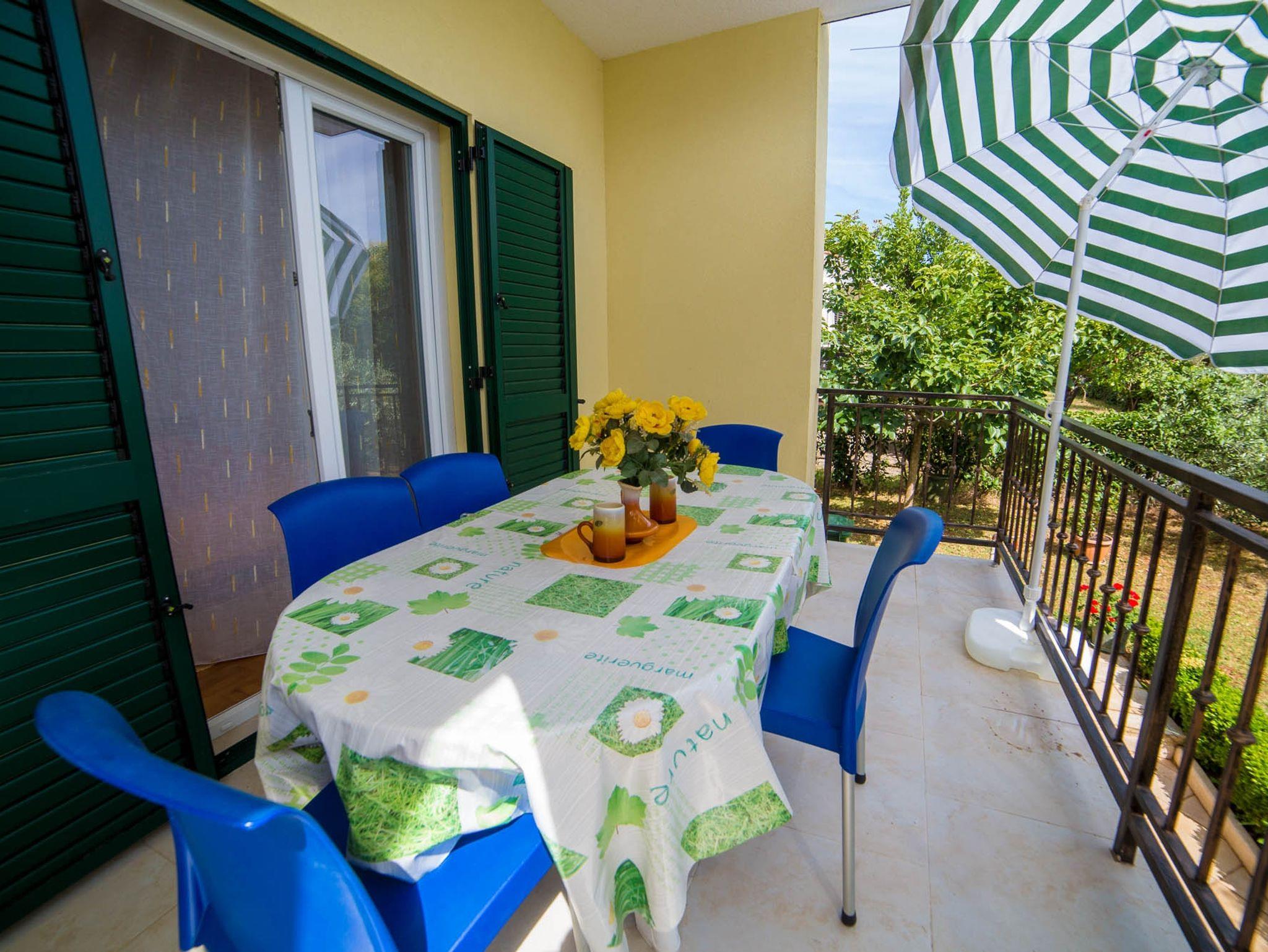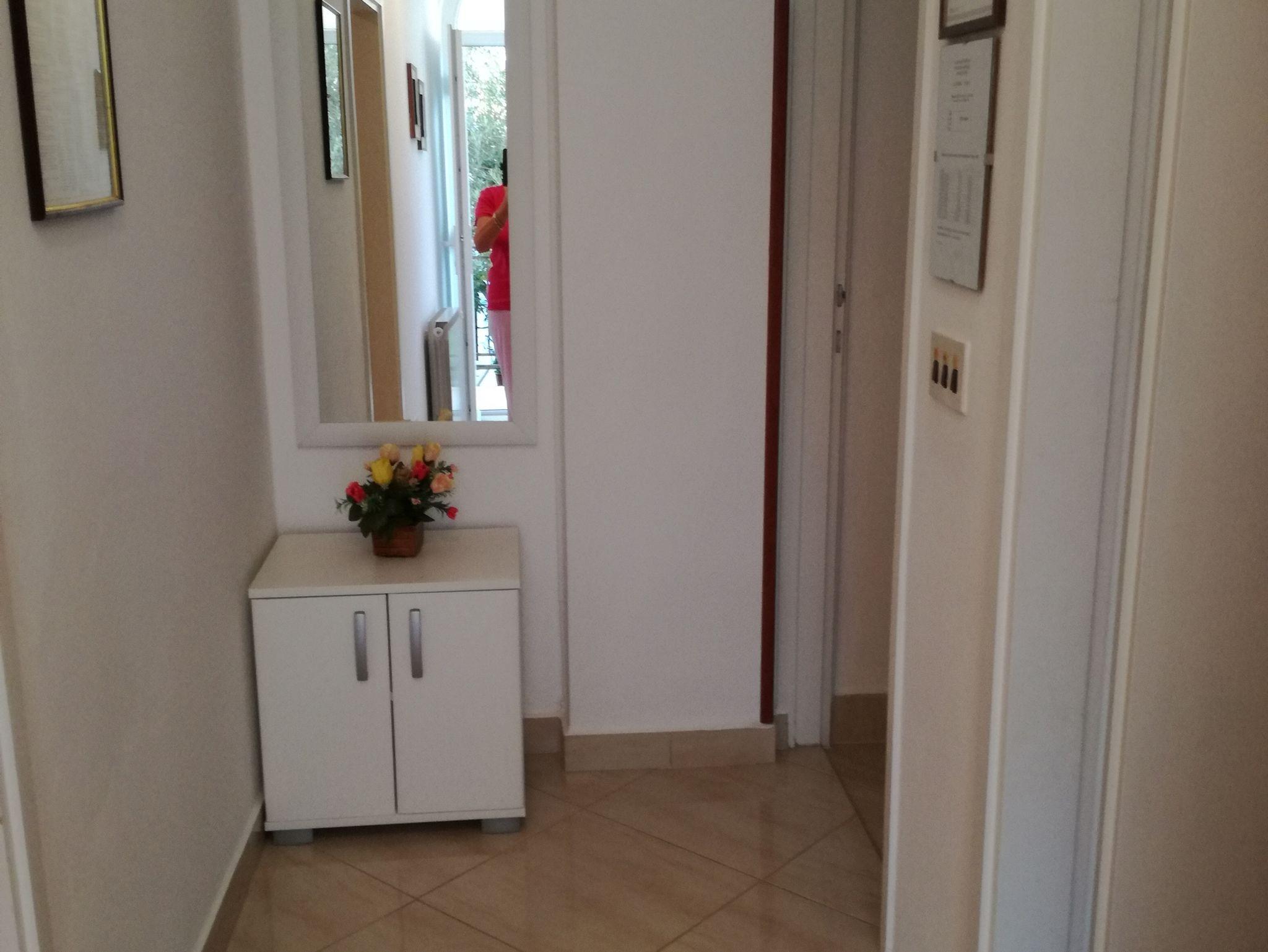 Ferienwohnung bietet Platz für 4 Gäste. Die Betten sind in Schlafzimmern, die es 2 gibt, innerhalb einer Gesamtfläche von 61m2, angeordnet. Die Gäste haben eine eigene Terrasse zur Verfügung, auf der sie in warmen Sommernächten genießen können. Es ist erlaubt, Speisen auf dem Gemeinschafts-Grill vorzubereiten. In der Unterkunftseinheit besteht die Möglichkeit des Mitbringens von Haustieren gegen Aufpreis. IM PREIS INBEGRIFFEN: Kurtaxe, Endreinigung, Klimatisierung, Parkplatz, Internet, Kinderbett, Bügeleisen, Bügelbrett, Föhn. VERBINDLICHE ZUSÄTZLICHE KOSTEN: Aufzahlung für Kurzaufenthalte (prozentualer Zuschlag pro Nächtigungsanzahl: 30% - 1, 20% - 2, 10% - 3). UNVERBINDLICHE ZUSÄTZLICHE KOSTEN: Wäschewaschen (5,00 € Waschen), Haustiere (12,00 € pro Nacht). Die Verfügbarkeit zusätzlicher Dienstleistungen in Ihrem reservierten Termin und die Preise derselben (falls nicht aufgeführt) müssen im Voraus überprüft werden. Zusätzliche Dienstleistungen die in der Zahlungsaufforderung nicht aufgeführt sind werden direkt beim Vermieter bezahlt, angenommen der Gast nutzt auch diese.