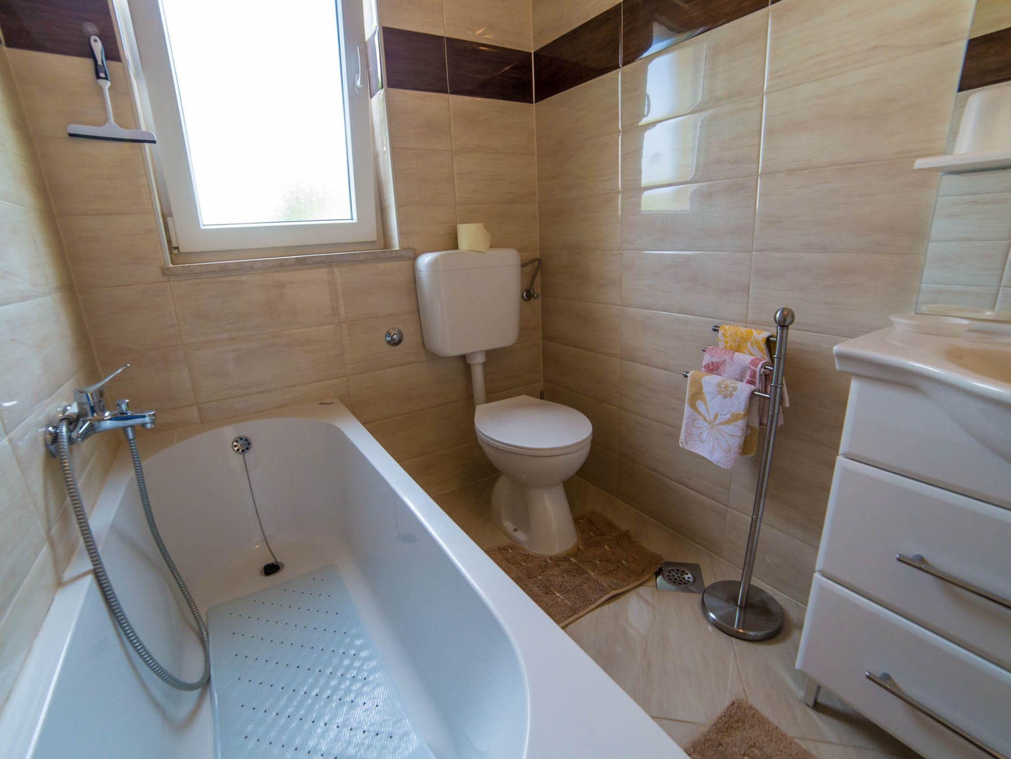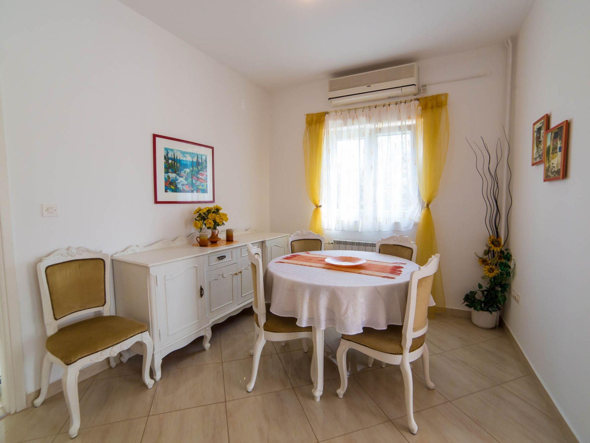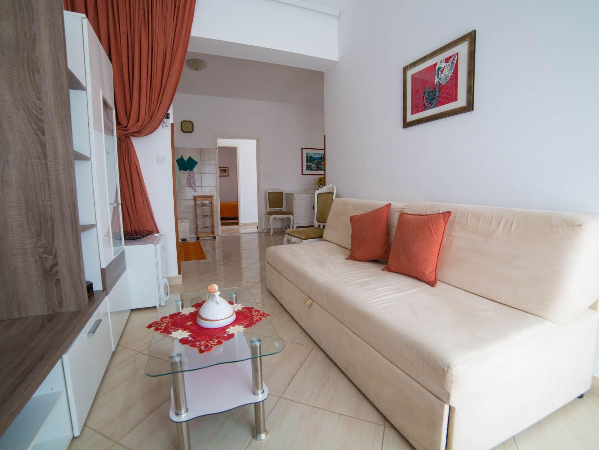 Ferienwohnung bietet Platz für 4 Gäste. Die Betten sind in Schlafzimmern, die es 2 gibt, innerhalb einer Gesamtfläche von 61m2, angeordnet. Die Gäste haben eine eigene Terrasse zur Verfügung, auf der sie in warmen Sommernächten genießen können. Es ist erlaubt, Speisen auf dem Gemeinschafts-Grill vorzubereiten. In der Unterkunftseinheit besteht die Möglichkeit des Mitbringens von Haustieren gegen Aufpreis. IM PREIS INBEGRIFFEN: Kurtaxe, Endreinigung, Klimatisierung, Parkplatz, Internet, Kinderbett, Bügeleisen, Bügelbrett, Föhn. VERBINDLICHE ZUSÄTZLICHE KOSTEN: Aufzahlung für Kurzaufenthalte (prozentualer Zuschlag pro Nächtigungsanzahl: 30% - 1, 20% - 2, 10% - 3). UNVERBINDLICHE ZUSÄTZLICHE KOSTEN: Wäschewaschen (5,00 € Waschen), Haustiere (12,00 € pro Nacht). Die Verfügbarkeit zusätzlicher Dienstleistungen in Ihrem reservierten Termin und die Preise derselben (falls nicht aufgeführt) müssen im Voraus überprüft werden. Zusätzliche Dienstleistungen die in der Zahlungsaufforderung nicht aufgeführt sind werden direkt beim Vermieter bezahlt, angenommen der Gast nutzt auch diese.