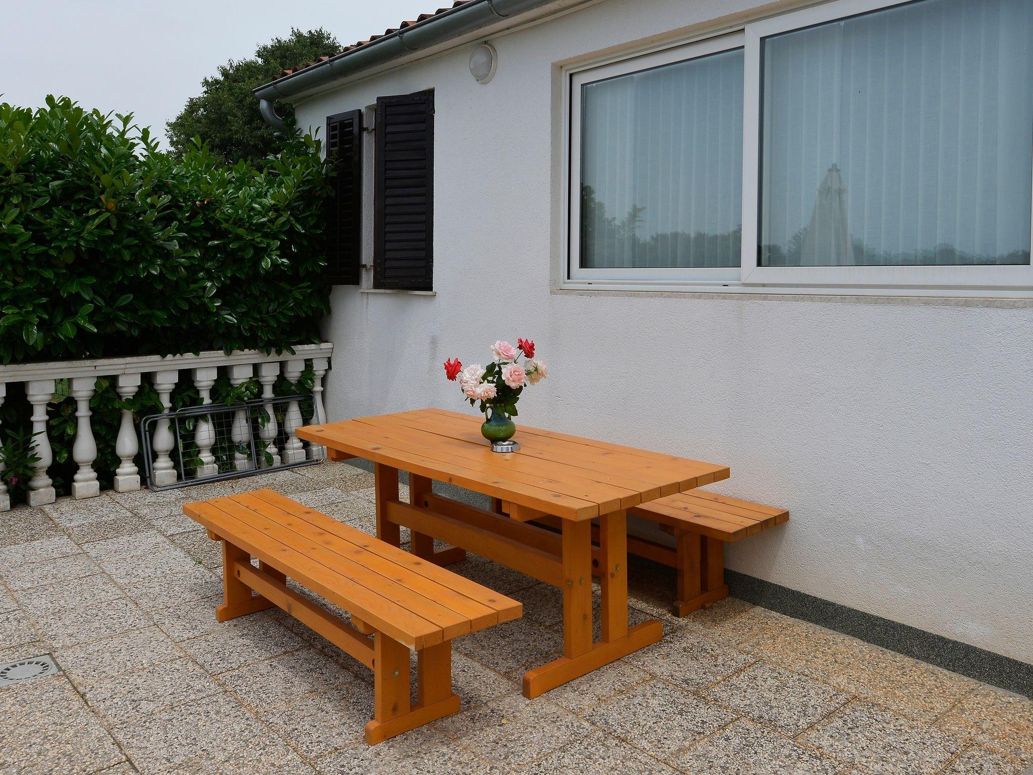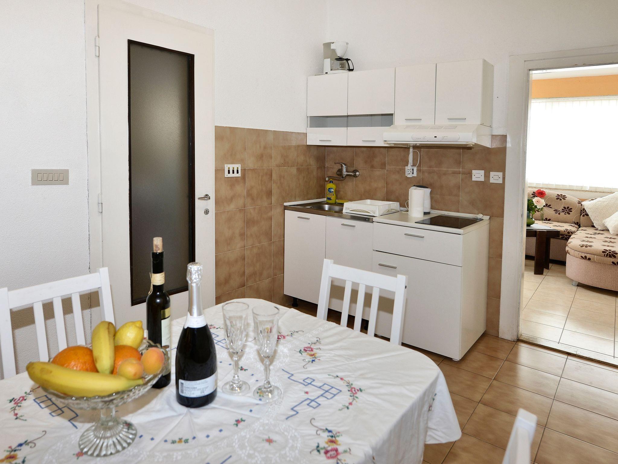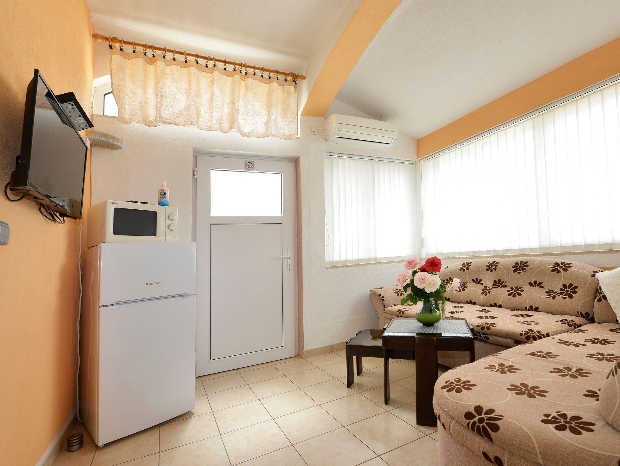 Ferienwohnung bietet Platz für 5 Gäste. Die Betten sind in Schlafzimmern, die es 2 gibt, und in Wohnzimmer, innerhalb einer Gesamtfläche von 46m2, angeordnet. Die Gäste haben eine eigene Terrasse zur Verfügung, auf der sie in warmen Sommernächten genießen können. Es ist erlaubt, Speisen auf dem Gemeinschafts-Grill vorzubereiten. Während ihres Aufenthalts können Gäste das gemeinsam zur Nutzung stehende Schwimmbad benutzen. In der Unterkunftseinheit besteht die Möglichkeit des Mitbringens von Haustieren gegen Aufpreis. In der gebuchten Unterkunftseinheit zahlt man am Ort ein Depositum ( der Preis ist an der Internetseite angeführt ). IM PREIS INBEGRIFFEN: Kurtaxe, Endreinigung, Klimatisierung, Pool, Parkplatz, Internet, Kinderbett, Bügeleisen, Bügelbrett, Föhn, tragbarer Grill, Sonnenschirm, Liegestühle. VERBINDLICHE ZUSÄTZLICHE KOSTEN: Kaution (100,00 € Einmalzahlung). UNVERBINDLICHE ZUSÄTZLICHE KOSTEN: Wäschewaschen (5,00 € Waschen), Haustiere (10,00 € pro Nacht). Die Verfügbarkeit zusätzlicher Dienstleistungen in Ihrem reservierten Termin und die Preise derselben (falls nicht aufgeführt) müssen im Voraus überprüft werden. Zusätzliche Dienstleistungen die in der Zahlungsaufforderung nicht aufgeführt sind werden direkt beim Vermieter bezahlt, angenommen der Gast nutzt auch diese. Ermäßigung auf den Grundpreis: Gratistag 14=13 (bei einem Aufenthalt von 14 Tagen oder mehr erhalten Sie einen Gratistag für den Aufenthalt bis 31.12.26).
