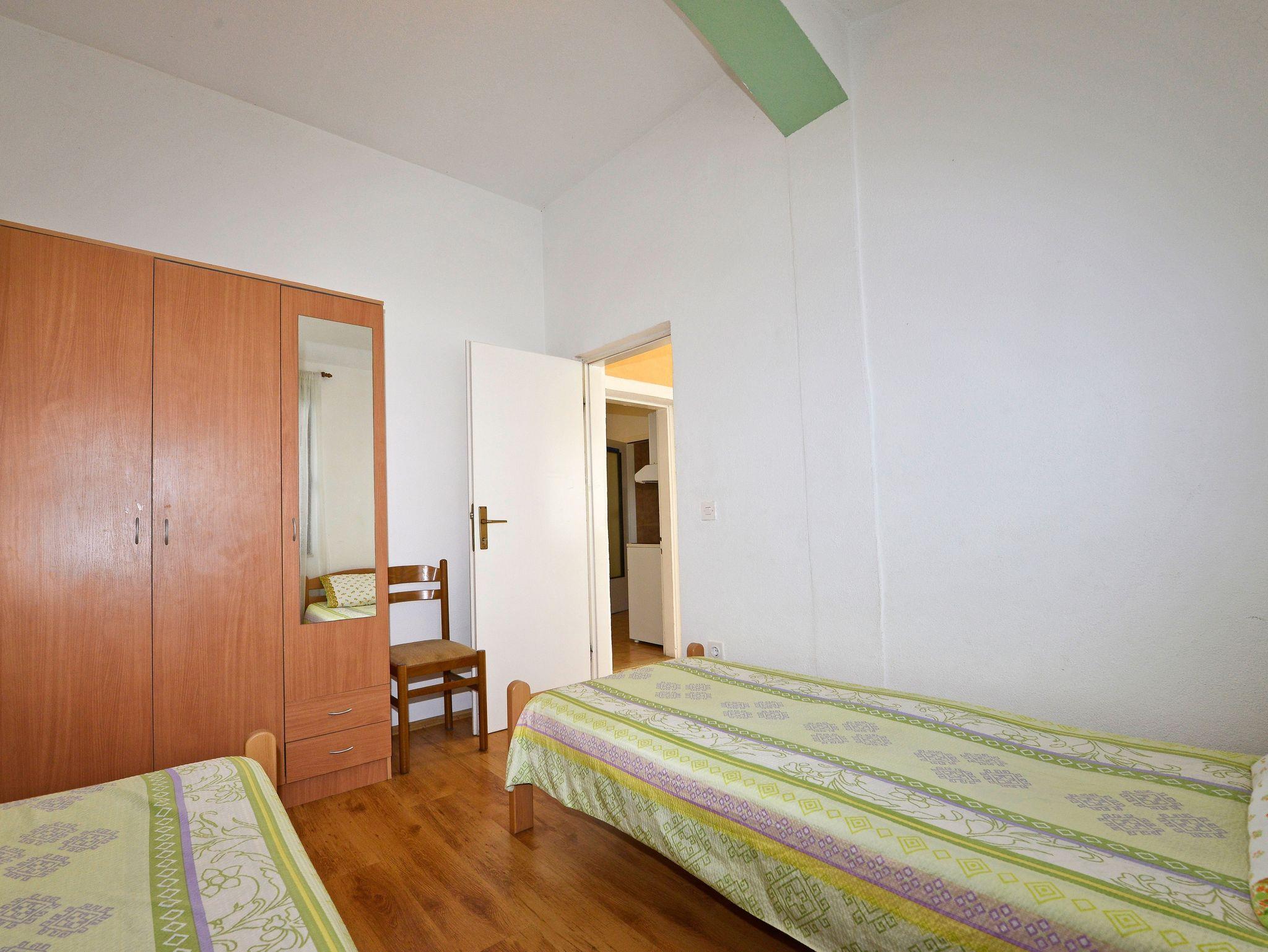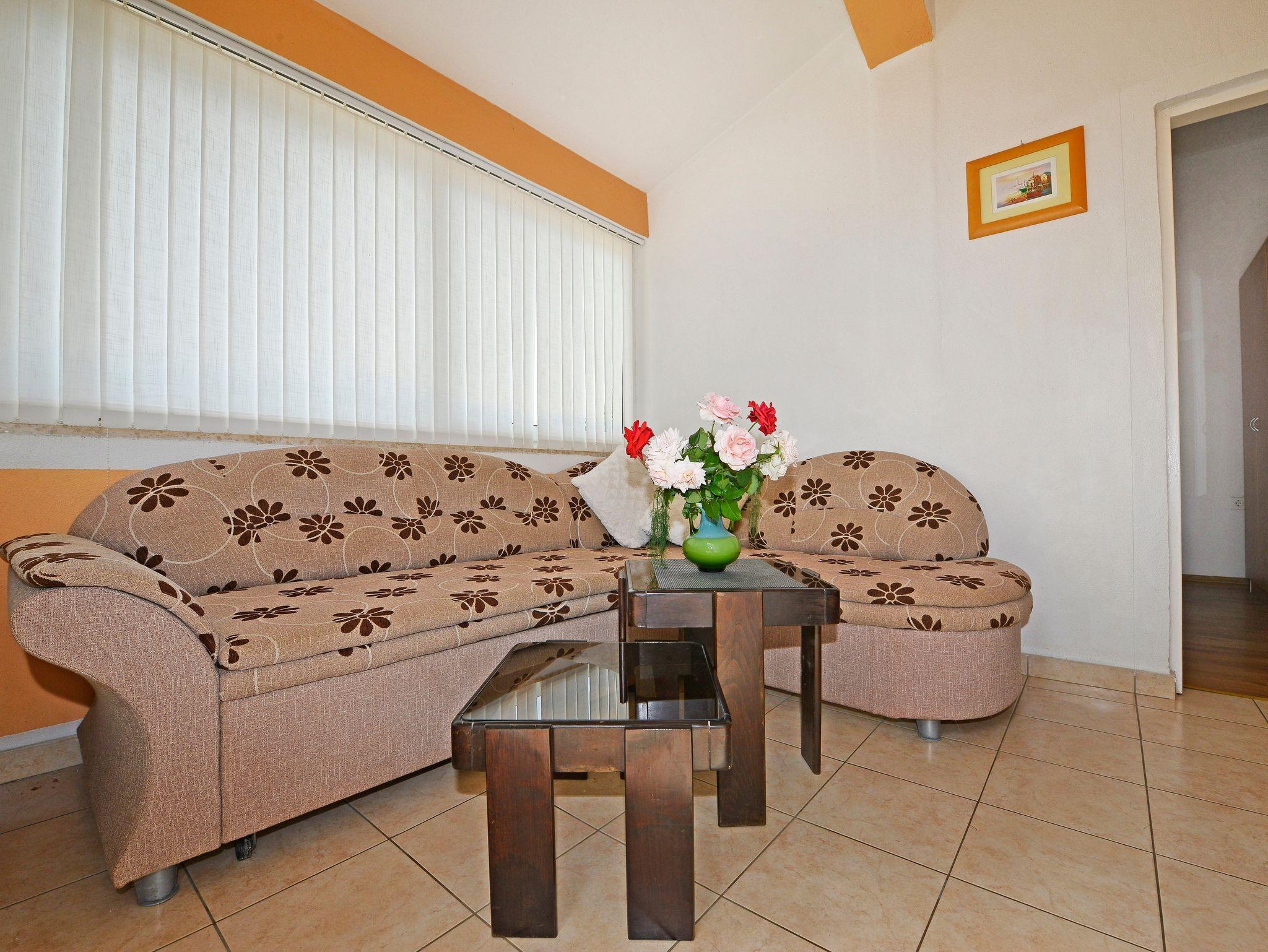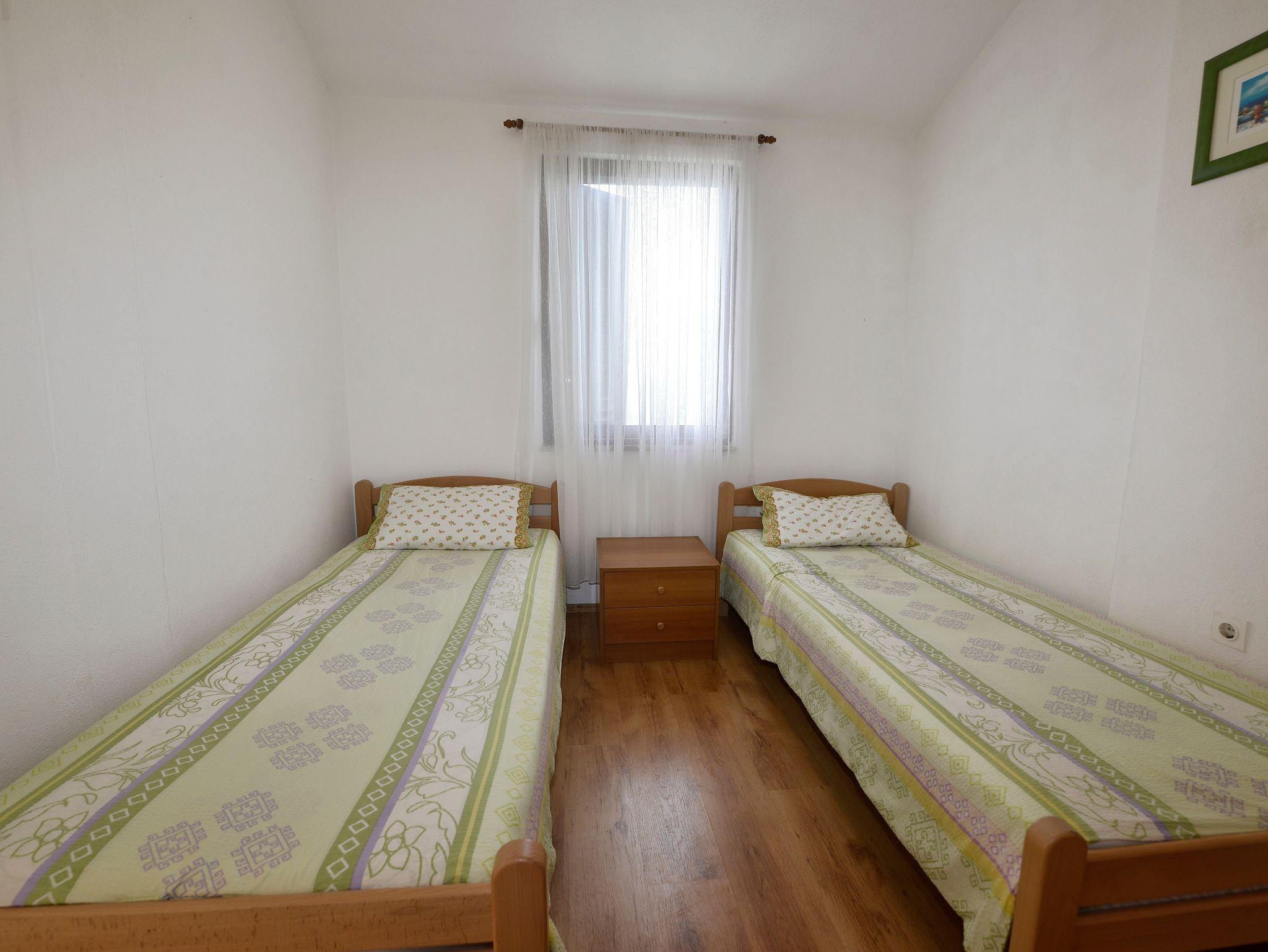 Ferienwohnung bietet Platz für 5 Gäste. Die Betten sind in Schlafzimmern, die es 2 gibt, und in Wohnzimmer, innerhalb einer Gesamtfläche von 46m2, angeordnet. Die Gäste haben eine eigene Terrasse zur Verfügung, auf der sie in warmen Sommernächten genießen können. Es ist erlaubt, Speisen auf dem Gemeinschafts-Grill vorzubereiten. Während ihres Aufenthalts können Gäste das gemeinsam zur Nutzung stehende Schwimmbad benutzen. In der Unterkunftseinheit besteht die Möglichkeit des Mitbringens von Haustieren gegen Aufpreis. In der gebuchten Unterkunftseinheit zahlt man am Ort ein Depositum ( der Preis ist an der Internetseite angeführt ). IM PREIS INBEGRIFFEN: Kurtaxe, Endreinigung, Klimatisierung, Pool, Parkplatz, Internet, Kinderbett, Bügeleisen, Bügelbrett, Föhn, tragbarer Grill, Sonnenschirm, Liegestühle. VERBINDLICHE ZUSÄTZLICHE KOSTEN: Kaution (100,00 € Einmalzahlung). UNVERBINDLICHE ZUSÄTZLICHE KOSTEN: Wäschewaschen (5,00 € Waschen), Haustiere (10,00 € pro Nacht). Die Verfügbarkeit zusätzlicher Dienstleistungen in Ihrem reservierten Termin und die Preise derselben (falls nicht aufgeführt) müssen im Voraus überprüft werden. Zusätzliche Dienstleistungen die in der Zahlungsaufforderung nicht aufgeführt sind werden direkt beim Vermieter bezahlt, angenommen der Gast nutzt auch diese. Ermäßigung auf den Grundpreis: Gratistag 14=13 (bei einem Aufenthalt von 14 Tagen oder mehr erhalten Sie einen Gratistag für den Aufenthalt bis 31.12.26).