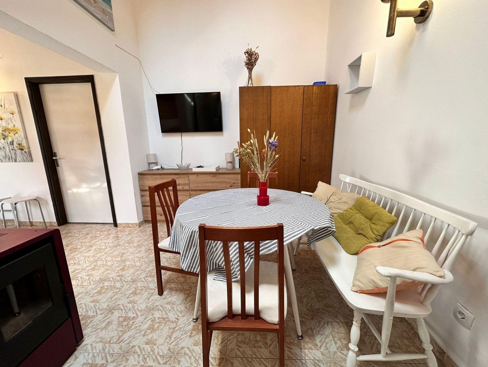 Umgebung des Objekts (Ordentlich), Hof (500m2, Sitzbereich), Parkplatz (Anzahl der Parkplätze: 4, Entfernung vom Objekt: im Hof), Grill: gemeinsam, WiFi Internet, Föhn, Bügeleisen, Bügelbrett