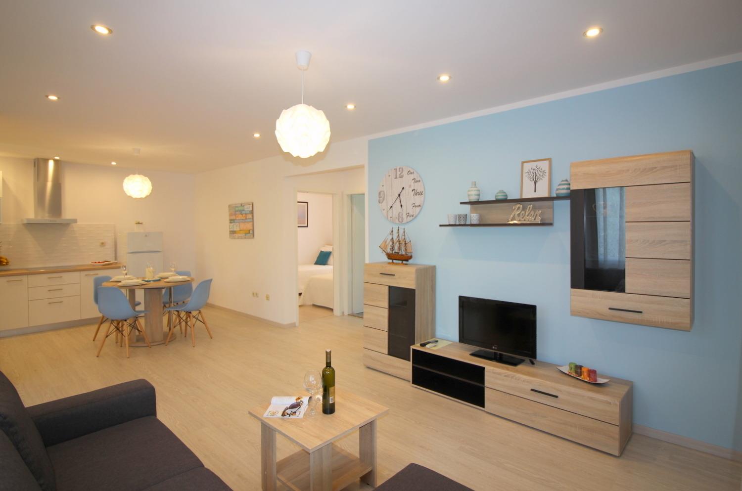 Modern eingerichtete, komfortable Bungalows. Gemütliche Wohnung, die alles für einen komfortablen Urlaub bietet. Klimaanlage im Wohnzimmer. Auf einem vollständig umzäunten Gelände mit Zugangstor liegt der kleine Bungalowpark Lorena. Verteilt über den grünen und gut gepflegten Garten stehen insgesamt 8 aneinander gereihte Bungalows und ein Haus mit 2 Wohnungen.. Jeder Bungalow verfügt über eine eigene überdachte Terrasse mit Gartenmöbeln, und Aussicht auf den Garten. Zusätzlich verfügen Sie über einen gemeinschaftlichen Grill und ein herrliches Schwimmbecken mit Salzwasser. Einkäufe 100 - 150m Einkauzentrum Kaufland , Lidl , Muller. Restaurant cca 200 m , Grill und Caffe 150 m .nDoppelhaushälfte mit 58 m² für 2- 4 Personen, Parterre: offene Küche (Kaffeemaschine, 4 Kochplate Mikrowelle, Kühl-/Gefrierkombination), Wohn/Esszimmer (Schlafcouch 1 Pers., TV (20 Internationale TV-Kanäle, Keine niederländischen Fernsehsender), Klimaanlage), Schlafzimmer (Doppelbett), Schlafzimmer (2x Einzelbett), Badezimmer (Dusche, Toilette). Separate WC . Waschmaschine (Gemeinschaftliche Nutzung mit anderen Gästen), Terrasse (überdacht), Gartenmöbel, BBQ (Gemeinschaftliche Nutzung mit anderen Gästen), Parkplatz in gesperte Hoff, Swimmingpool mit Salzwasser (Gemeinschaftliche Nutzung mit anderen Gästen, 9 x 4 m., geöffnet von April bis einschließlich Okt)