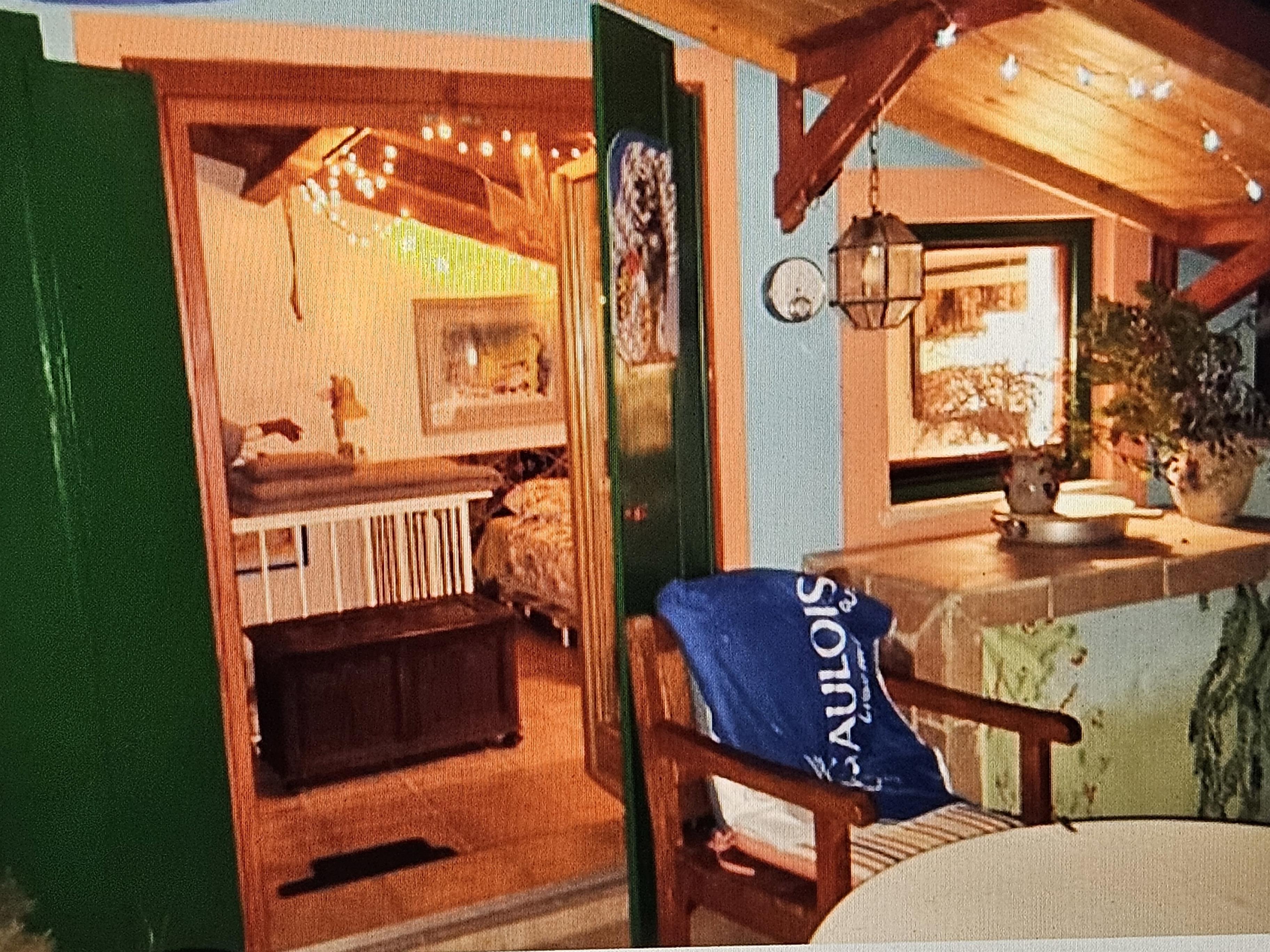 Die Wendeltreppe führt hoch in den Wohnbereich mit einer Küchenzeile , Esstisch für 5 Personen, Multimedia. Im Nebenraum sind Dusche, WC und Waschmaschine. Ein Kanonenofen mit Brennvorrat hilft gegen kühle Nächte.