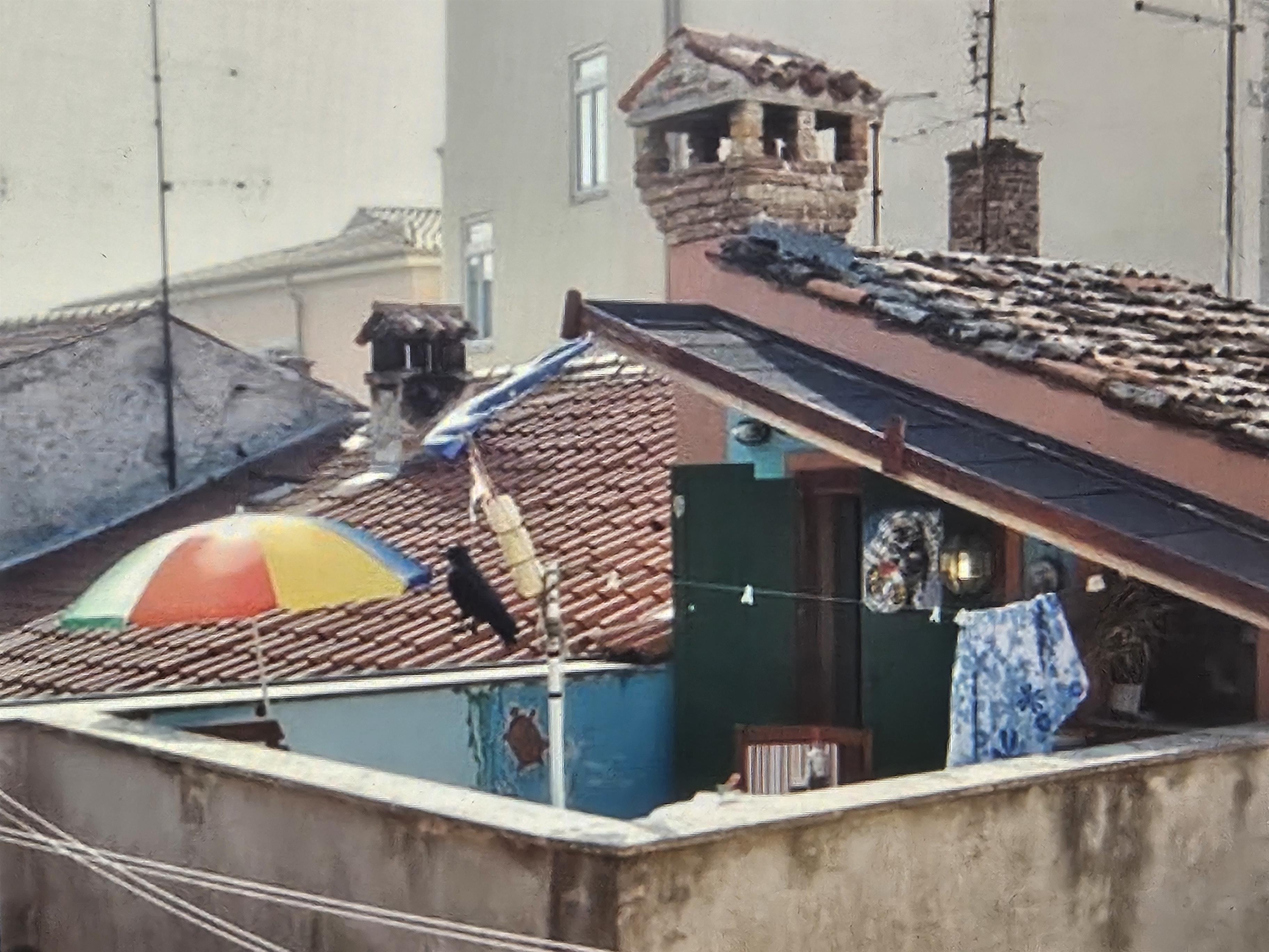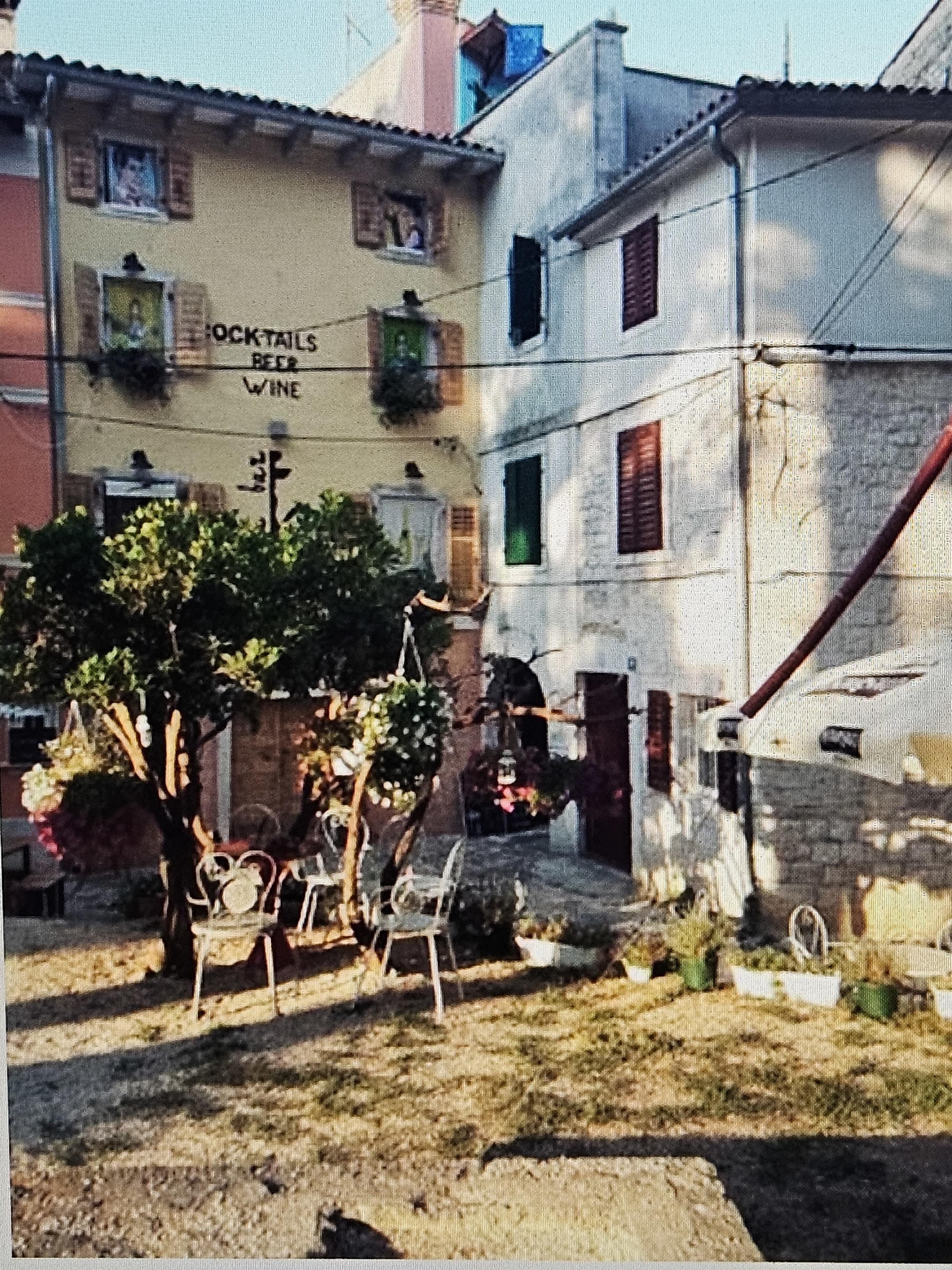 Mein Haus in den 500 Jahre alten- denkmalgeschützten Mauern in der autofreien Altstadt von Porec- schaut auf den baumbestandenen "parco centro storico", der Kreuzung von Cardo und Decumanus .