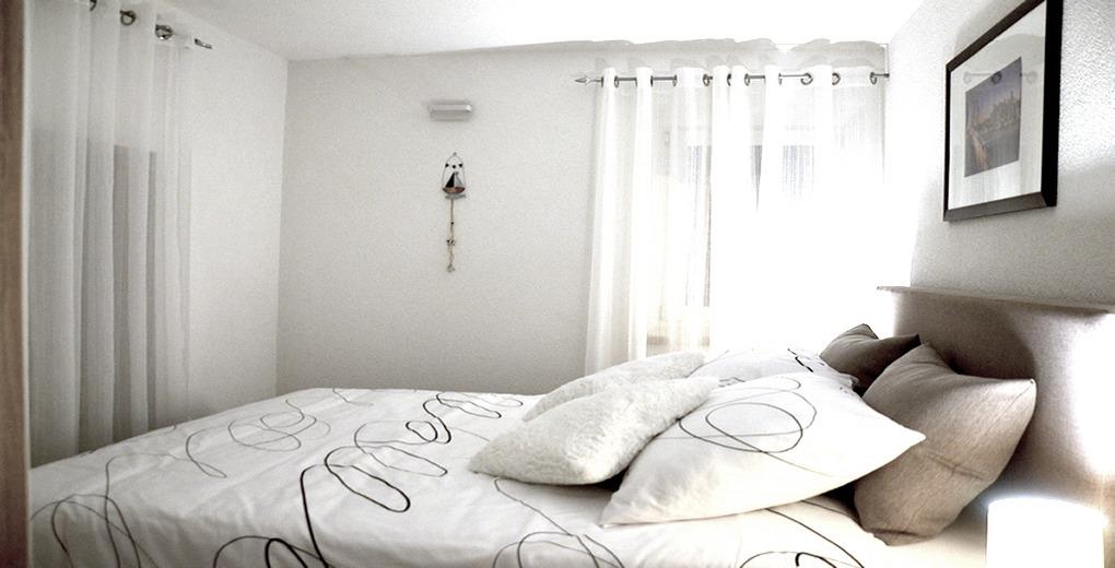 Unser Nichtraucher-Apartment ist hell, geräumig und neu eingerichtet, befindet sich im ersten Stock eines Ferienhauses mit ca. 60 qm bietet Platz für 4 Personen. Es besteht aus einem offenen Wohnzimmer mit komplett ausgestatteter Küche, Bad/WC mit Dusche, zwei Schlafzimmer mit je einem Doppelbett 160cm x 200 cm.