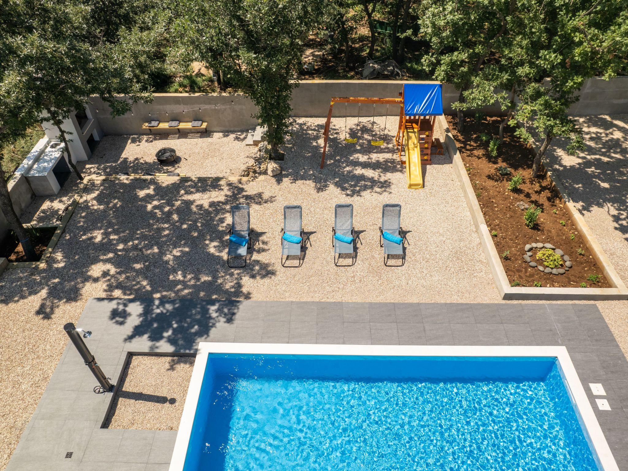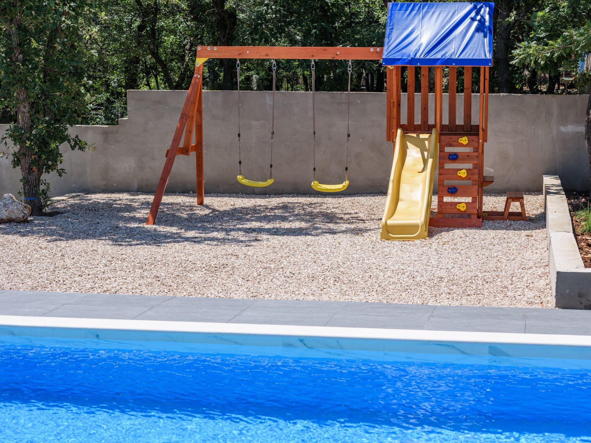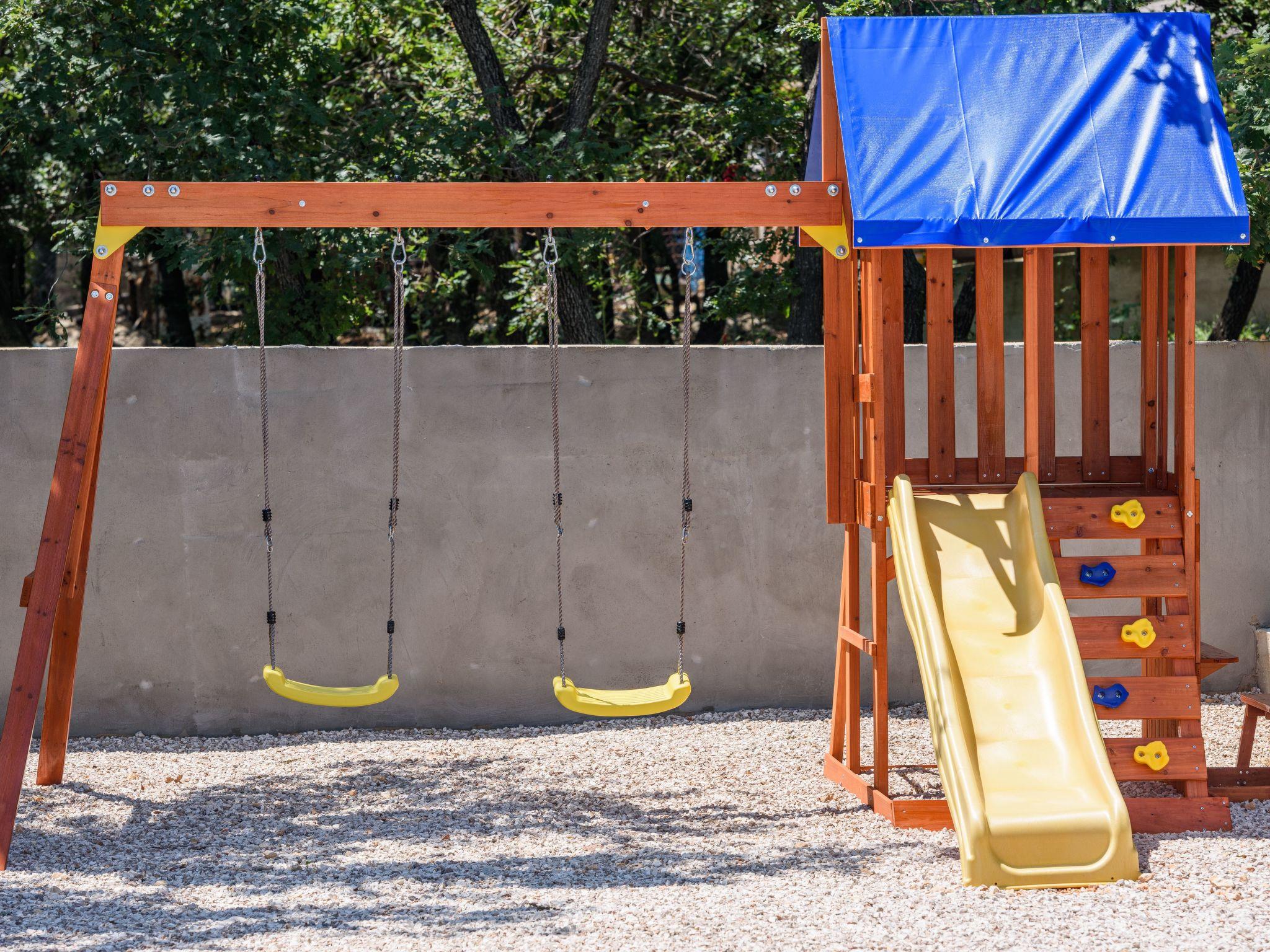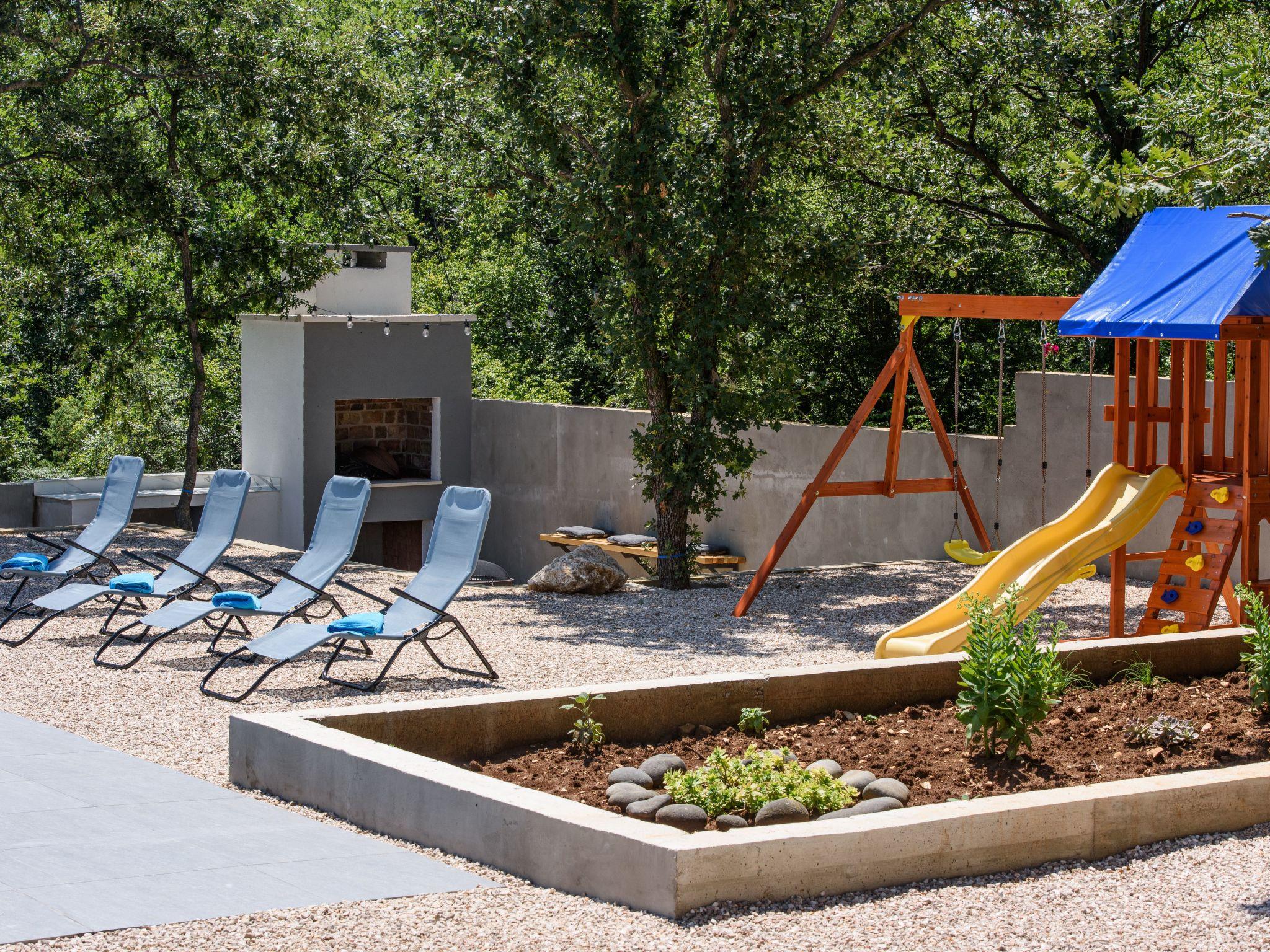 Outdoor area includes large swimming pool 8*4m,with 8 sunbeds,terrace with lounge set and a dining table for 6 persons. Children can enjoy the kids playground,while the adults can enjoy preparing dishes on grill or spending nights sitting around a fire pit. Rooftop terrace provides beautiful views of mountain Velebit as well as the nearby Novigrad sea,and lots of woods and meadows.