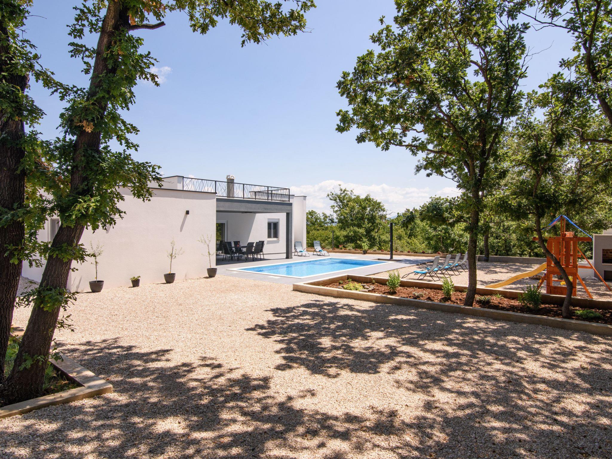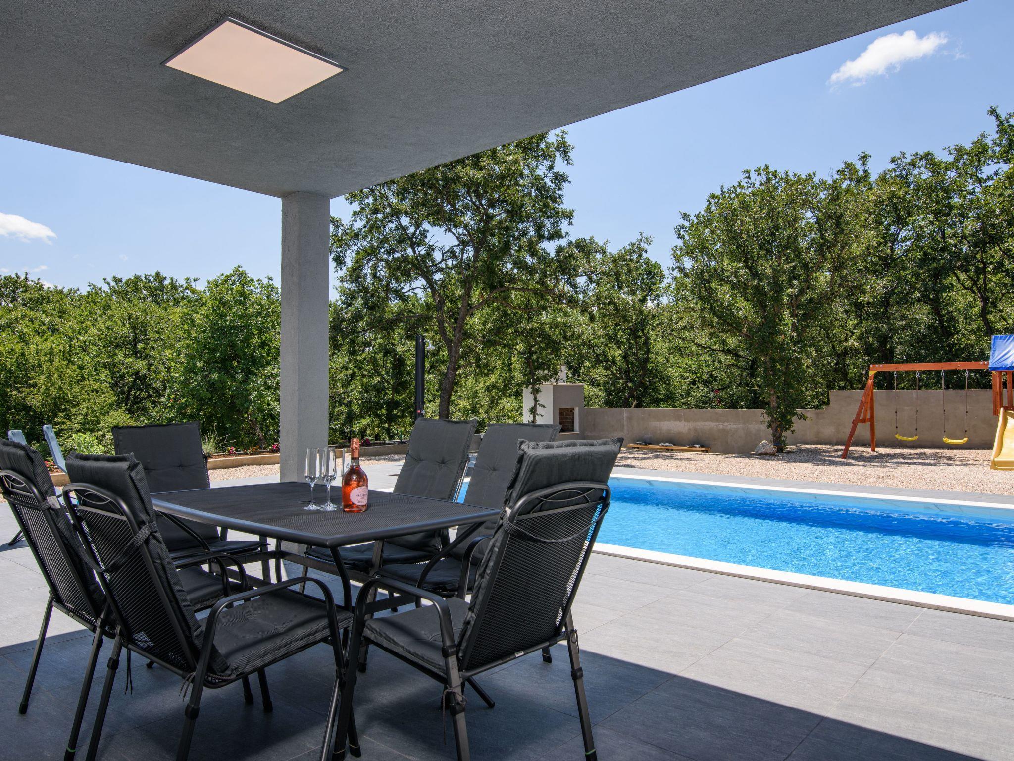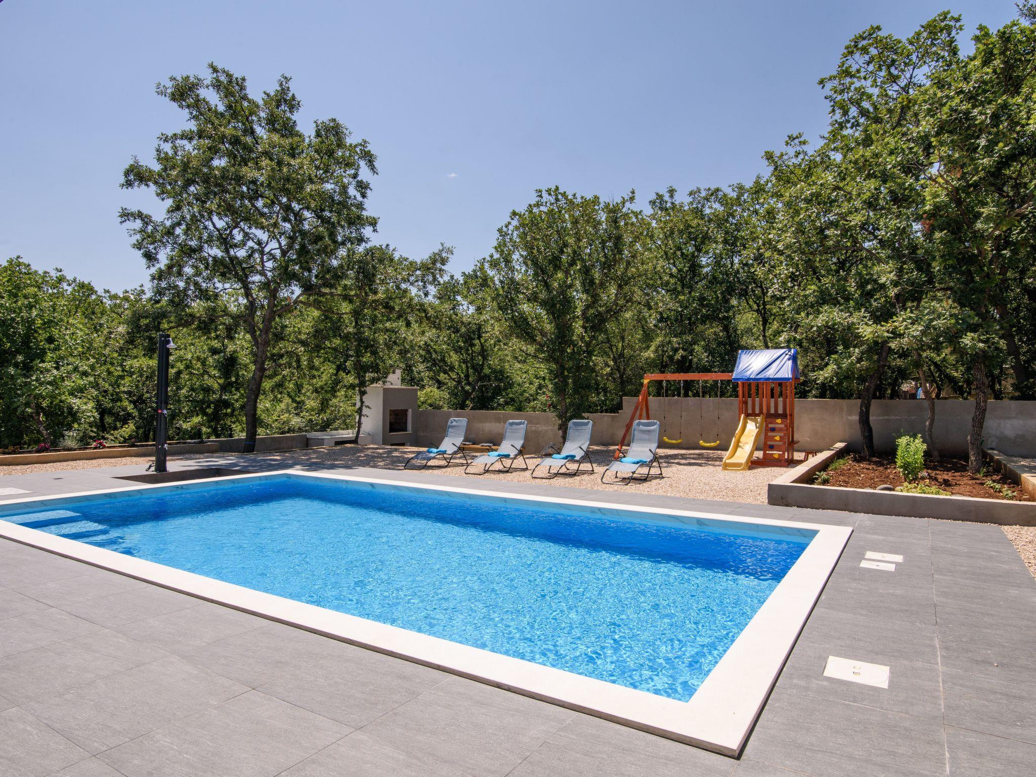 Outdoor area includes large swimming pool 8*4m,with 8 sunbeds,terrace with lounge set and a dining table for 6 persons. Children can enjoy the kids playground,while the adults can enjoy preparing dishes on grill or spending nights sitting around a fire pit. Rooftop terrace provides beautiful views of mountain Velebit as well as the nearby Novigrad sea,and lots of woods and meadows.