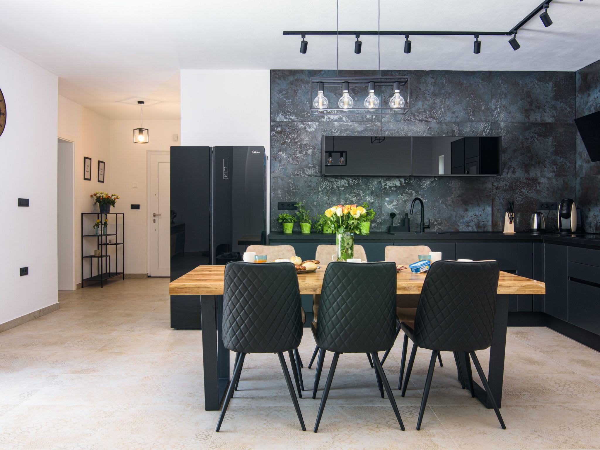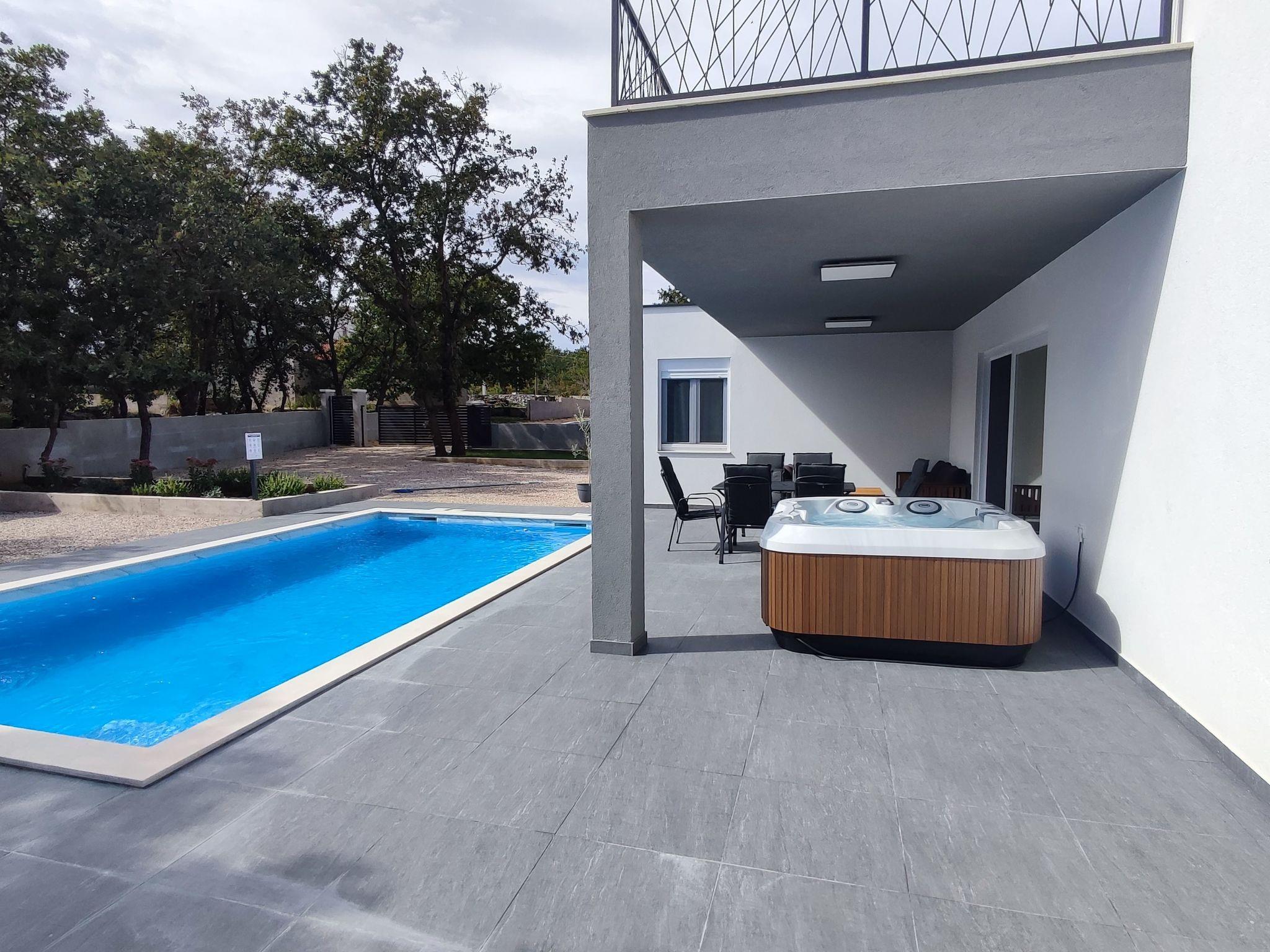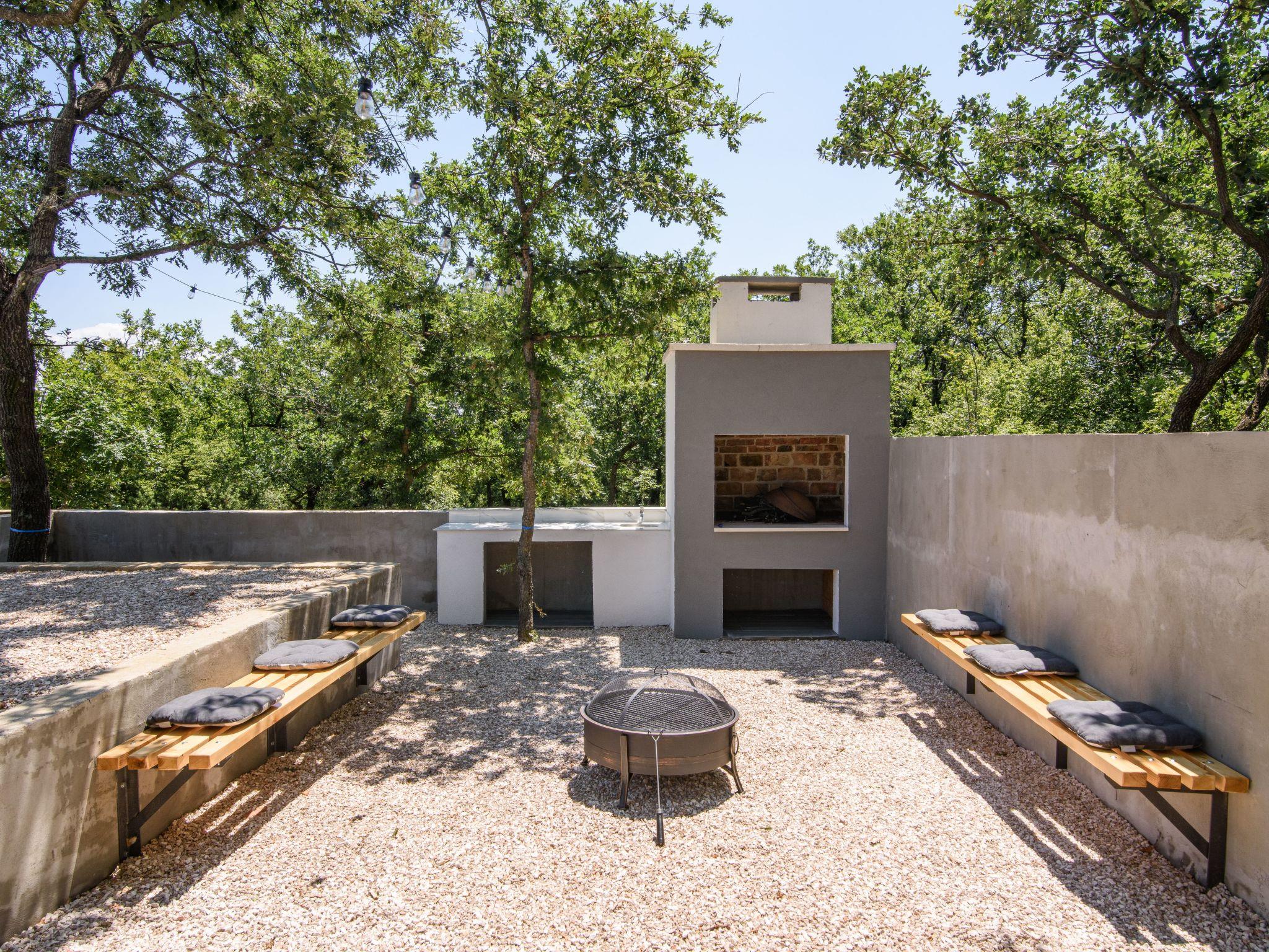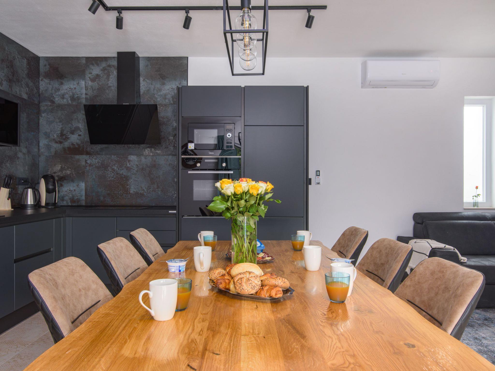 Outdoor area includes large swimming pool 8*4m,with 8 sunbeds,terrace with lounge set and a dining table for 6 persons. Children can enjoy the kids playground,while the adults can enjoy preparing dishes on grill or spending nights sitting around a fire pit. Rooftop terrace provides beautiful views of mountain Velebit as well as the nearby Novigrad sea,and lots of woods and meadows.