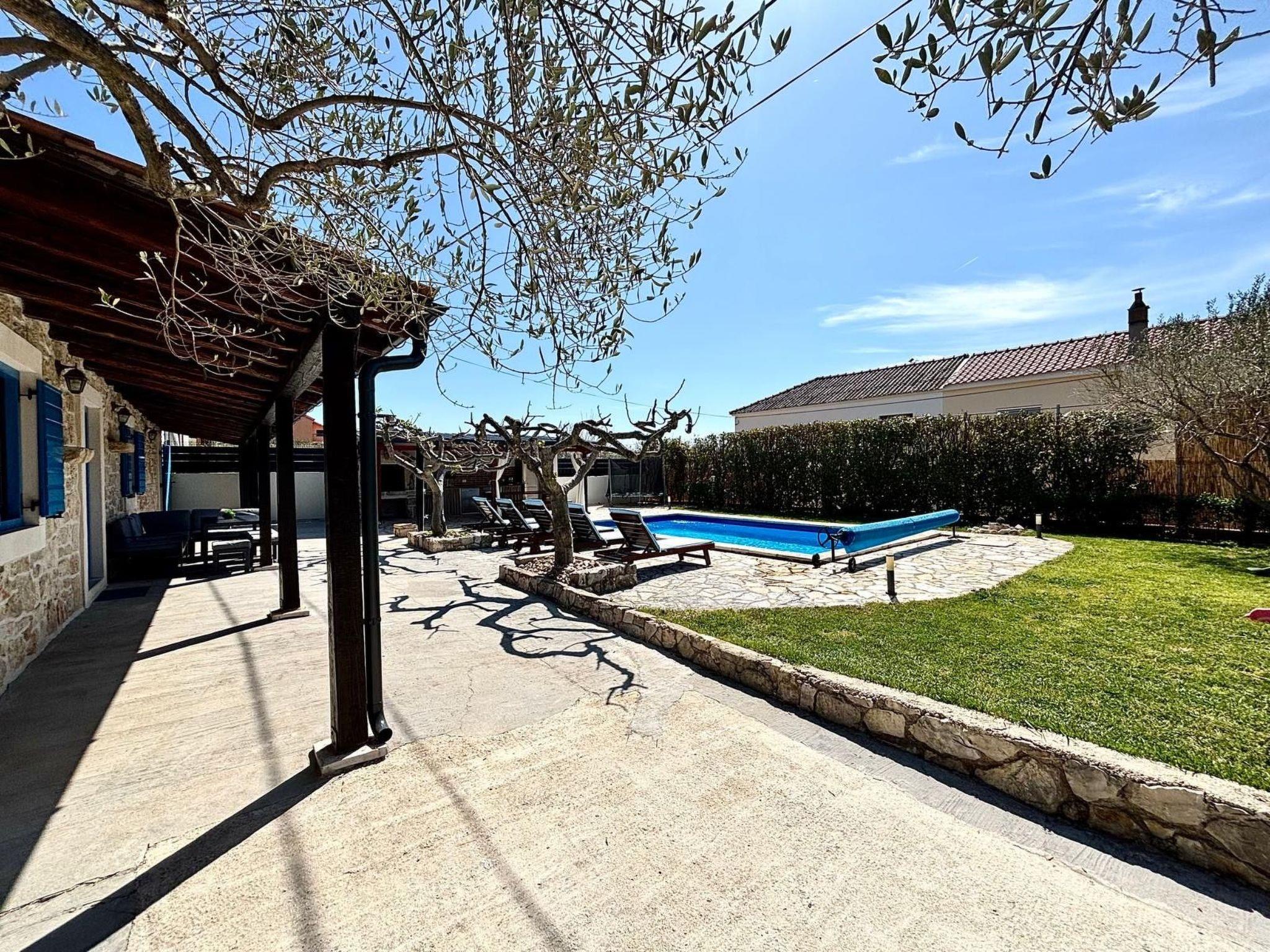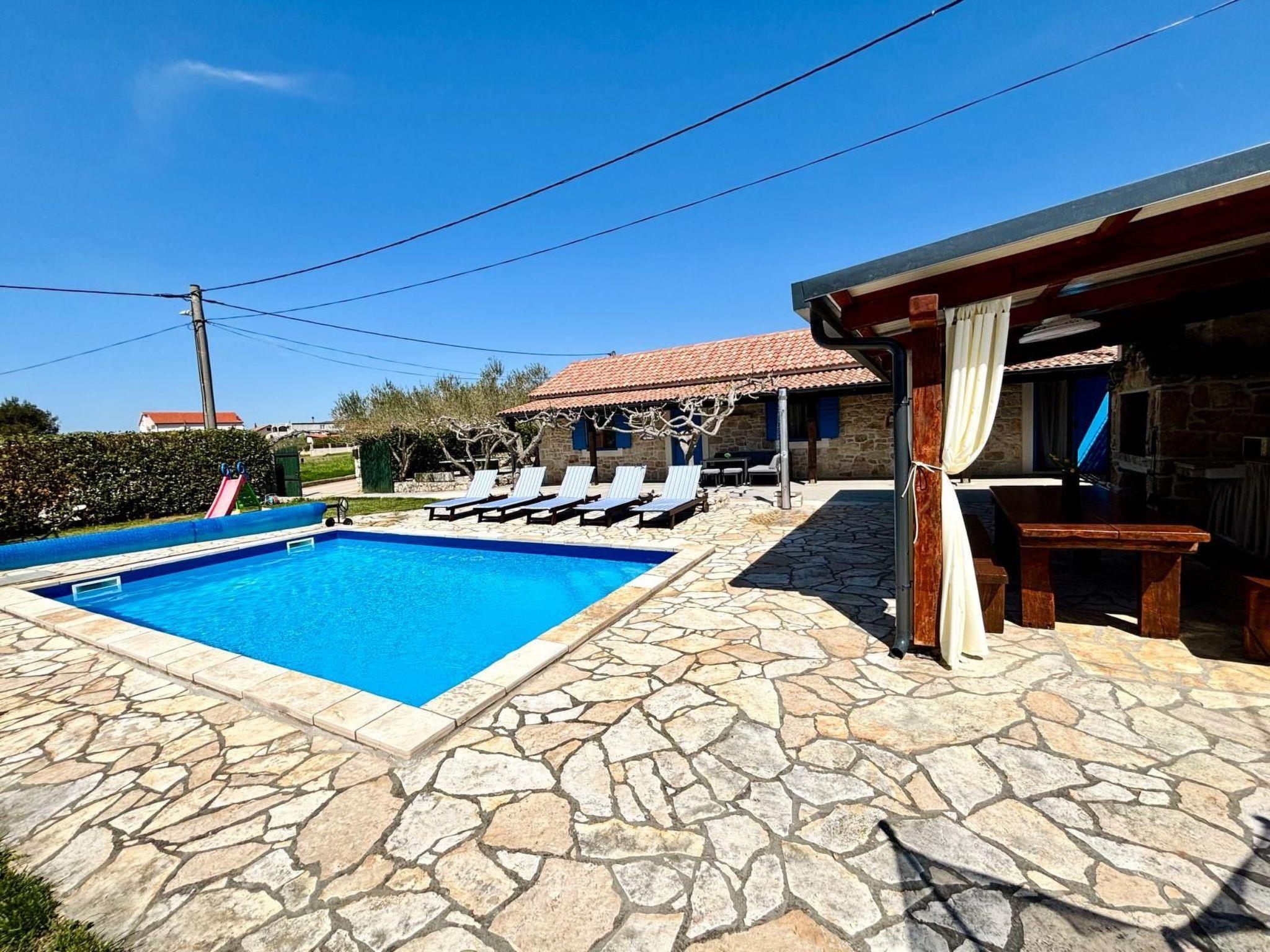 Villa Jukic is located in a small coastal village Posedarje, which is located on the coast of Novigrad Sea, 25 km from the town of Zadar.Villa is ideal for two families with children, there are two large bedrooms from each you have access to a smaller one, perfect for children, two children's cot, two bathrooms with shower, kitchen with all appliances ... in front of the house is a large garden with a swimming pool, barbecue, table tennis and trampoline .. It is located near the famous national parks of Paklenica, Velebit, the river Krka, Kornati and Plitvice Lakes. Posedarje has many restaurants, coffee bars, shops, bakery, fish market, butcher, post office and a park for children. The price includes use of the Internet (Wi-Fi), air conditioning and towels, dishes and bedding. The distance from the beach and the center of the village of 400 m, about 5 min walk. The village has a sandy, gravel and concrete beach.Recently (2015) fully renovated, authentic natural stone house with a private pool, a traditional stone grill on the generous sun terrace, and a trampoline and a sandpit for children in the enclosed garden.