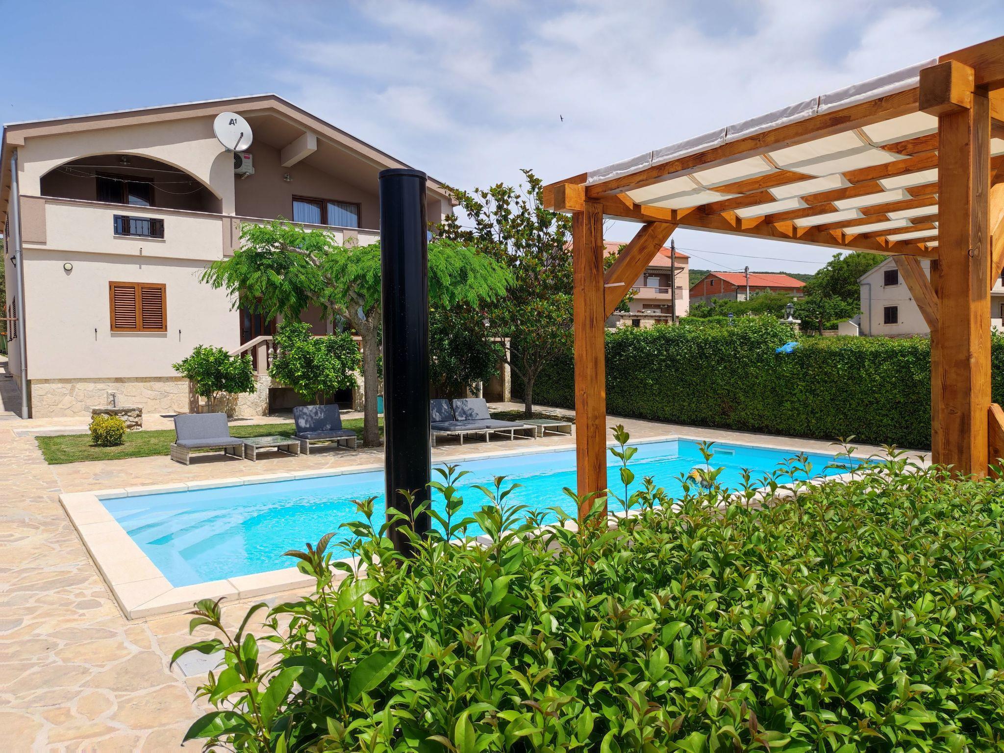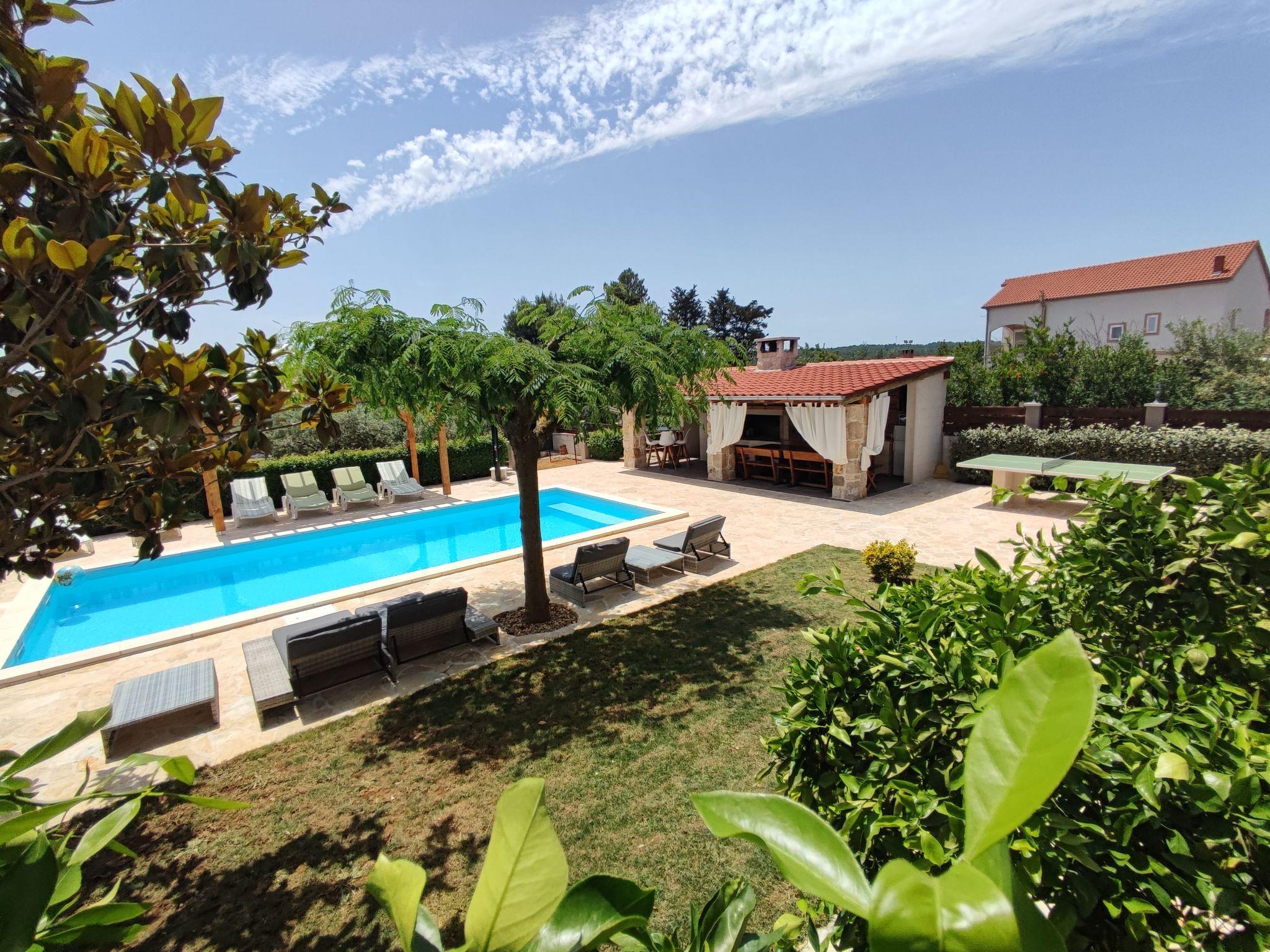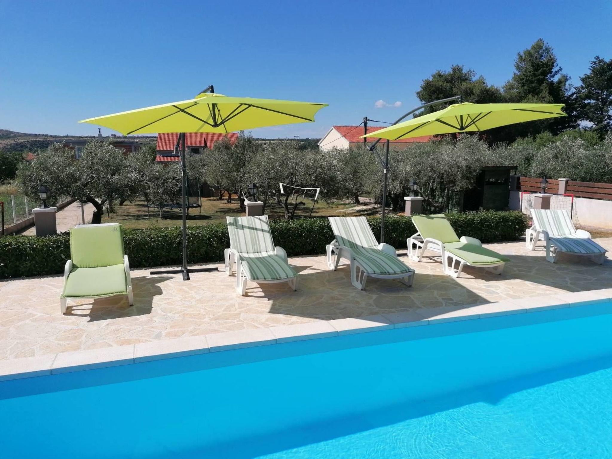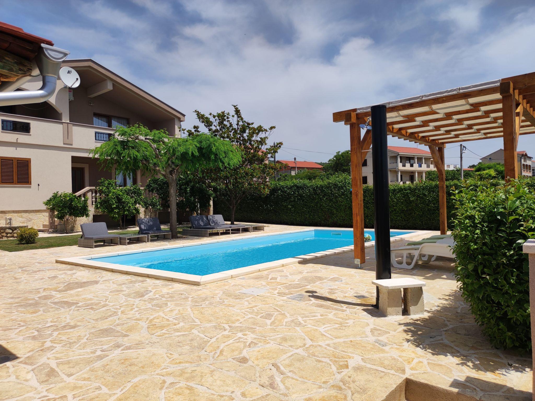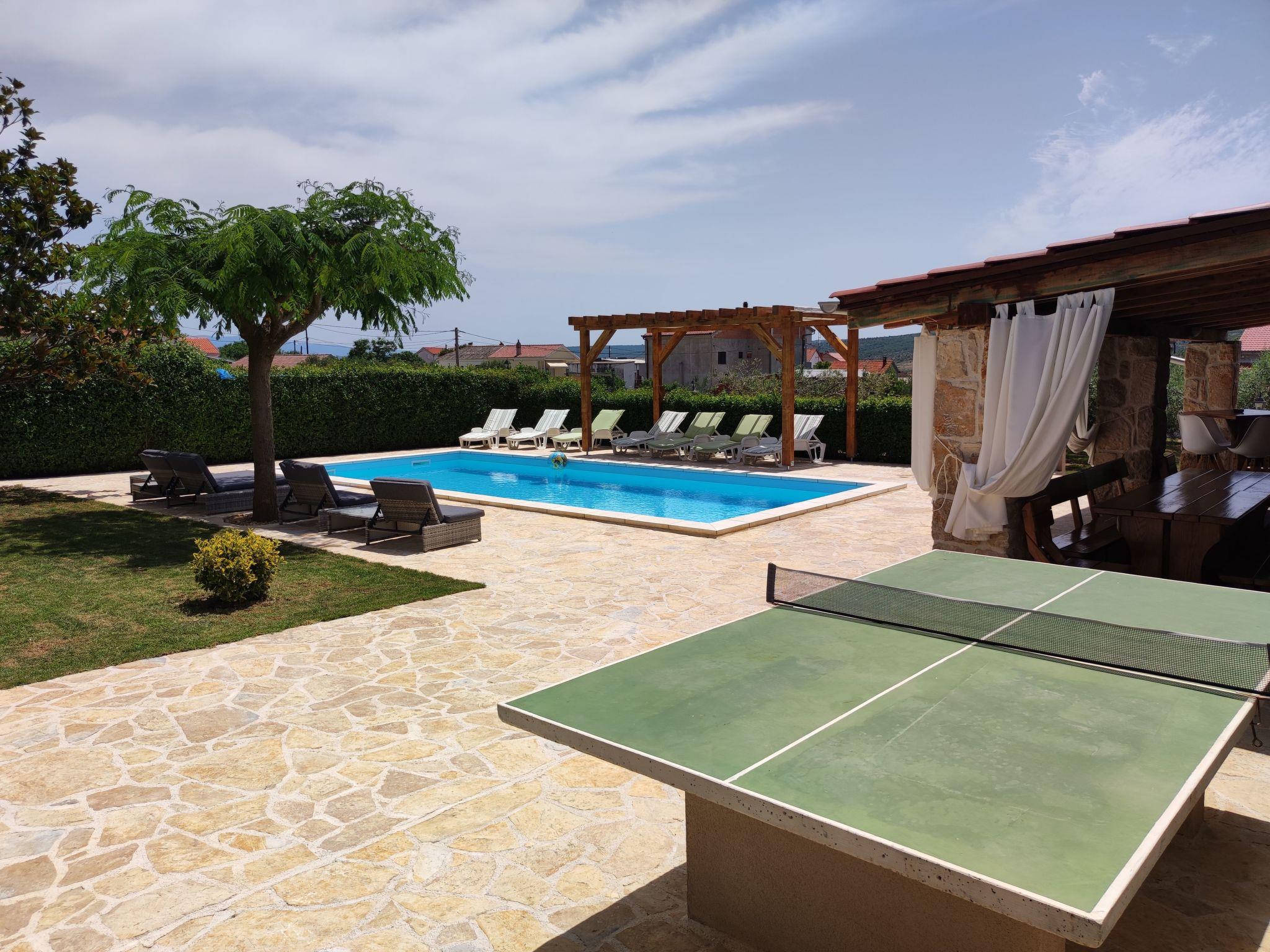 House Eva&Jakov is located in a small coastal village Posedarje, which is located on the coast of Novigrad Sea, 25 km from the town of Zadar,on the ground floor have 3 bedrooms,toilet with shower,kitchen with all appliances,living room,on the first floor also have 3 rooms,living room,kitchen with all appliances,two toilet,one shower,see view ... in front of the house is a large garden with a swimming pool 9x4m, outside kitchen with all appliances, barbecue, table tennis and trampoline .. It is located near the famous national parks of Paklenica, Velebit, the river Krka, Kornati and Plitvice Lakes. Posedarje has many restaurants, coffee bars, shops, bakery, fish market, butcher, post office and a park for children. The price includes use of the Internet (Wi-Fi), air conditioning and towels, dishes and bedding. The distance from the beach and the center of the village of 600 m, about 5 min walk. The village has a sandy, gravel and concrete beach.