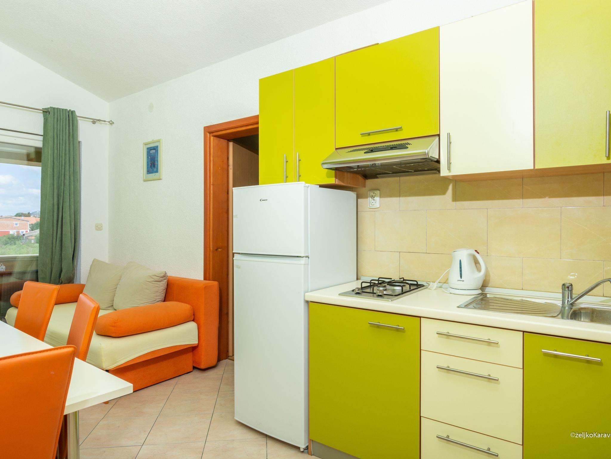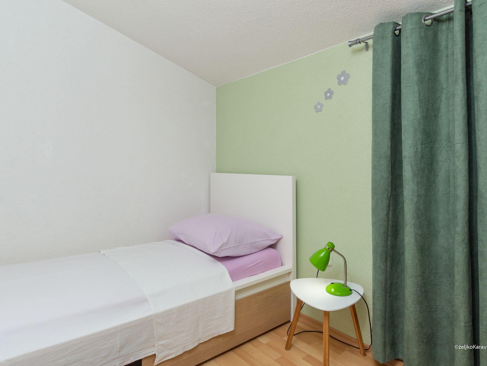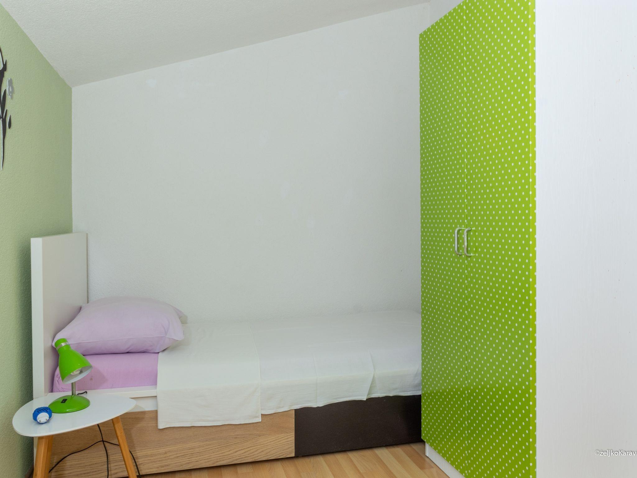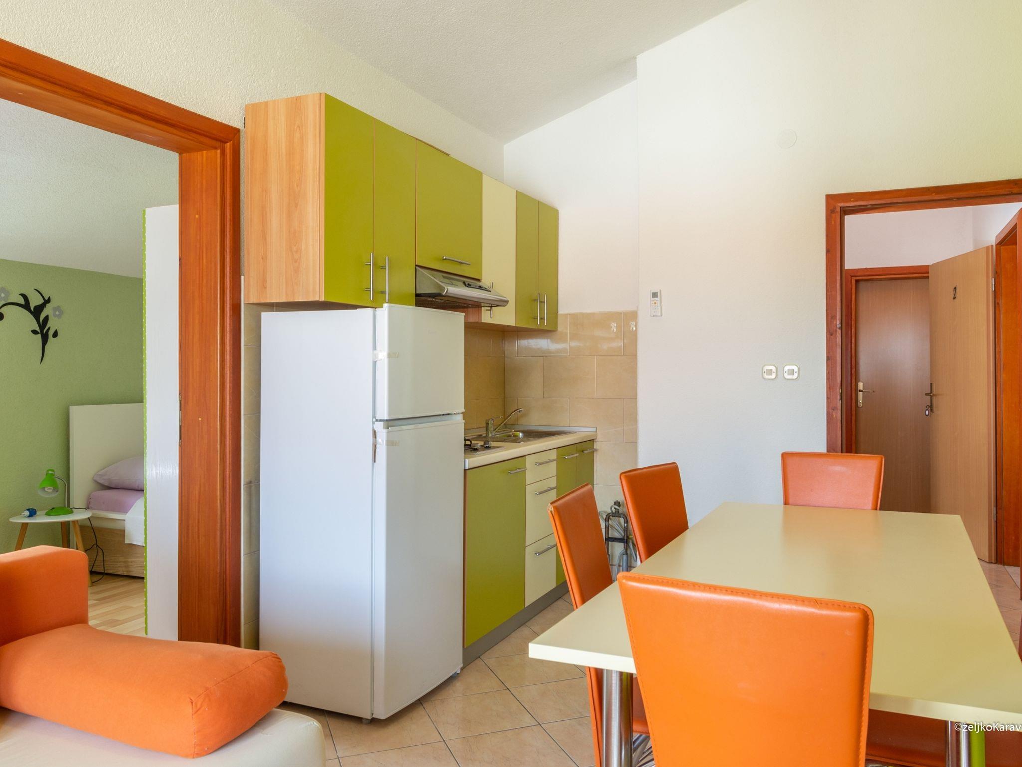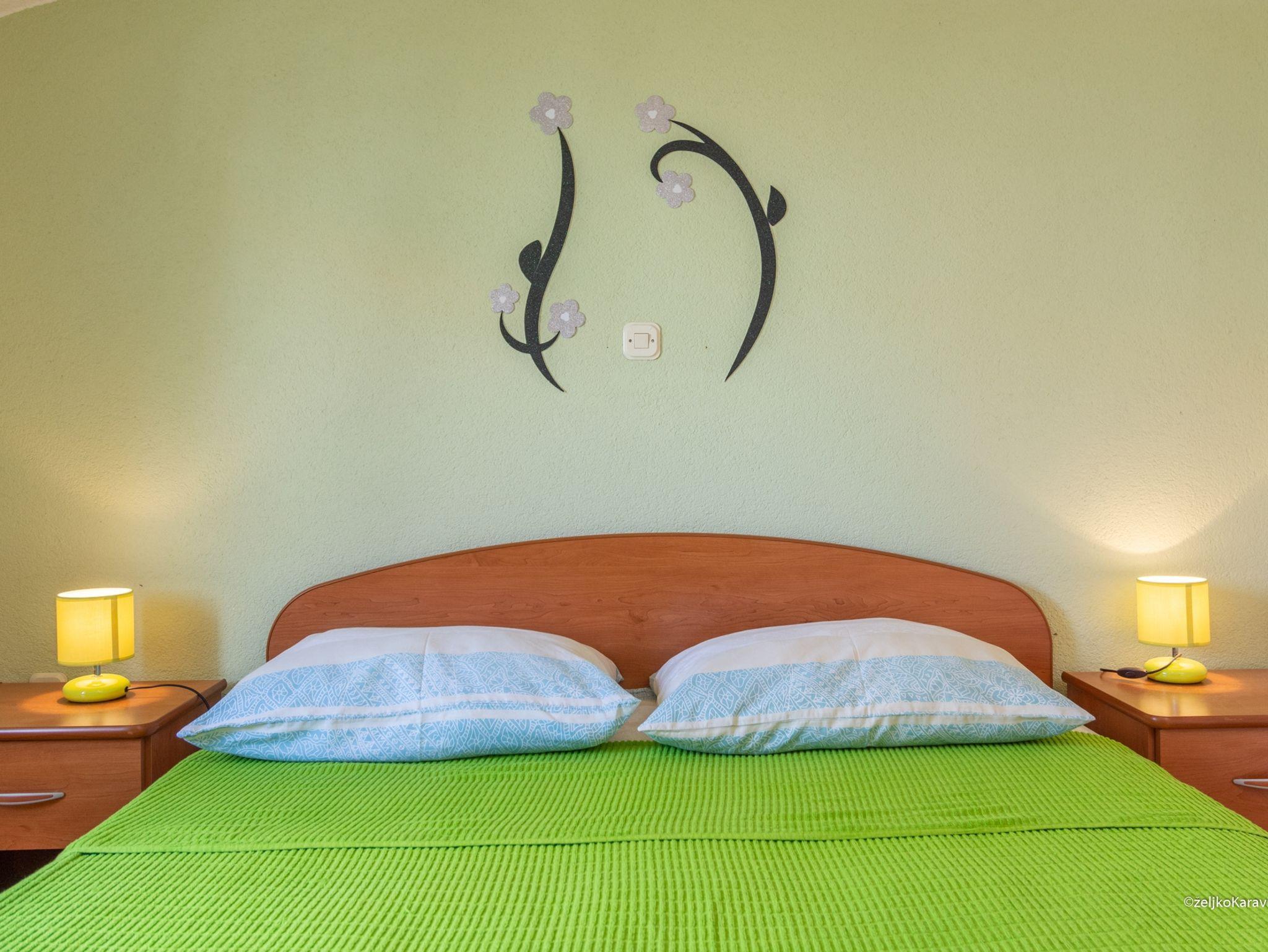 Ferienwohnung bietet Platz für 4 Gäste. Die Betten sind in Schlafzimmern, die es 2 gibt, innerhalb einer Gesamtfläche von 44m2, angeordnet. Die Gäste haben eine eigene Terrasse zur Verfügung, auf der sie in warmen Sommernächten genießen können. Das Apartment bietet Meerblick. Es ist erlaubt, Speisen auf dem Gemeinschafts-Grill vorzubereiten. Unterkunftseinheit hat Räume, die von dem Rest der Einheit abgetrennt werden. IM PREIS INBEGRIFFEN: Kurtaxe, Endreinigung, Klimatisierung, Parkplatz, Internet, Kinderbett, Bügeleisen, Föhn. VERBINDLICHE ZUSÄTZLICHE KOSTEN: Aufzahlung für Kurzaufenthalte (prozentualer Zuschlag pro Nächtigungsanzahl: 30% - 1, 20% - 2, 10% - 3). Die Verfügbarkeit zusätzlicher Dienstleistungen in Ihrem reservierten Termin und die Preise derselben (falls nicht aufgeführt) müssen im Voraus überprüft werden. Zusätzliche Dienstleistungen die in der Zahlungsaufforderung nicht aufgeführt sind werden direkt beim Vermieter bezahlt, angenommen der Gast nutzt auch diese.
