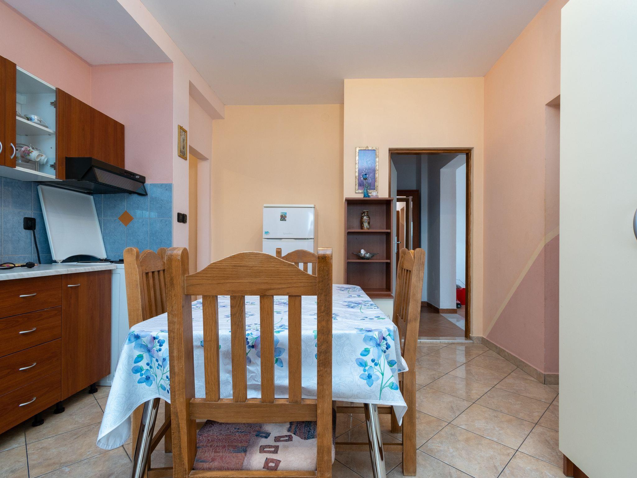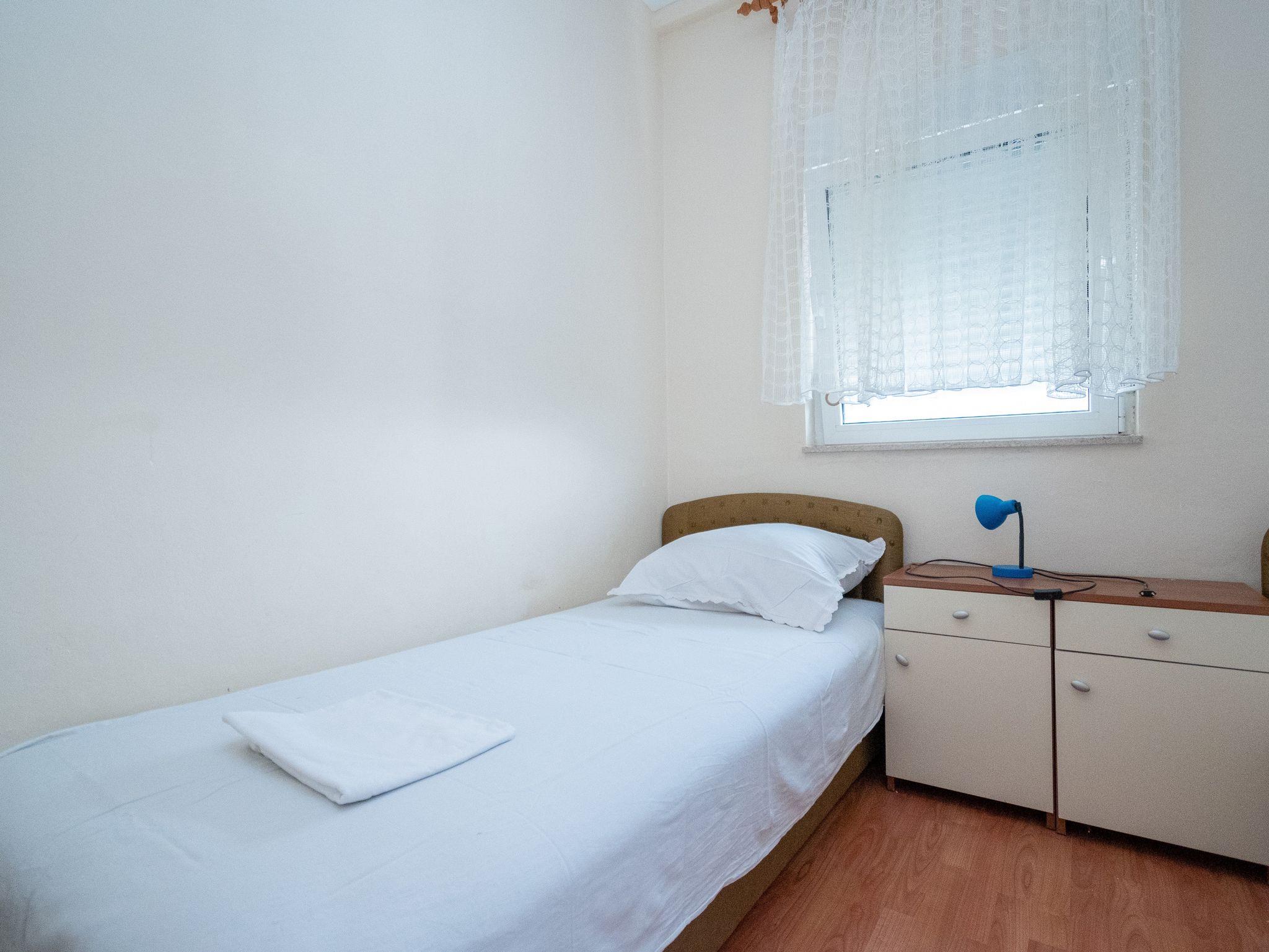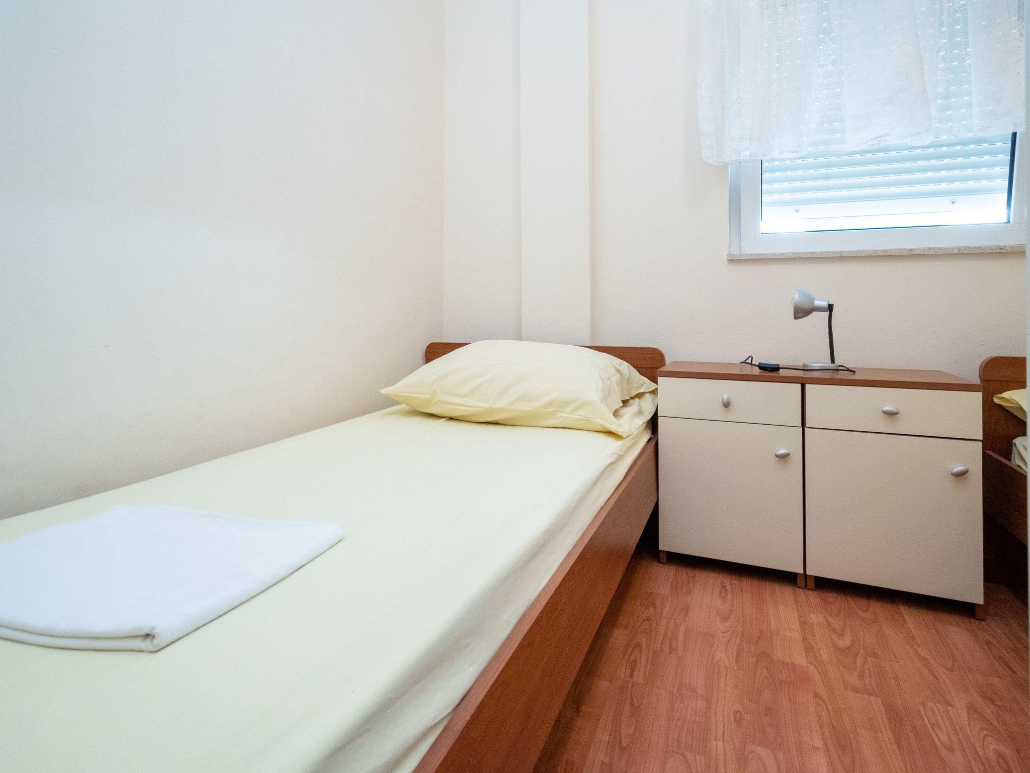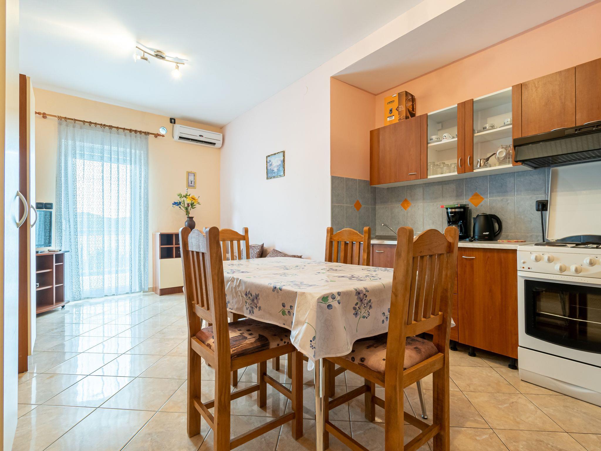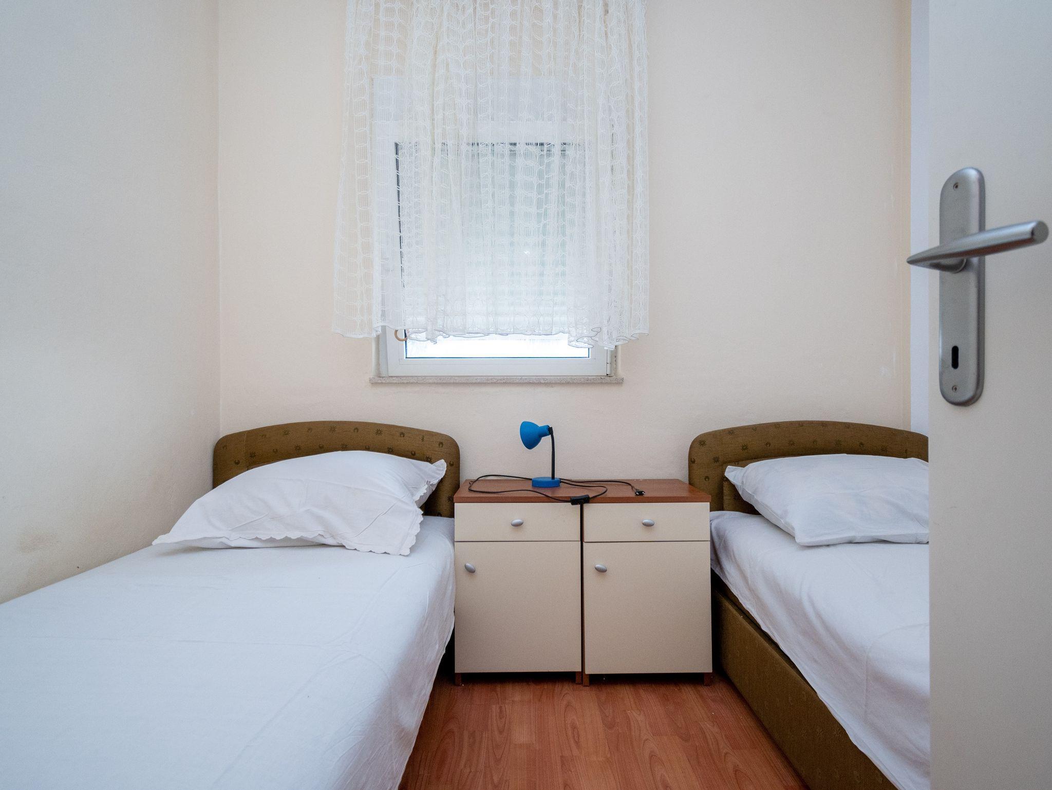 Ferienwohnung bietet Platz für 6 Gäste. Die Betten sind in Schlafzimmern, die es 3 gibt, innerhalb einer Gesamtfläche von 64m2, angeordnet. Die Gäste haben eine eigene Terrasse zur Verfügung, auf der sie in warmen Sommernächten genießen können. Das Apartment bietet Meerblick. Es ist erlaubt, Speisen auf dem Gemeinschafts-Grill vorzubereiten. IM PREIS INBEGRIFFEN: Kurtaxe, Endreinigung, Klimatisierung, Parkplatz, Internet. VERBINDLICHE ZUSÄTZLICHE KOSTEN: Aufzahlung für Kurzaufenthalte (prozentualer Zuschlag pro Nächtigungsanzahl: 30% - 1, 20% - 2, 10% - 3). Die Verfügbarkeit zusätzlicher Dienstleistungen in Ihrem reservierten Termin und die Preise derselben (falls nicht aufgeführt) müssen im Voraus überprüft werden. Zusätzliche Dienstleistungen die in der Zahlungsaufforderung nicht aufgeführt sind werden direkt beim Vermieter bezahlt, angenommen der Gast nutzt auch diese. Ermäßigung auf den Grundpreis: Gratistag 14=13 (bei einem Aufenthalt von 14 Tagen oder mehr erhalten Sie einen Gratistag für den Aufenthalt bis 31.12.26).