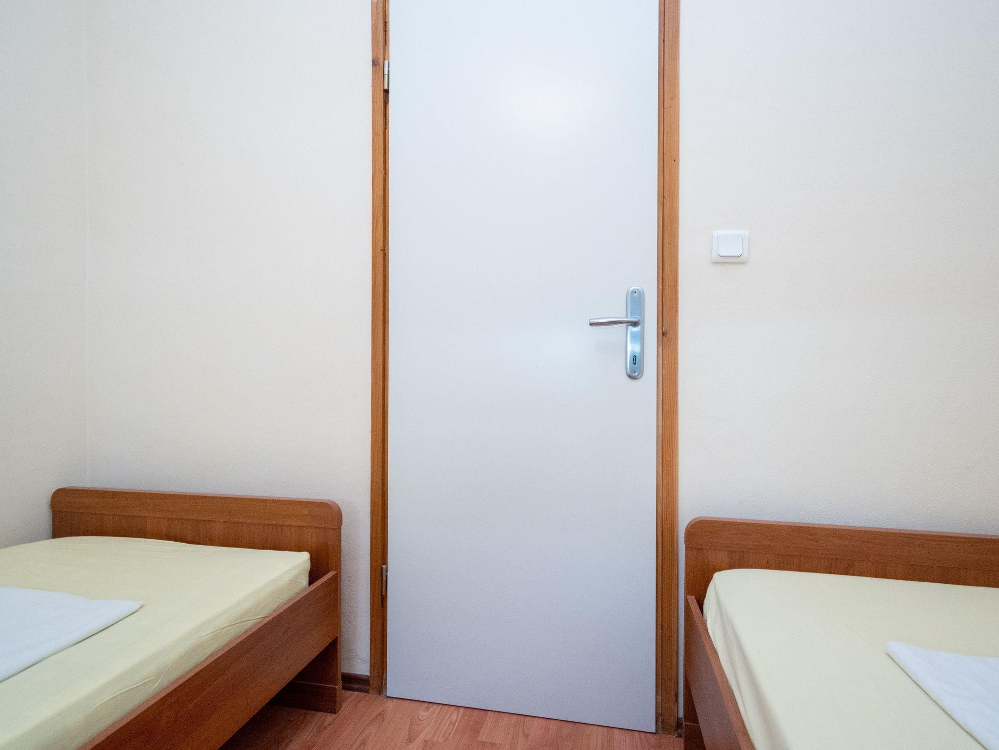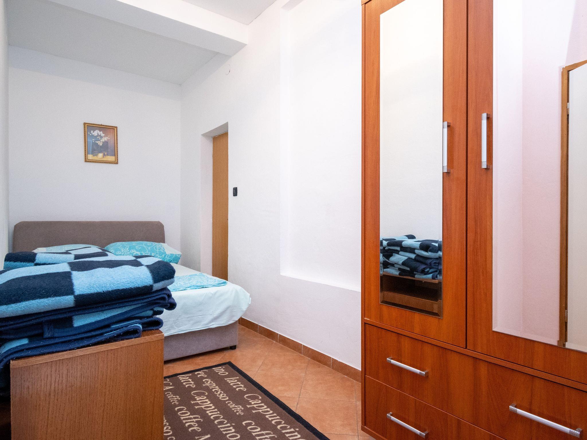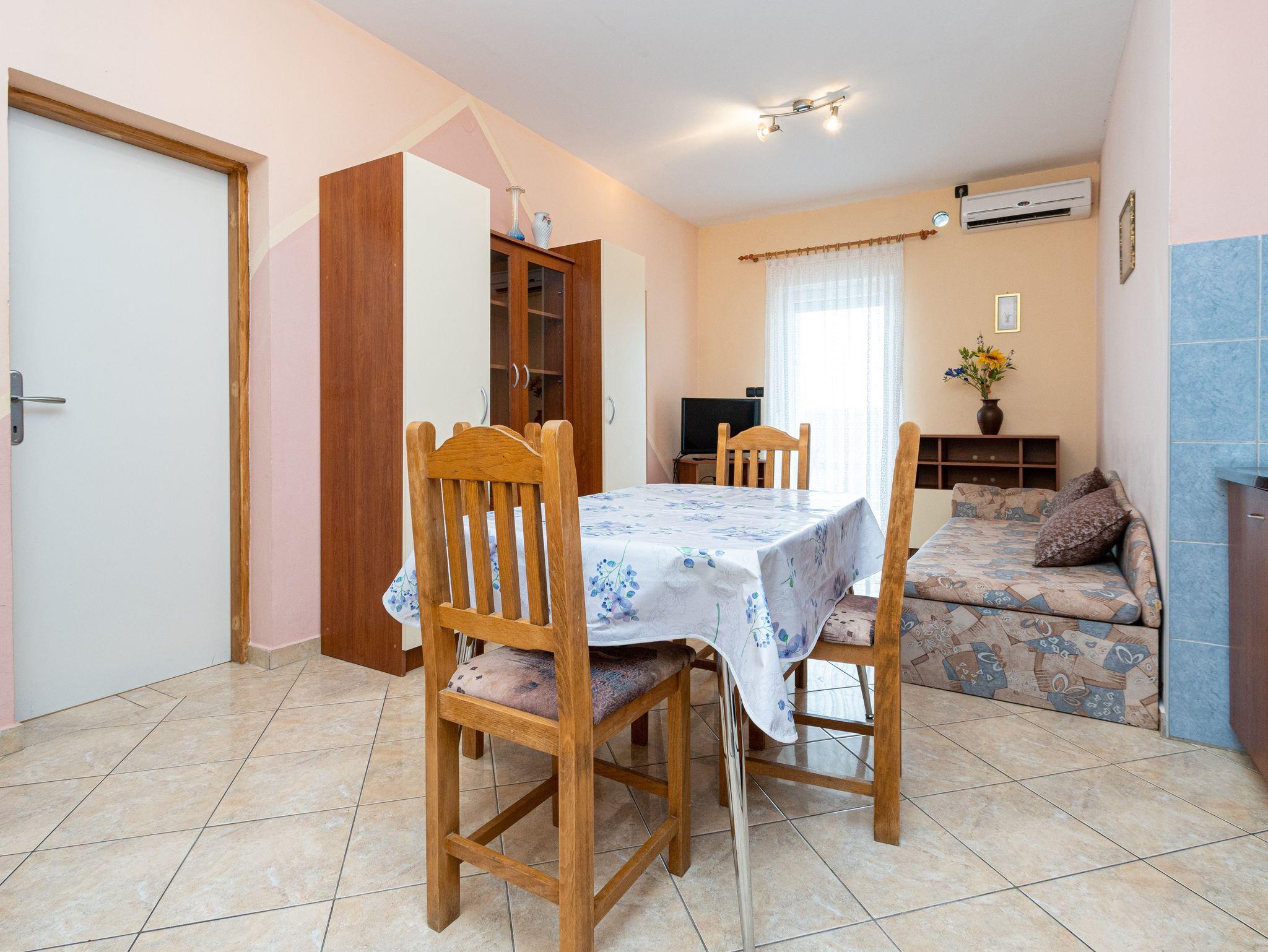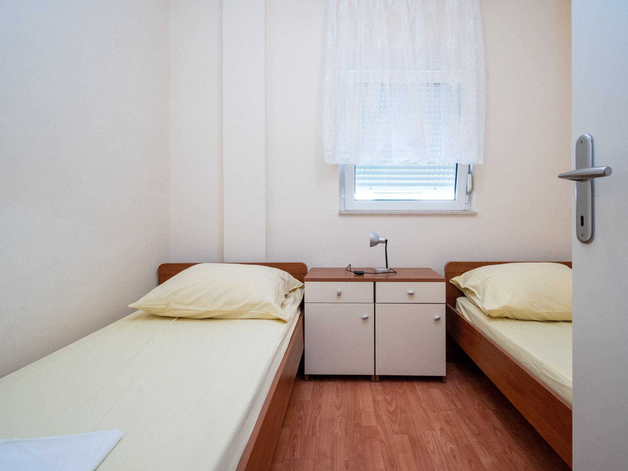 Ferienwohnung bietet Platz für 6 Gäste. Die Betten sind in Schlafzimmern, die es 3 gibt, innerhalb einer Gesamtfläche von 64m2, angeordnet. Die Gäste haben eine eigene Terrasse zur Verfügung, auf der sie in warmen Sommernächten genießen können. Das Apartment bietet Meerblick. Es ist erlaubt, Speisen auf dem Gemeinschafts-Grill vorzubereiten. IM PREIS INBEGRIFFEN: Kurtaxe, Endreinigung, Klimatisierung, Parkplatz, Internet. VERBINDLICHE ZUSÄTZLICHE KOSTEN: Aufzahlung für Kurzaufenthalte (prozentualer Zuschlag pro Nächtigungsanzahl: 30% - 1, 20% - 2, 10% - 3). Die Verfügbarkeit zusätzlicher Dienstleistungen in Ihrem reservierten Termin und die Preise derselben (falls nicht aufgeführt) müssen im Voraus überprüft werden. Zusätzliche Dienstleistungen die in der Zahlungsaufforderung nicht aufgeführt sind werden direkt beim Vermieter bezahlt, angenommen der Gast nutzt auch diese. Ermäßigung auf den Grundpreis: Gratistag 14=13 (bei einem Aufenthalt von 14 Tagen oder mehr erhalten Sie einen Gratistag für den Aufenthalt bis 31.12.26).