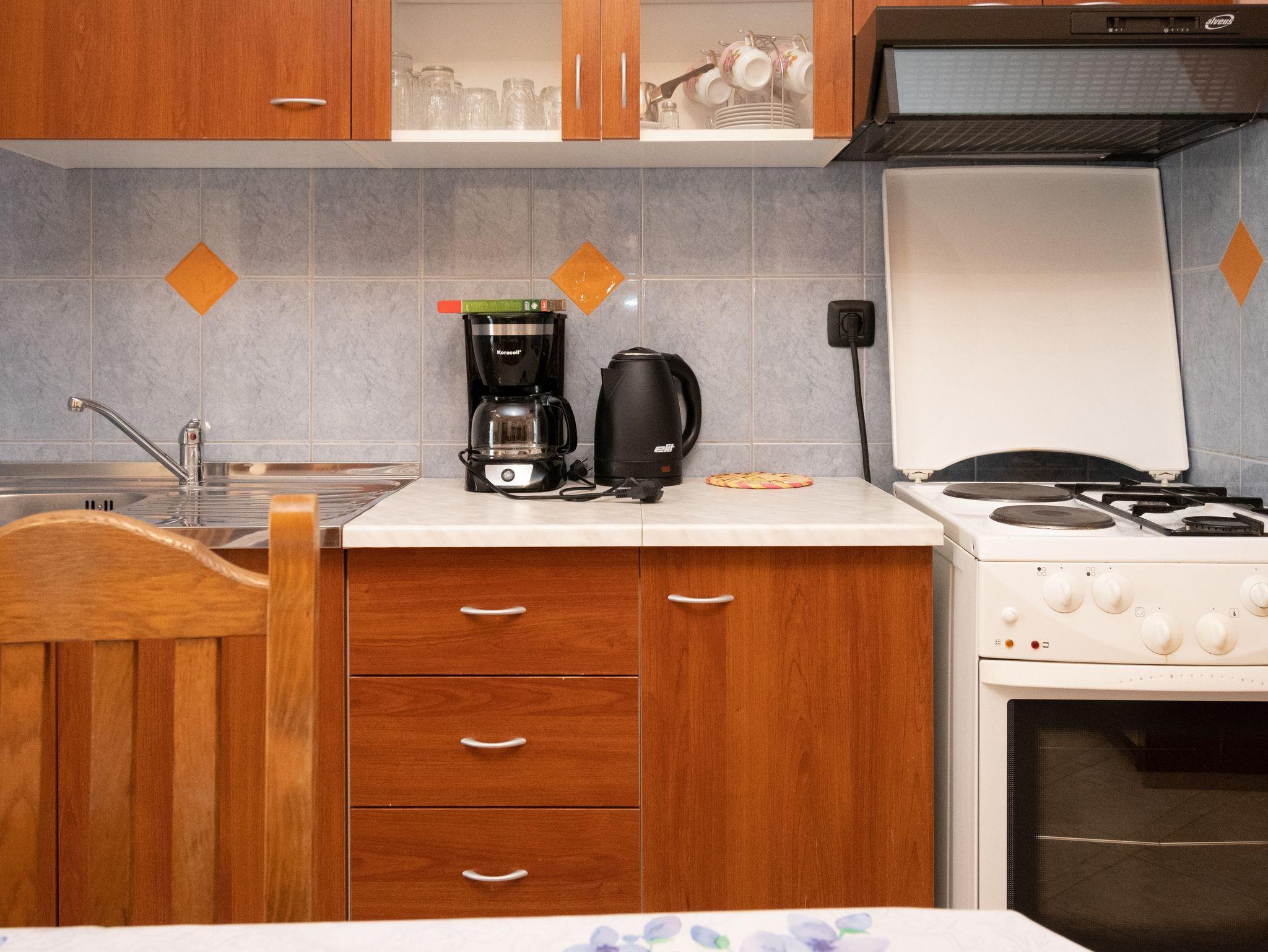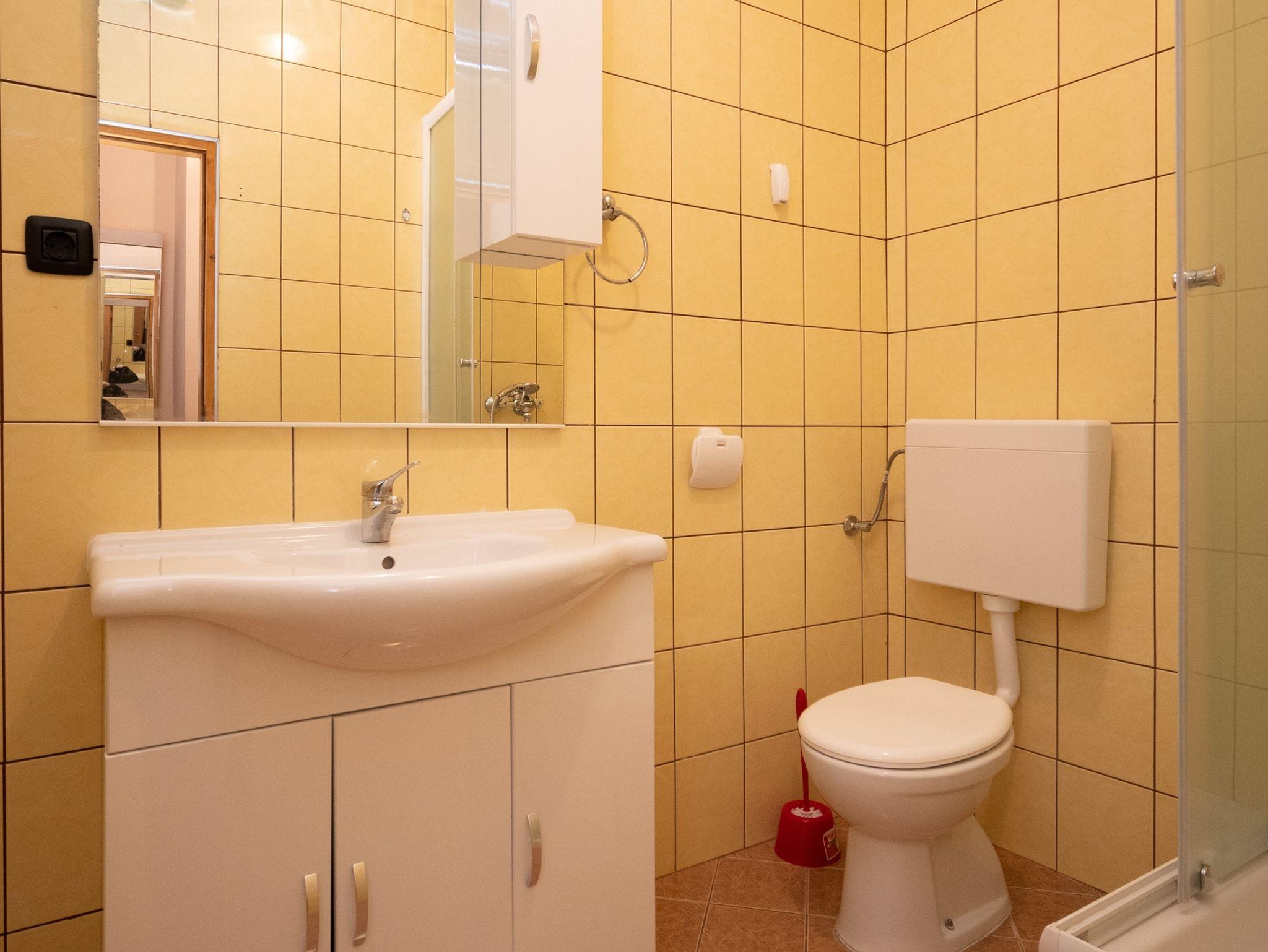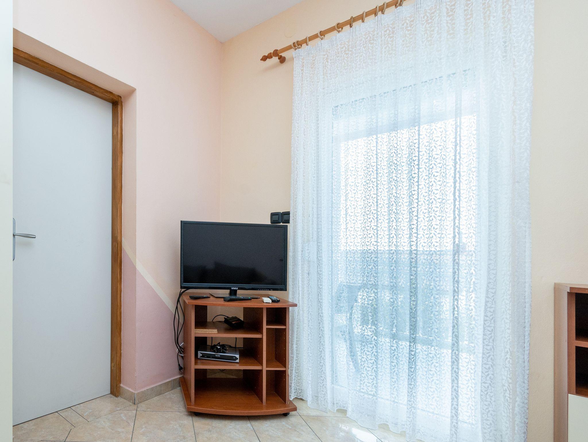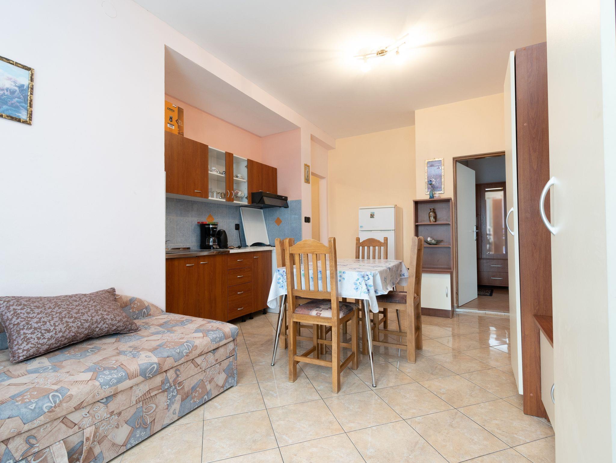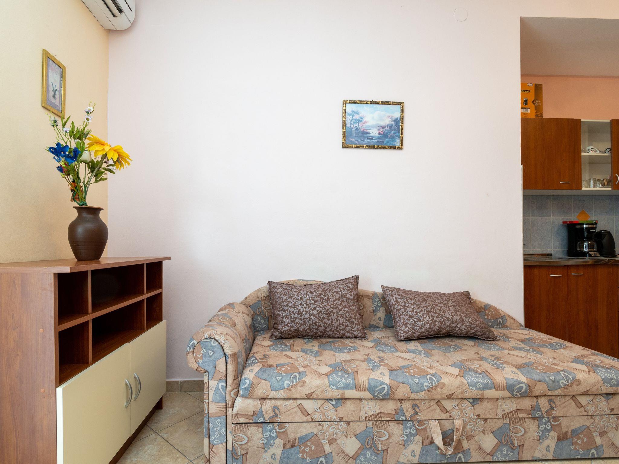 Ferienwohnung bietet Platz für 6 Gäste. Die Betten sind in Schlafzimmern, die es 3 gibt, innerhalb einer Gesamtfläche von 64m2, angeordnet. Die Gäste haben eine eigene Terrasse zur Verfügung, auf der sie in warmen Sommernächten genießen können. Das Apartment bietet Meerblick. Es ist erlaubt, Speisen auf dem Gemeinschafts-Grill vorzubereiten. IM PREIS INBEGRIFFEN: Kurtaxe, Endreinigung, Klimatisierung, Parkplatz, Internet. VERBINDLICHE ZUSÄTZLICHE KOSTEN: Aufzahlung für Kurzaufenthalte (prozentualer Zuschlag pro Nächtigungsanzahl: 30% - 1, 20% - 2, 10% - 3). Die Verfügbarkeit zusätzlicher Dienstleistungen in Ihrem reservierten Termin und die Preise derselben (falls nicht aufgeführt) müssen im Voraus überprüft werden. Zusätzliche Dienstleistungen die in der Zahlungsaufforderung nicht aufgeführt sind werden direkt beim Vermieter bezahlt, angenommen der Gast nutzt auch diese. Ermäßigung auf den Grundpreis: Gratistag 14=13 (bei einem Aufenthalt von 14 Tagen oder mehr erhalten Sie einen Gratistag für den Aufenthalt bis 31.12.26).