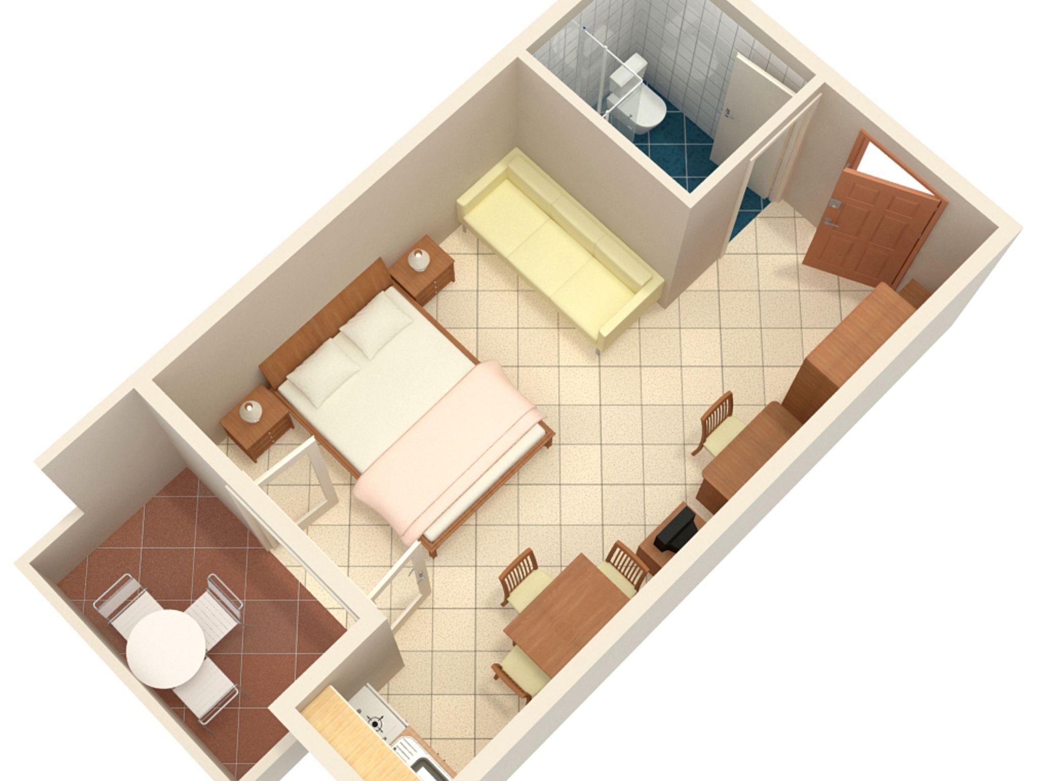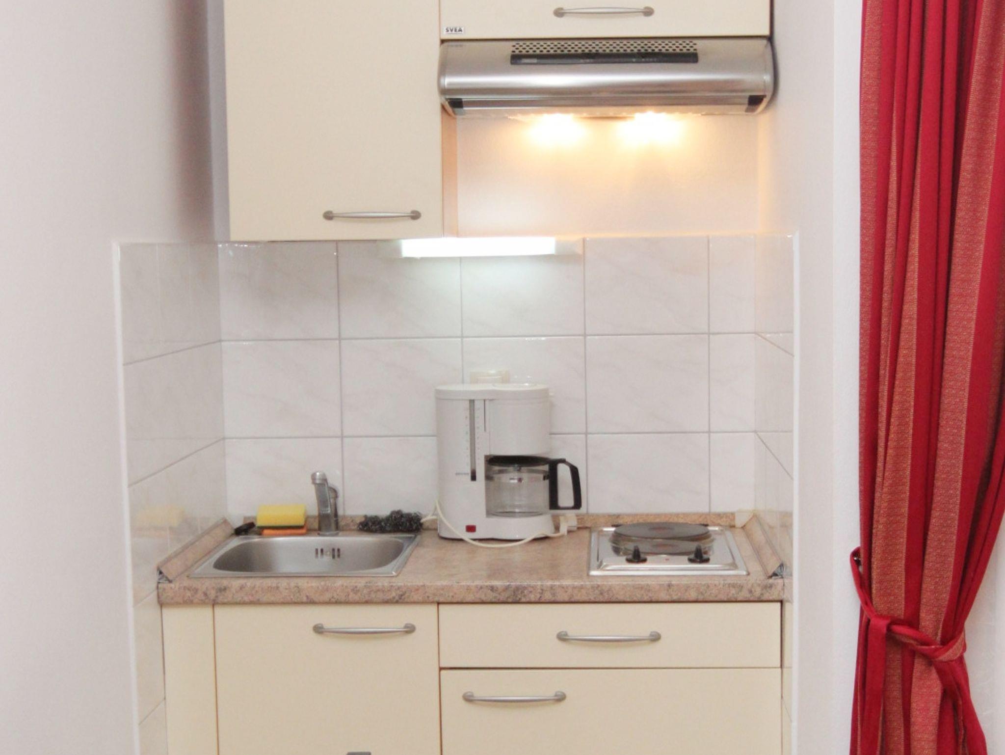 Studio bietet Platz für 3 Gäste. Die Betten sind in Schlafzimmern, die es 1 gibt, innerhalb einer Gesamtfläche von 26m2, angeordnet. Die Gäste haben eine eigene Terrasse zur Verfügung, auf der sie in warmen Sommernächten genießen können. Das Studio-Apartment bietet Meerblick. In der Unterkunftseinheit besteht die Möglichkeit des Mitbringens von Haustieren gegen Aufpreis. IM PREIS INBEGRIFFEN: Endreinigung, Klimatisierung, Parkplatz, Internet, Wäschewaschen, Kinderbett, Bügeleisen, Bügelbrett, Föhn. VERBINDLICHE ZUSÄTZLICHE KOSTEN: Kurtaxe (Erwachsene 0,93 € - 1,50 € Nacht/Person, Kinderermäßigung 12 - 17 Jahre), Aufzahlung für Kurzaufenthalte (prozentualer Zuschlag pro Nächtigungsanzahl: 30% - 1, 20% - 2, 10% - 3). UNVERBINDLICHE ZUSÄTZLICHE KOSTEN: Frühstück (13,00 €, 50% Nachlass für Kinder zwischen 4 und 12 Jahren, Kinder bis 4 Jahre sind frei.), Halbpension (40,00 €, 50% Nachlass für Kinder zwischen 4 und 12 Jahren, Kinder bis 4 Jahre sind frei.), Haustiere (3,00 € pro Nacht). Die Verfügbarkeit zusätzlicher Dienstleistungen in Ihrem reservierten Termin und die Preise derselben (falls nicht aufgeführt) müssen im Voraus überprüft werden. Zusätzliche Dienstleistungen die in der Zahlungsaufforderung nicht aufgeführt sind werden direkt beim Vermieter bezahlt, angenommen der Gast nutzt auch diese.
