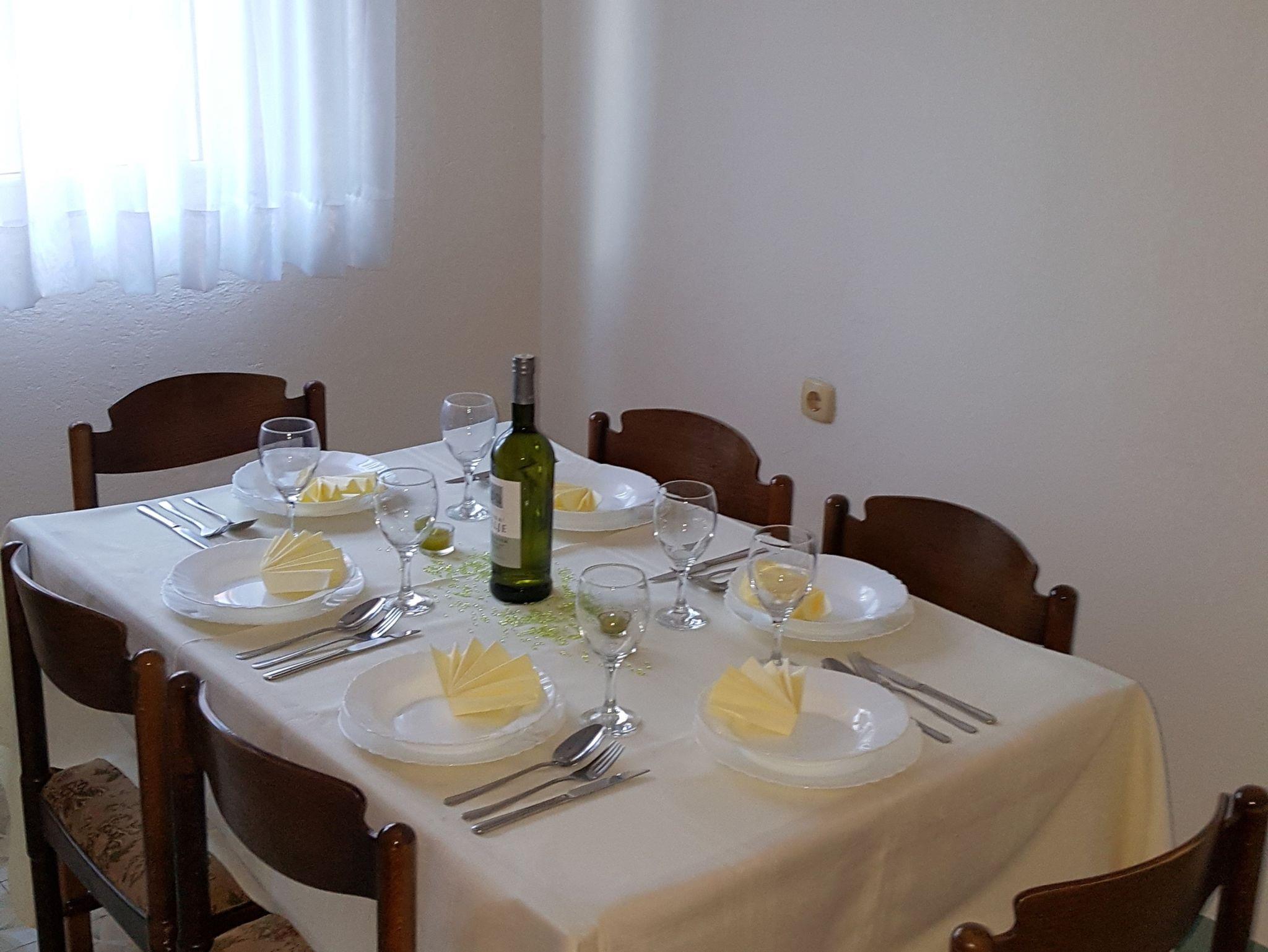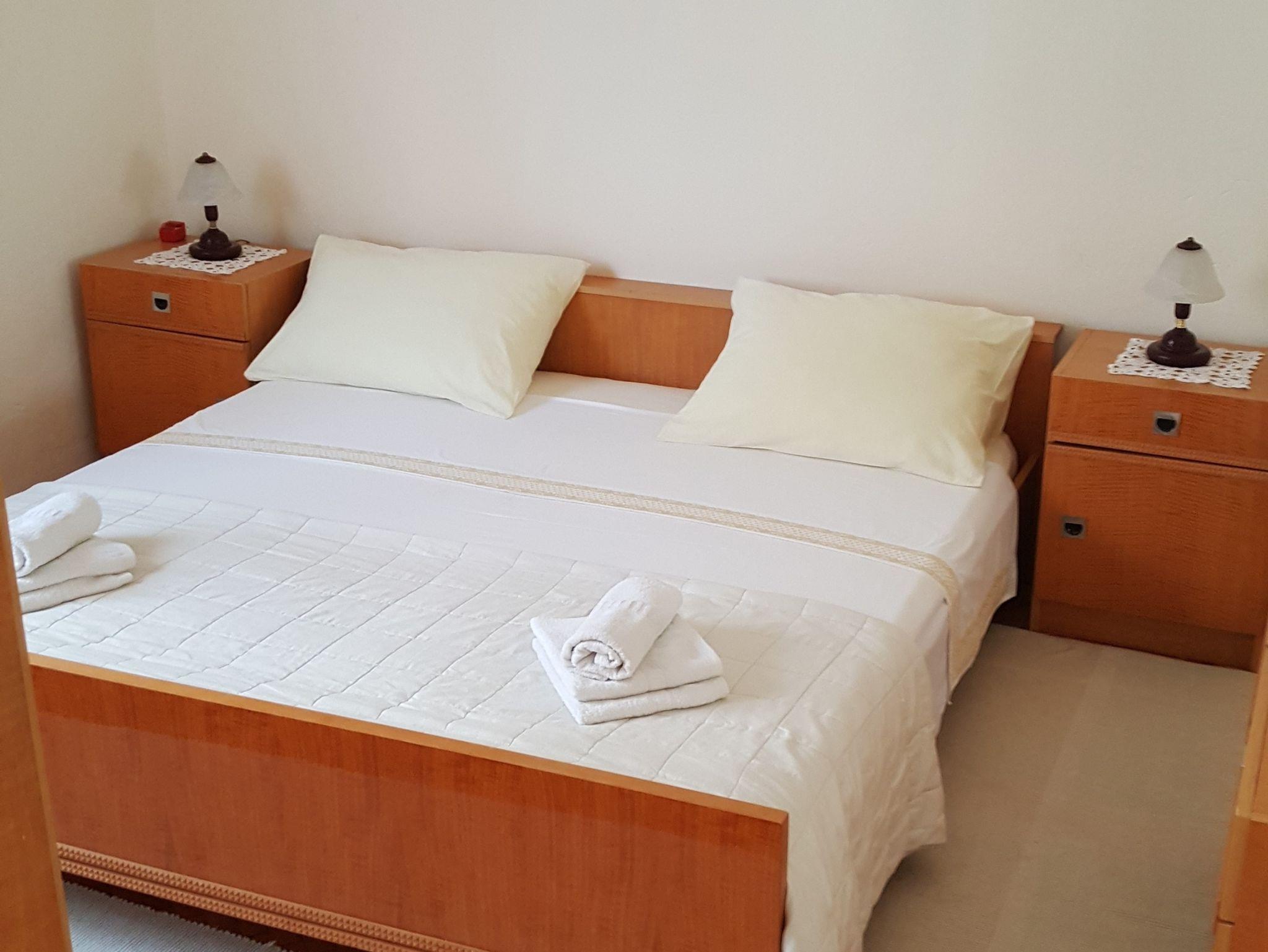 Ferienwohnung bietet Platz für 6 Gäste. Die Betten sind in Schlafzimmern, die es 2 gibt, und in Wohnzimmer, innerhalb einer Gesamtfläche von 54m2, angeordnet. Die Gäste haben eine eigene Terrasse zur Verfügung, auf der sie in warmen Sommernächten genießen können. Das Apartment bietet Meerblick. Es ist erlaubt, Speisen auf dem Gemeinschafts-Grill vorzubereiten. Unterkunftseinheit hat Räume, die von dem Rest der Einheit abgetrennt werden. IM PREIS INBEGRIFFEN: Kurtaxe, Endreinigung, Klimatisierung, Internet, Kinderbett, Zusatzbett, Bügeleisen, Bügelbrett, Föhn, tragbarer Grill. Die Verfügbarkeit zusätzlicher Dienstleistungen in Ihrem reservierten Termin und die Preise derselben (falls nicht aufgeführt) müssen im Voraus überprüft werden. Zusätzliche Dienstleistungen die in der Zahlungsaufforderung nicht aufgeführt sind werden direkt beim Vermieter bezahlt, angenommen der Gast nutzt auch diese. Ermäßigung auf den Grundpreis: Gratistag 14=13 (bei einem Aufenthalt von 14 Tagen oder mehr erhalten Sie einen Gratistag für den Aufenthalt bis 31.12.26).