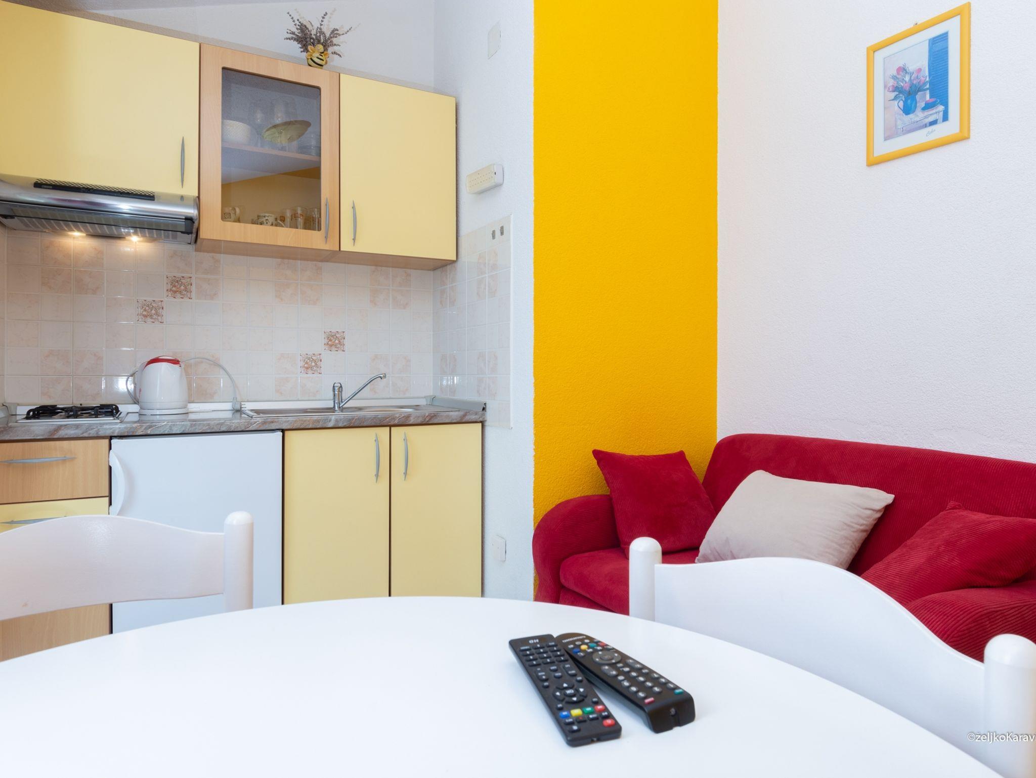 Ferienwohnung bietet Platz für 2 Gäste. Die Betten sind in Schlafzimmern, die es 1 gibt, innerhalb einer Gesamtfläche von 23m2, angeordnet. Die Gäste haben einen eigenen Balkon zur Verfügung, auf der sie in warmen Sommernächten genießen können. Das Apartment bietet Meerblick. Es ist erlaubt, Speisen auf dem Gemeinschafts-Grill vorzubereiten. IM PREIS INBEGRIFFEN: Kurtaxe, Endreinigung, Klimatisierung, Parkplatz, Internet, Kinderbett, Bügeleisen, Föhn. VERBINDLICHE ZUSÄTZLICHE KOSTEN: Aufzahlung für Kurzaufenthalte (prozentualer Zuschlag pro Nächtigungsanzahl: 30% - 1, 20% - 2, 10% - 3). Die Verfügbarkeit zusätzlicher Dienstleistungen in Ihrem reservierten Termin und die Preise derselben (falls nicht aufgeführt) müssen im Voraus überprüft werden. Zusätzliche Dienstleistungen die in der Zahlungsaufforderung nicht aufgeführt sind werden direkt beim Vermieter bezahlt, angenommen der Gast nutzt auch diese.