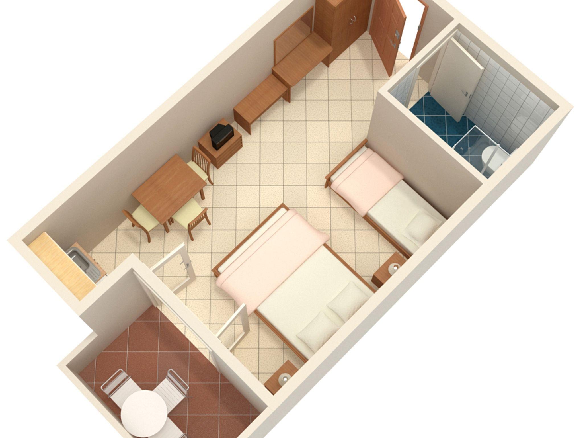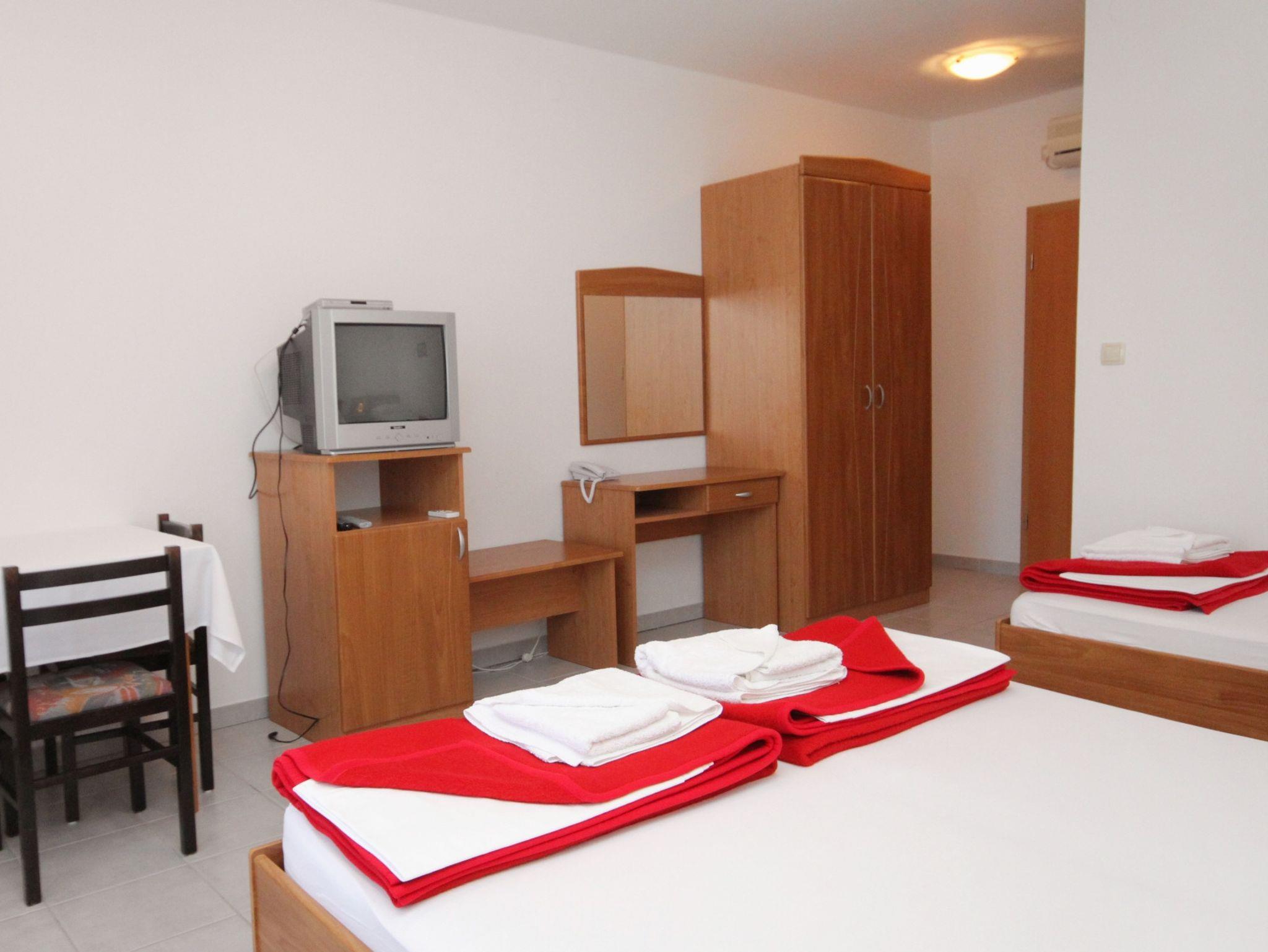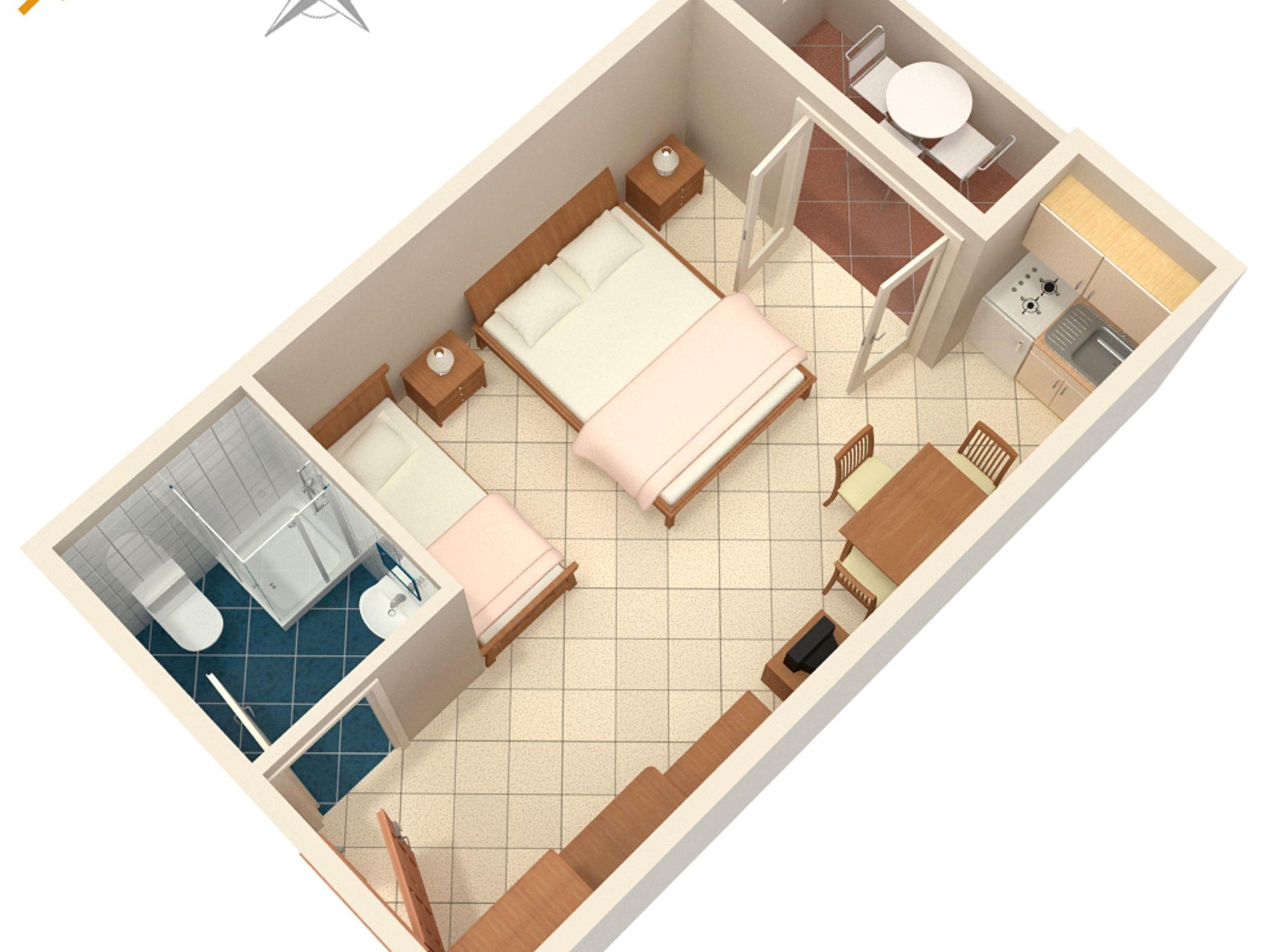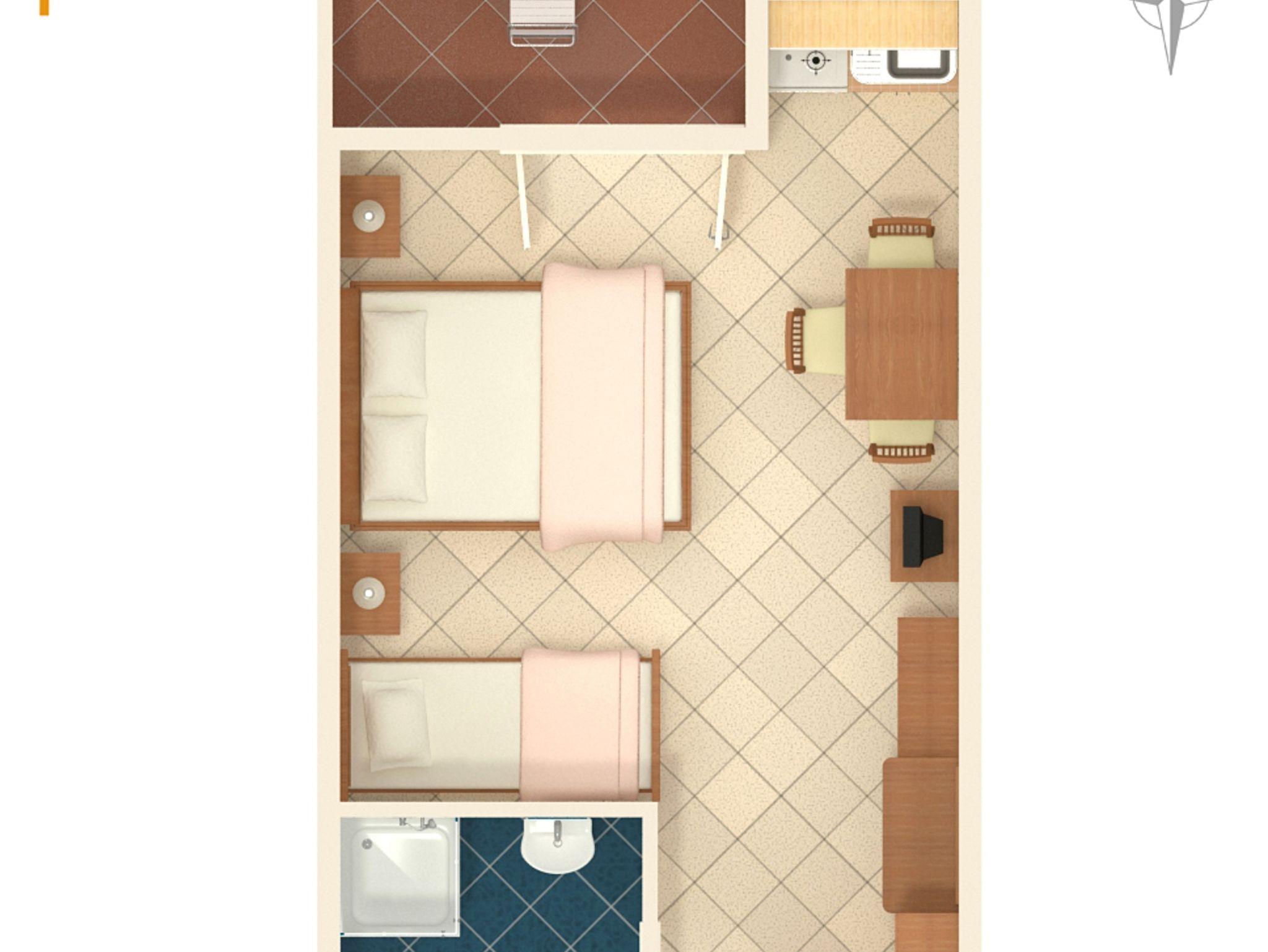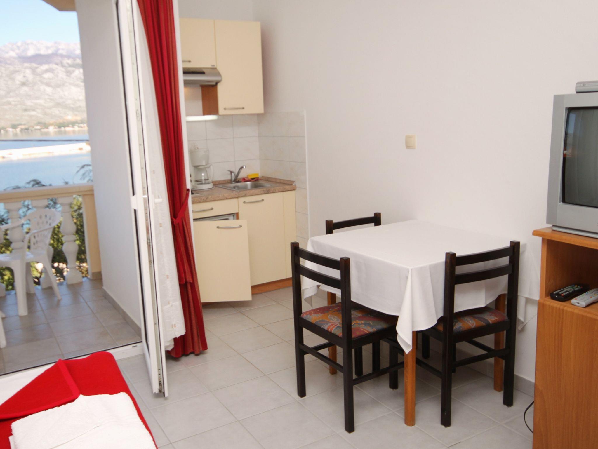 Studio bietet Platz für 3 Gäste. Die Betten sind in Schlafzimmern, die es 1 gibt, innerhalb einer Gesamtfläche von 26m2, angeordnet. Die Gäste haben eine eigene Terrasse zur Verfügung, auf der sie in warmen Sommernächten genießen können. Das Studio-Apartment bietet Meerblick. In der Unterkunftseinheit besteht die Möglichkeit des Mitbringens von Haustieren gegen Aufpreis. IM PREIS INBEGRIFFEN: Endreinigung, Klimatisierung, Parkplatz, Internet, Wäschewaschen, Kinderbett, Bügeleisen, Bügelbrett, Föhn. VERBINDLICHE ZUSÄTZLICHE KOSTEN: Kurtaxe (Erwachsene 0,93 € - 1,50 € Nacht/Person, Kinderermäßigung 12 - 17 Jahre), Aufzahlung für Kurzaufenthalte (prozentualer Zuschlag pro Nächtigungsanzahl: 30% - 1, 20% - 2, 10% - 3). UNVERBINDLICHE ZUSÄTZLICHE KOSTEN: Frühstück (13,00 €, 50% Nachlass für Kinder zwischen 4 und 12 Jahren, Kinder bis 4 Jahre sind frei.), Halbpension (40,00 €, 50% Nachlass für Kinder zwischen 4 und 12 Jahren, Kinder bis 4 Jahre sind frei.), Haustiere (3,00 € pro Nacht). Die Verfügbarkeit zusätzlicher Dienstleistungen in Ihrem reservierten Termin und die Preise derselben (falls nicht aufgeführt) müssen im Voraus überprüft werden. Zusätzliche Dienstleistungen die in der Zahlungsaufforderung nicht aufgeführt sind werden direkt beim Vermieter bezahlt, angenommen der Gast nutzt auch diese.