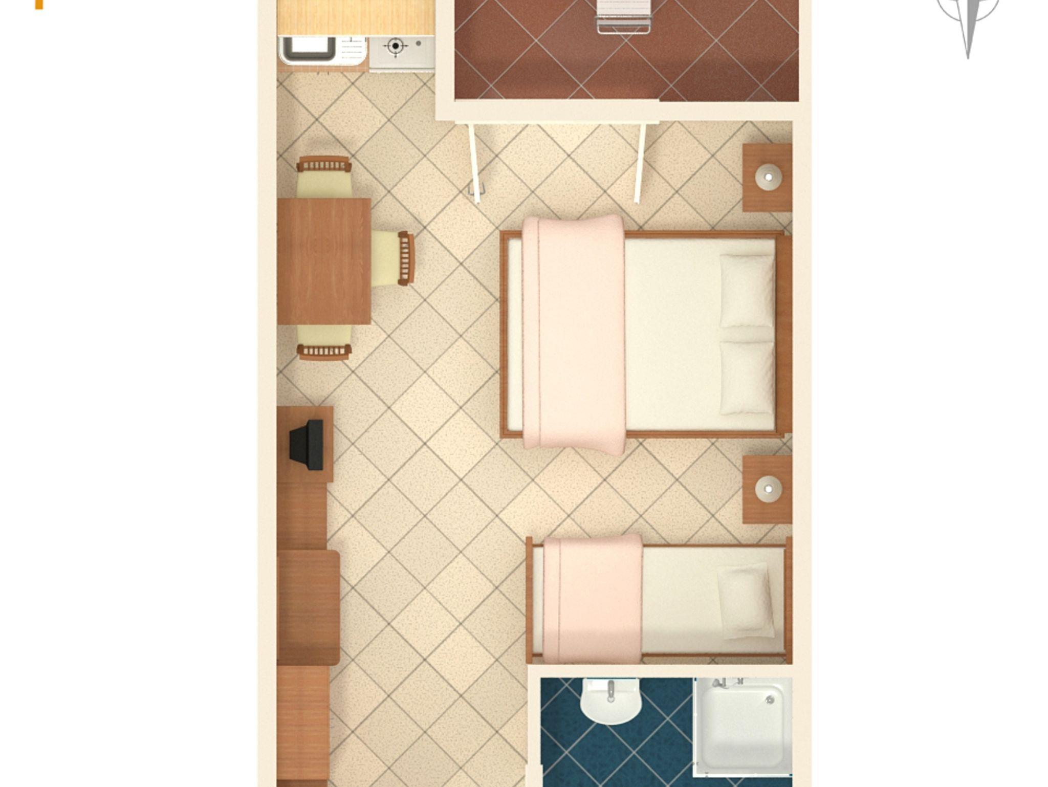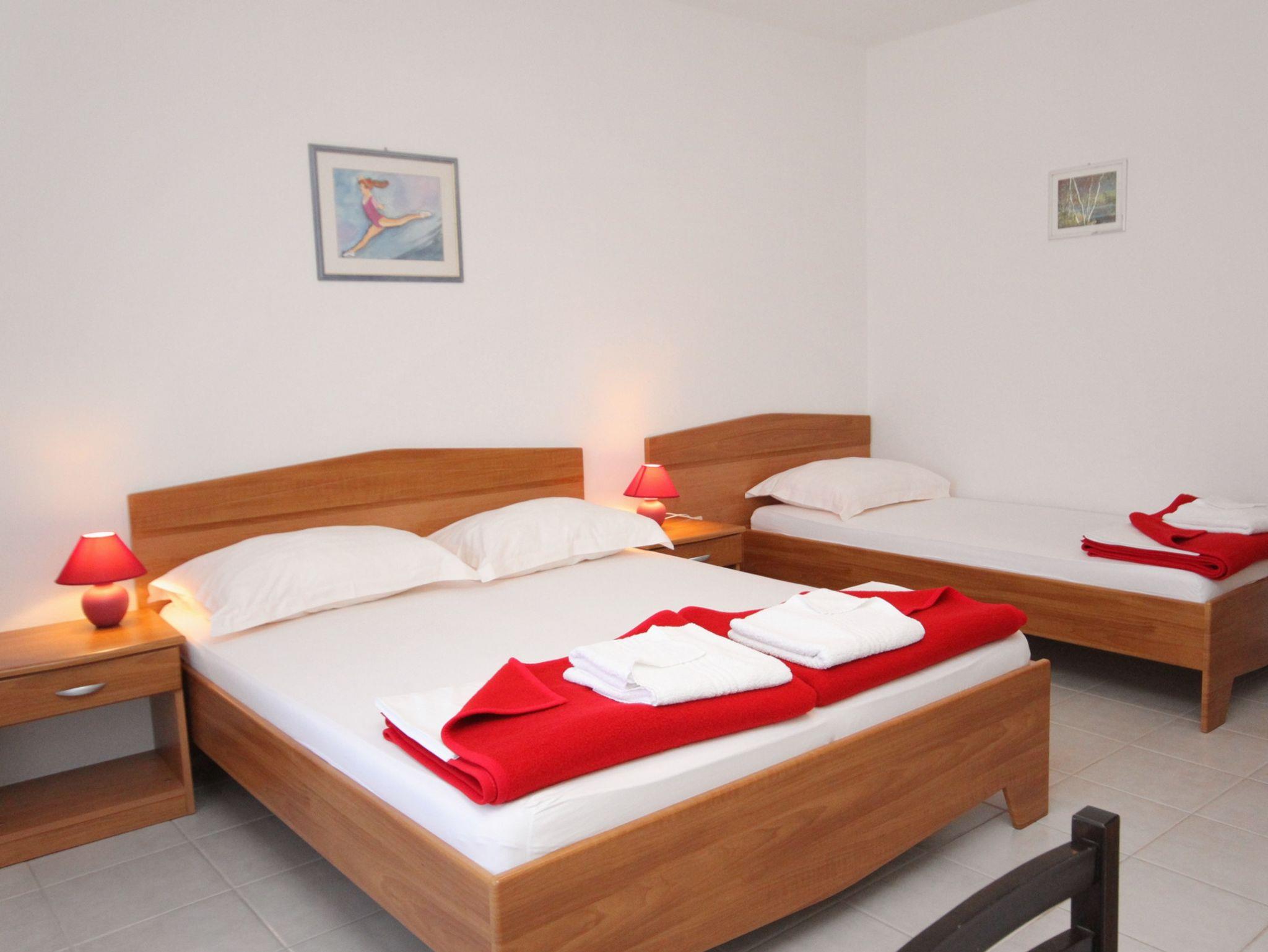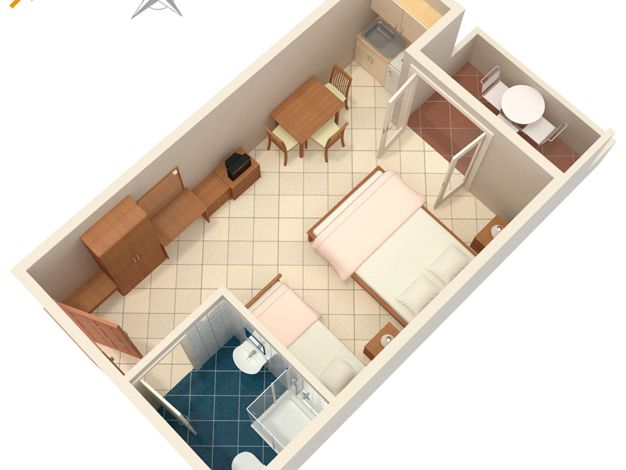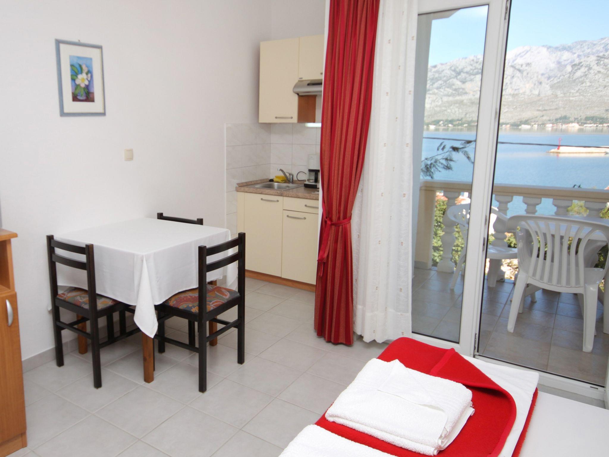 Studio bietet Platz für 3 Gäste. Die Betten sind in Schlafzimmern, die es 1 gibt, innerhalb einer Gesamtfläche von 26m2, angeordnet. Die Gäste haben eine eigene Terrasse zur Verfügung, auf der sie in warmen Sommernächten genießen können. Das Studio-Apartment bietet Meerblick. In der Unterkunftseinheit besteht die Möglichkeit des Mitbringens von Haustieren gegen Aufpreis. IM PREIS INBEGRIFFEN: Endreinigung, Klimatisierung, Parkplatz, Internet, Wäschewaschen, Kinderbett, Bügeleisen, Bügelbrett, Föhn. VERBINDLICHE ZUSÄTZLICHE KOSTEN: Kurtaxe (Erwachsene 0,93 € - 1,50 € Nacht/Person, Kinderermäßigung 12 - 17 Jahre), Aufzahlung für Kurzaufenthalte (prozentualer Zuschlag pro Nächtigungsanzahl: 30% - 1, 20% - 2, 10% - 3). UNVERBINDLICHE ZUSÄTZLICHE KOSTEN: Frühstück (13,00 €, 50% Nachlass für Kinder zwischen 4 und 12 Jahren, Kinder bis 4 Jahre sind frei.), Halbpension (40,00 €, 50% Nachlass für Kinder zwischen 4 und 12 Jahren, Kinder bis 4 Jahre sind frei.), Haustiere (3,00 € pro Nacht). Die Verfügbarkeit zusätzlicher Dienstleistungen in Ihrem reservierten Termin und die Preise derselben (falls nicht aufgeführt) müssen im Voraus überprüft werden. Zusätzliche Dienstleistungen die in der Zahlungsaufforderung nicht aufgeführt sind werden direkt beim Vermieter bezahlt, angenommen der Gast nutzt auch diese.