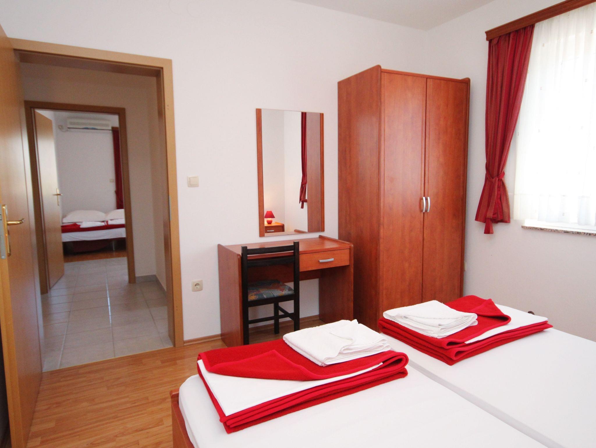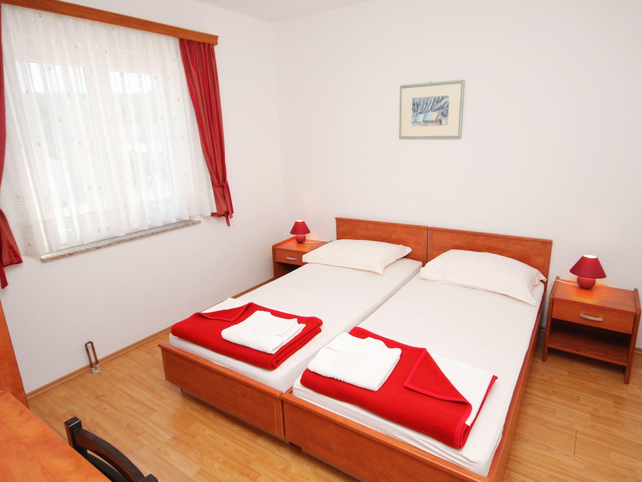 Ferienwohnung bietet Platz für 4 Gäste. Die Betten sind in Schlafzimmern, die es 1 gibt, und in Wohnzimmer, innerhalb einer Gesamtfläche von 38m2, angeordnet. Die Gäste haben eine eigene Terrasse zur Verfügung, auf der sie in warmen Sommernächten genießen können. Das Apartment bietet Meerblick. In der Unterkunftseinheit besteht die Möglichkeit des Mitbringens von Haustieren gegen Aufpreis. IM PREIS INBEGRIFFEN: Endreinigung, Klimatisierung, Parkplatz, Internet, Wäschewaschen, Kinderbett, Bügeleisen, Bügelbrett, Föhn. VERBINDLICHE ZUSÄTZLICHE KOSTEN: Kurtaxe (Erwachsene 0,93 € - 1,50 € Nacht/Person, Kinderermäßigung 12 - 17 Jahre), Aufzahlung für Kurzaufenthalte (prozentualer Zuschlag pro Nächtigungsanzahl: 30% - 1, 20% - 2, 10% - 3). UNVERBINDLICHE ZUSÄTZLICHE KOSTEN: Frühstück (13,00 €, 50% Nachlass für Kinder zwischen 4 und 12 Jahren, Kinder bis 4 Jahre sind frei.), Halbpension (40,00 €, 50% Nachlass für Kinder zwischen 4 und 12 Jahren, Kinder bis 4 Jahre sind frei.), Haustiere (3,00 € pro Nacht). Die Verfügbarkeit zusätzlicher Dienstleistungen in Ihrem reservierten Termin und die Preise derselben (falls nicht aufgeführt) müssen im Voraus überprüft werden. Zusätzliche Dienstleistungen die in der Zahlungsaufforderung nicht aufgeführt sind werden direkt beim Vermieter bezahlt, angenommen der Gast nutzt auch diese.