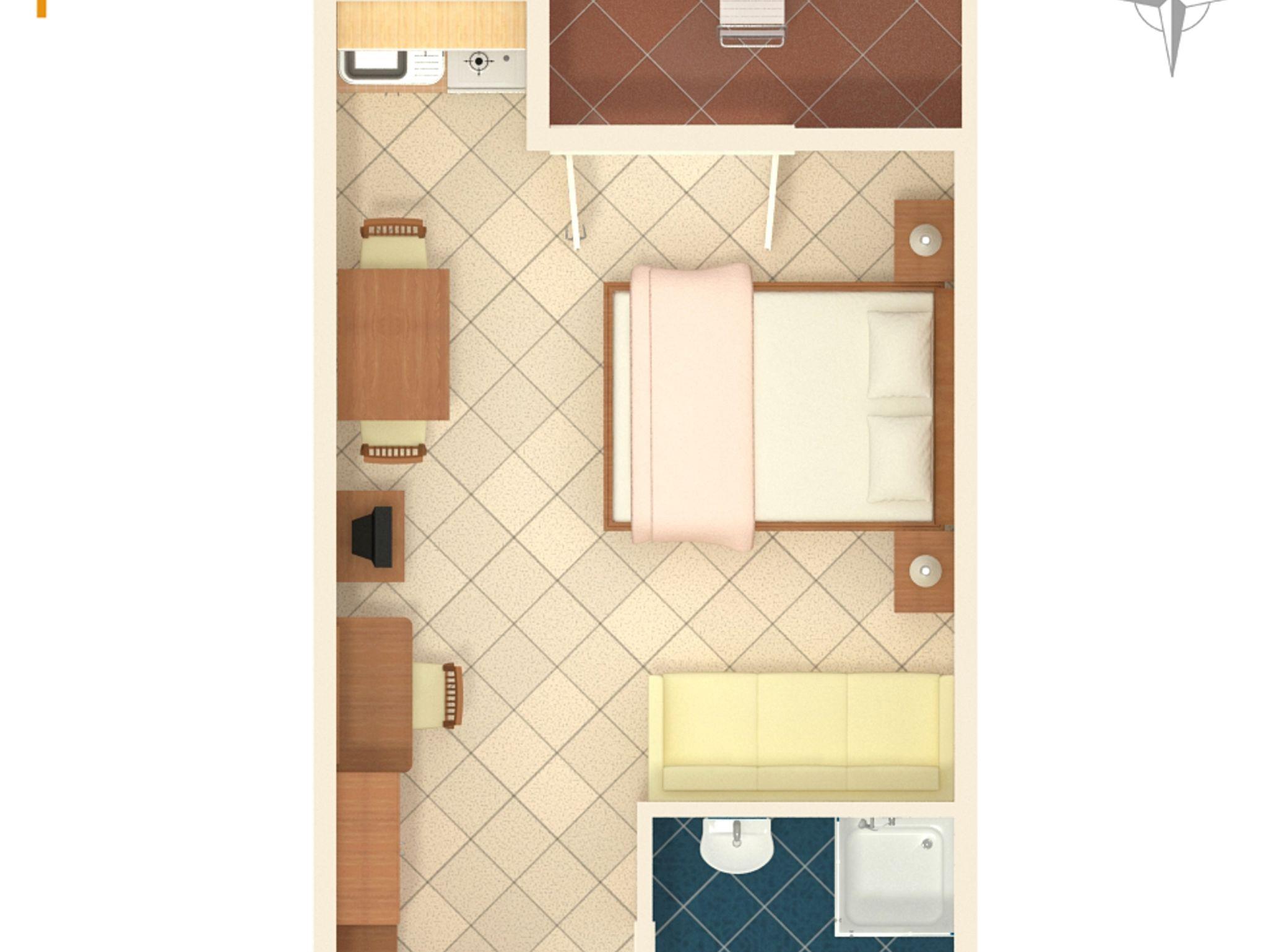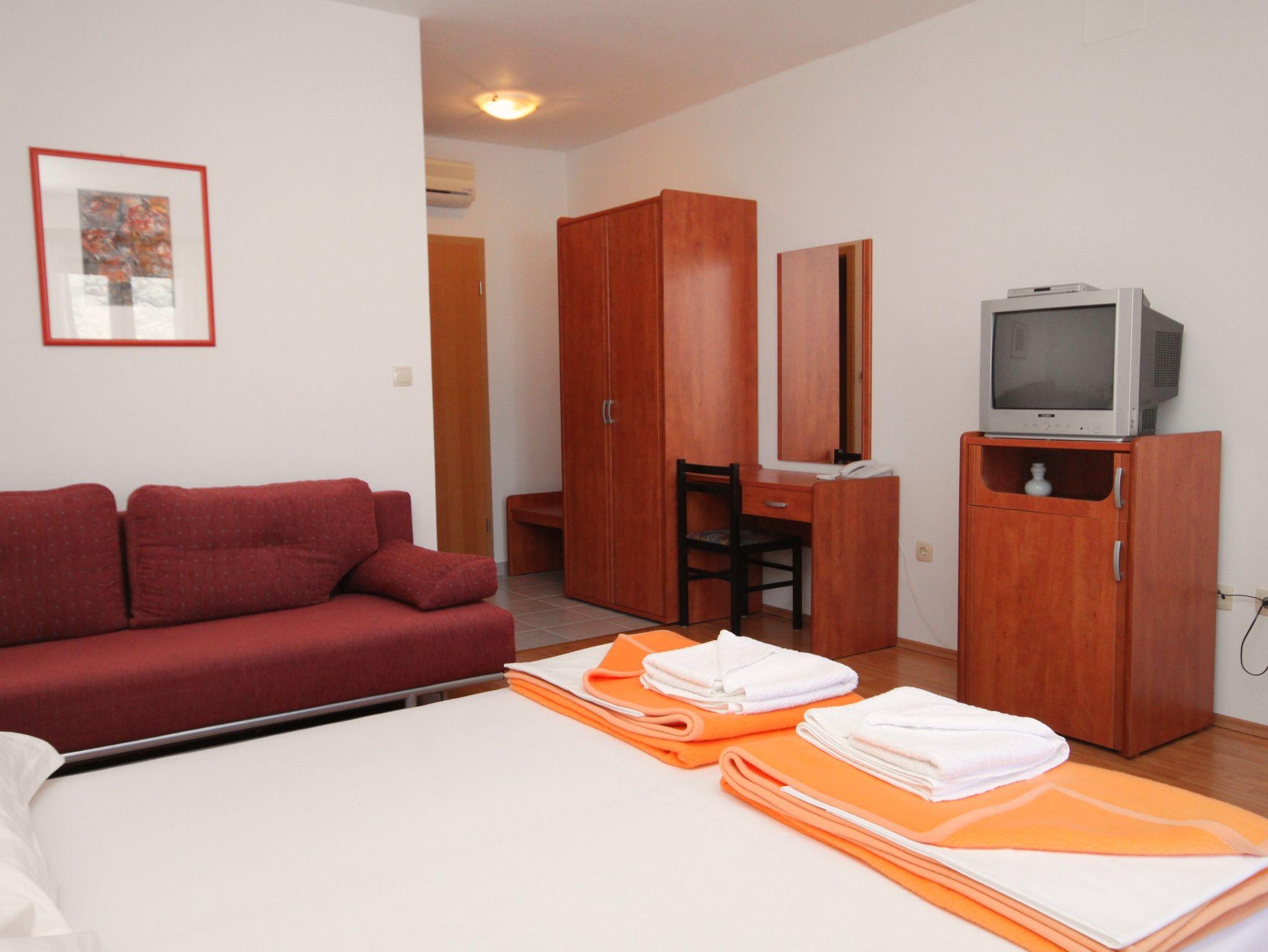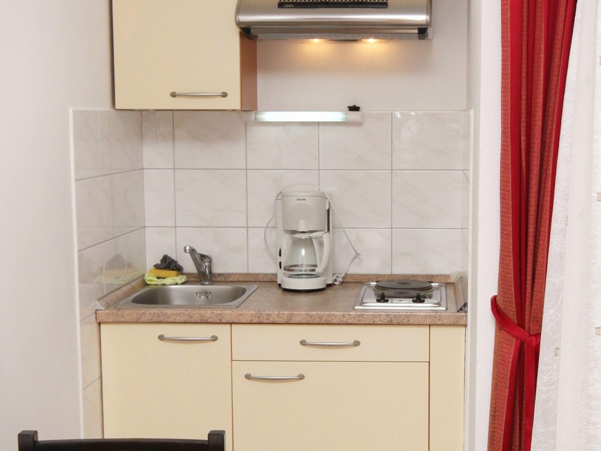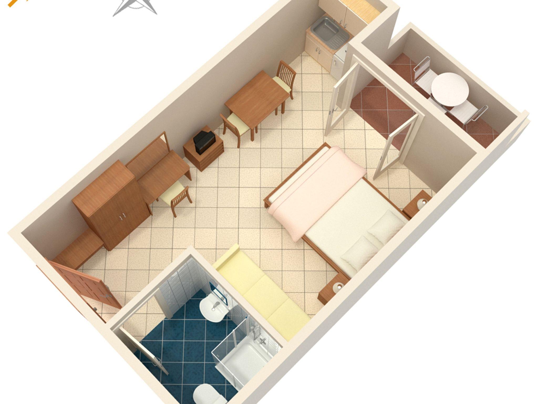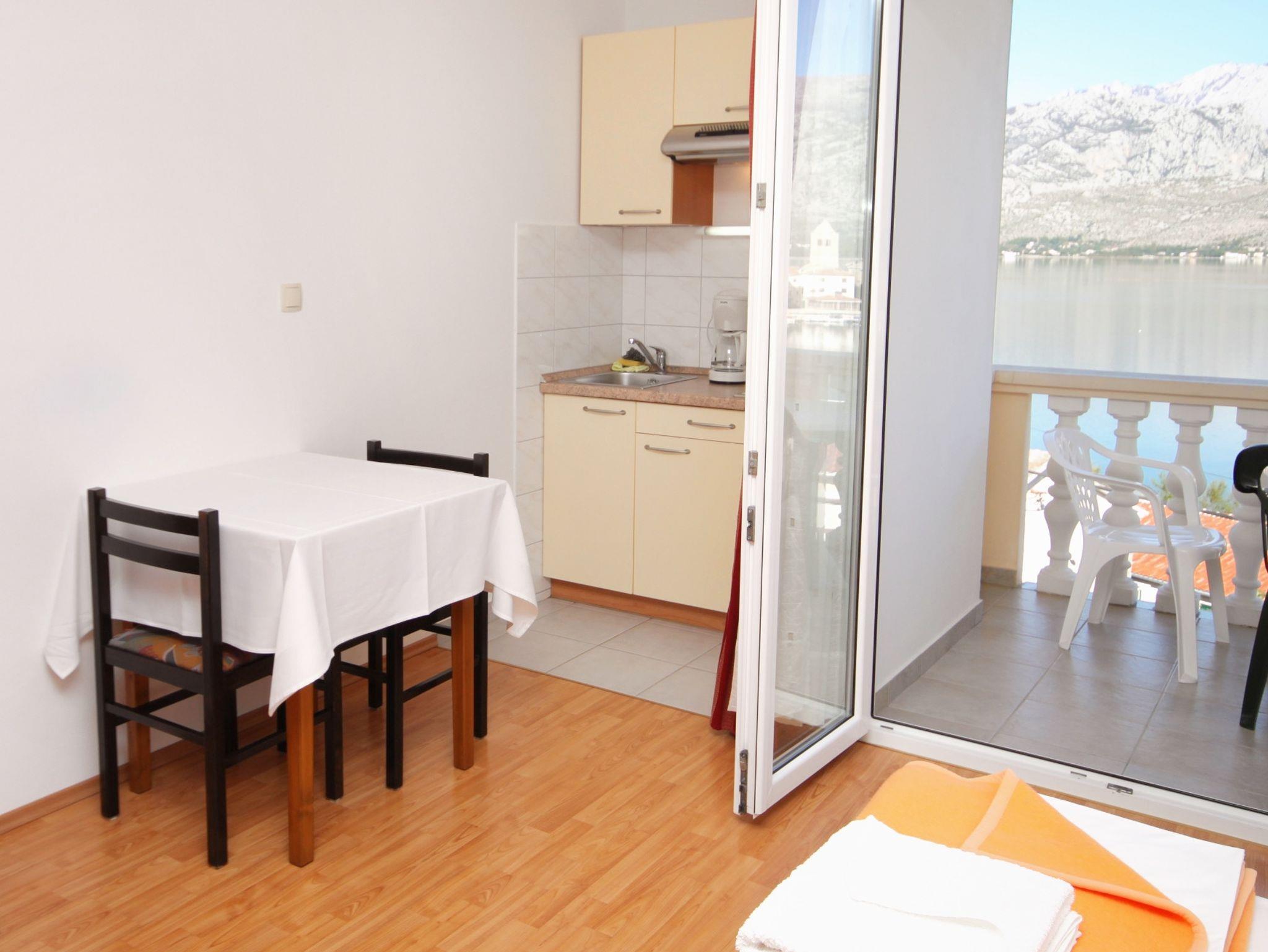 Studio bietet Platz für 3 Gäste. Die Betten sind in Schlafzimmern, die es 1 gibt, innerhalb einer Gesamtfläche von 25m2, angeordnet. Die Gäste haben eine eigene Terrasse zur Verfügung, auf der sie in warmen Sommernächten genießen können. Das Studio-Apartment bietet Meerblick. In der Unterkunftseinheit besteht die Möglichkeit des Mitbringens von Haustieren gegen Aufpreis. IM PREIS INBEGRIFFEN: Endreinigung, Klimatisierung, Parkplatz, Internet, Wäschewaschen, Kinderbett, Bügeleisen, Bügelbrett, Föhn. VERBINDLICHE ZUSÄTZLICHE KOSTEN: Kurtaxe (Erwachsene 0,93 € - 1,50 € Nacht/Person, Kinderermäßigung 12 - 17 Jahre), Aufzahlung für Kurzaufenthalte (prozentualer Zuschlag pro Nächtigungsanzahl: 30% - 1, 20% - 2, 10% - 3). UNVERBINDLICHE ZUSÄTZLICHE KOSTEN: Frühstück (13,00 €, 50% Nachlass für Kinder zwischen 4 und 12 Jahren, Kinder bis 4 Jahre sind frei.), Halbpension (40,00 €, 50% Nachlass für Kinder zwischen 4 und 12 Jahren, Kinder bis 4 Jahre sind frei.), Haustiere (3,00 € pro Nacht). Die Verfügbarkeit zusätzlicher Dienstleistungen in Ihrem reservierten Termin und die Preise derselben (falls nicht aufgeführt) müssen im Voraus überprüft werden. Zusätzliche Dienstleistungen die in der Zahlungsaufforderung nicht aufgeführt sind werden direkt beim Vermieter bezahlt, angenommen der Gast nutzt auch diese.