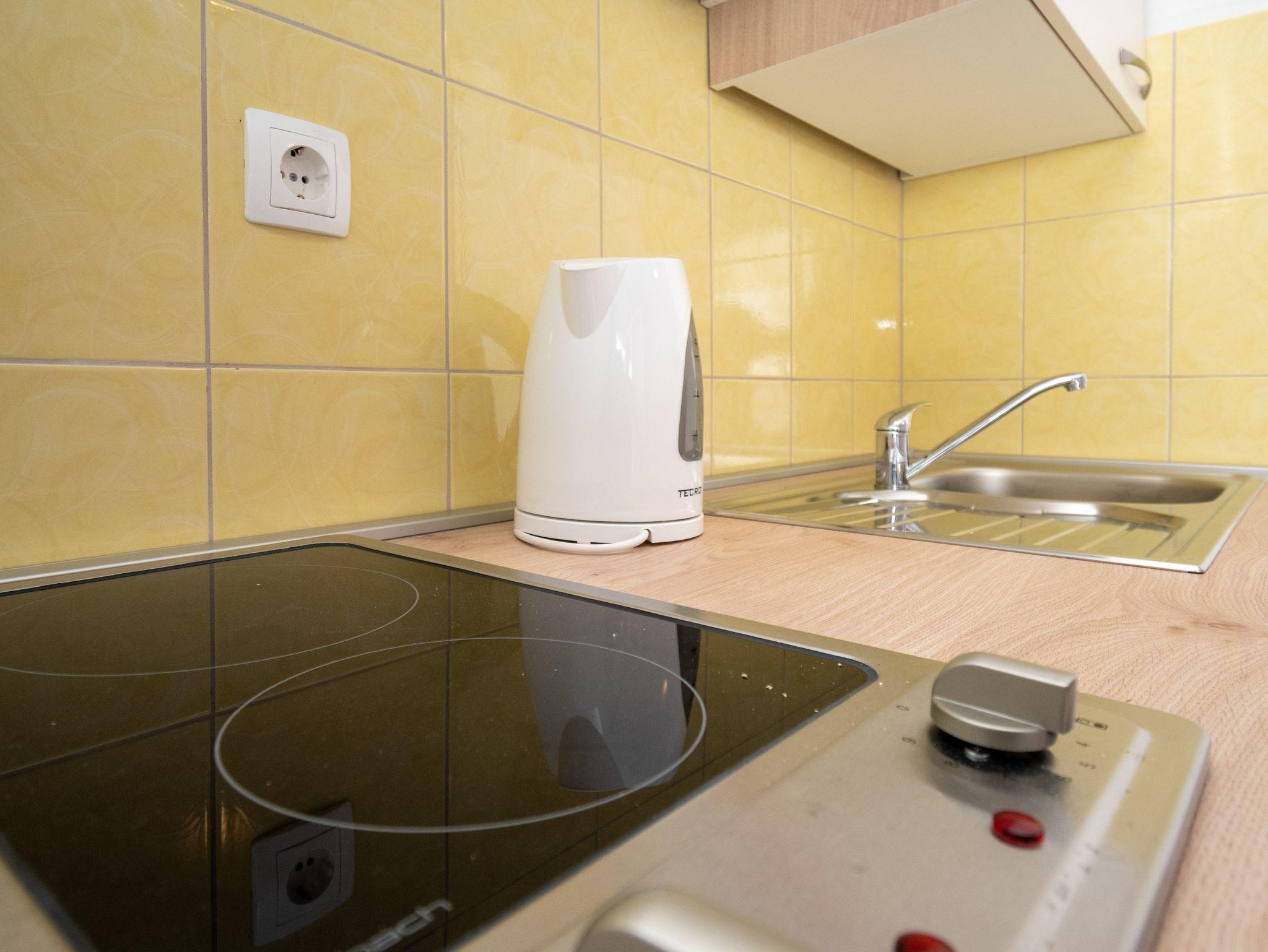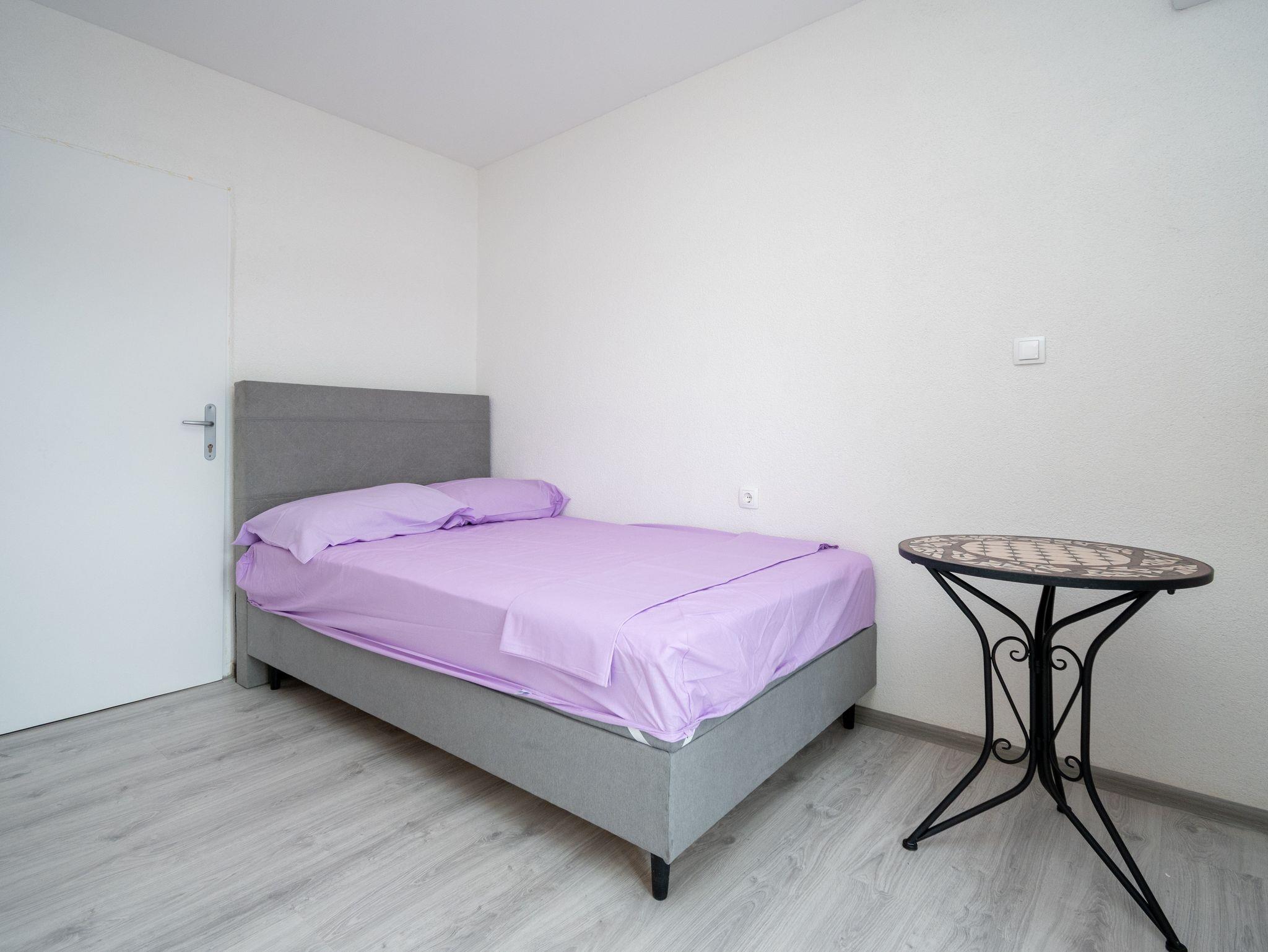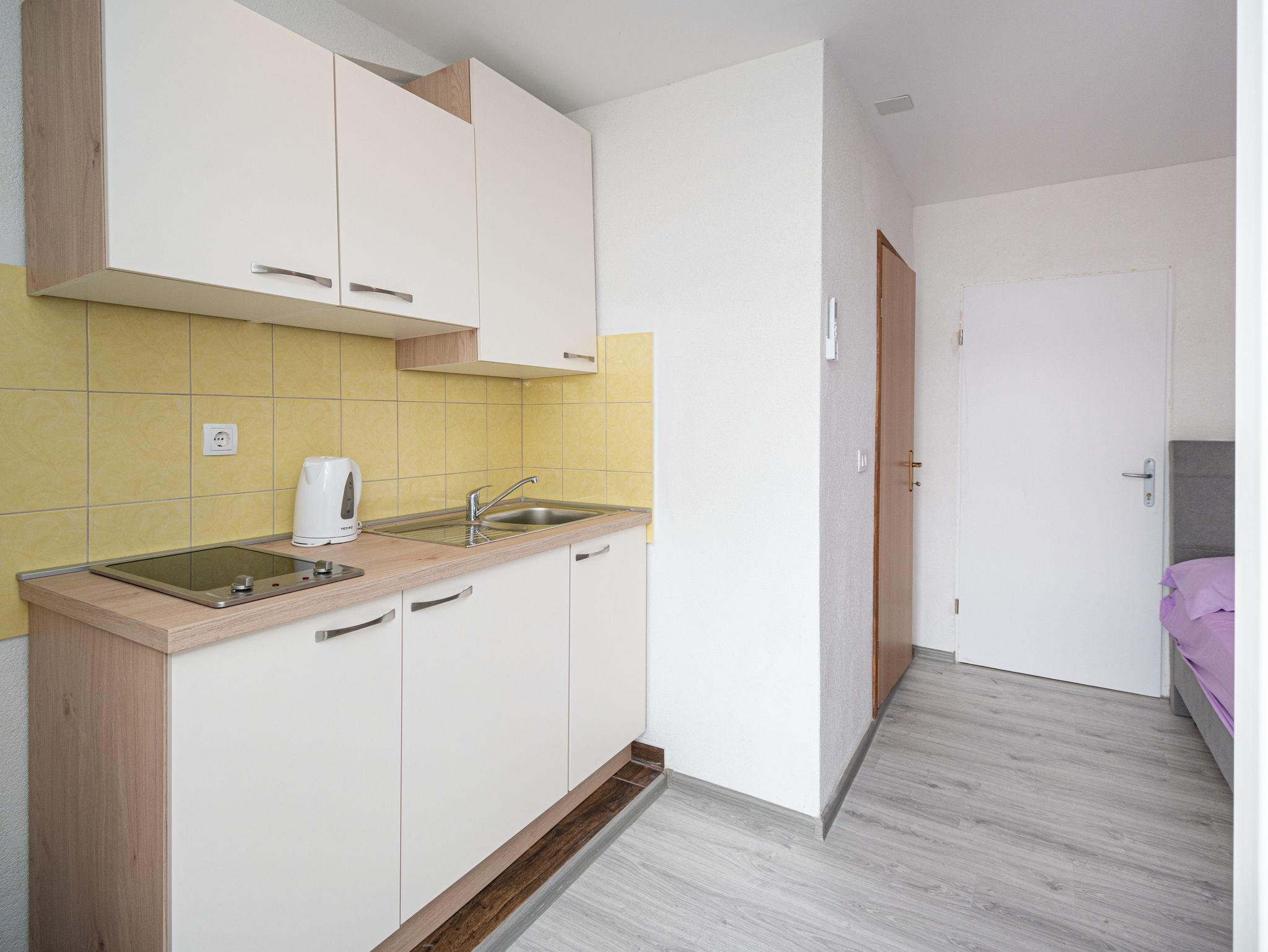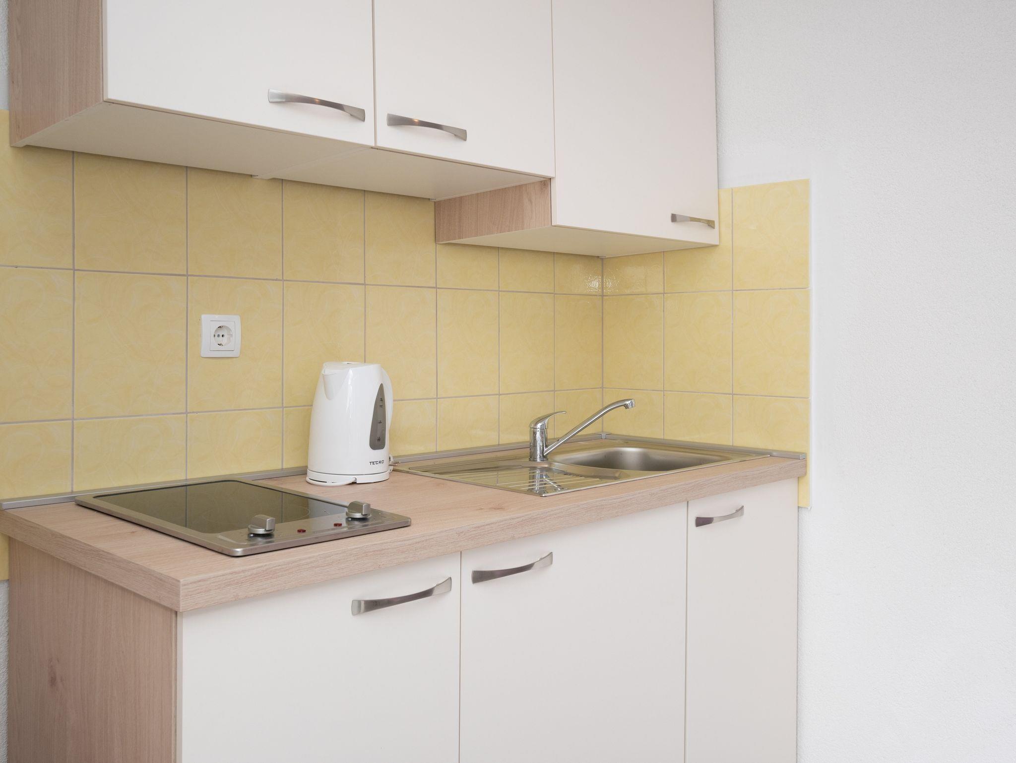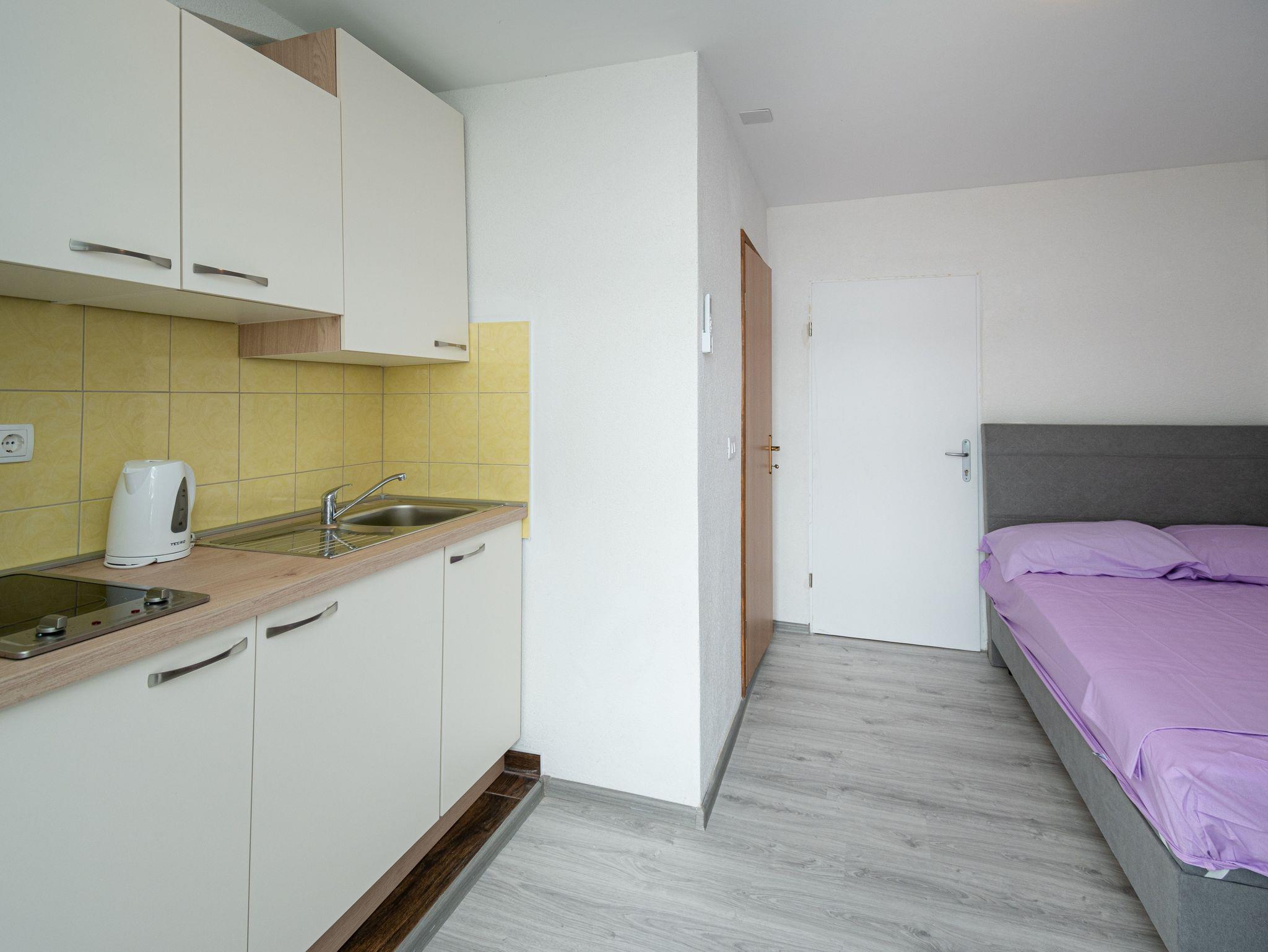 Studio bietet Platz für 2 Gäste. Die Betten sind in Schlafzimmern, die es 1 gibt, innerhalb einer Gesamtfläche von 17m2, angeordnet. Das Studio-Apartment bietet Meerblick. Es ist erlaubt, Speisen auf dem Gemeinschafts-Grill vorzubereiten. Die reservierte Unterkunftseinheit verfügt über einen gemeinsame Terrasse. IM PREIS INBEGRIFFEN: Kurtaxe, Endreinigung, Klimatisierung, Parkplatz, Internet. VERBINDLICHE ZUSÄTZLICHE KOSTEN: Aufzahlung für Kurzaufenthalte (prozentualer Zuschlag pro Nächtigungsanzahl: 30% - 1, 20% - 2, 10% - 3). Die Verfügbarkeit zusätzlicher Dienstleistungen in Ihrem reservierten Termin und die Preise derselben (falls nicht aufgeführt) müssen im Voraus überprüft werden. Zusätzliche Dienstleistungen die in der Zahlungsaufforderung nicht aufgeführt sind werden direkt beim Vermieter bezahlt, angenommen der Gast nutzt auch diese. Ermäßigung auf den Grundpreis: Gratistag 14=13 (bei einem Aufenthalt von 14 Tagen oder mehr erhalten Sie einen Gratistag für den Aufenthalt bis 31.12.26).