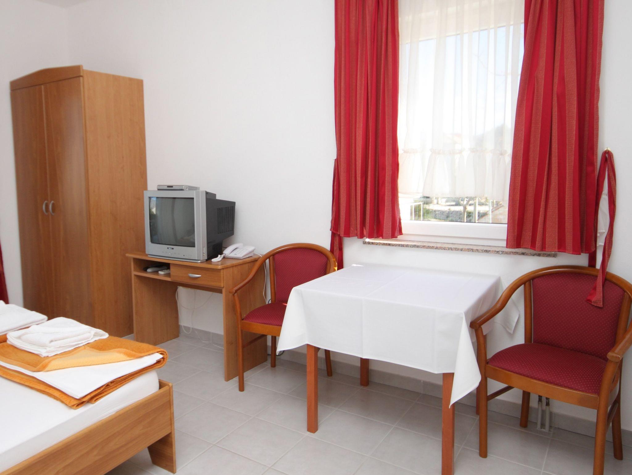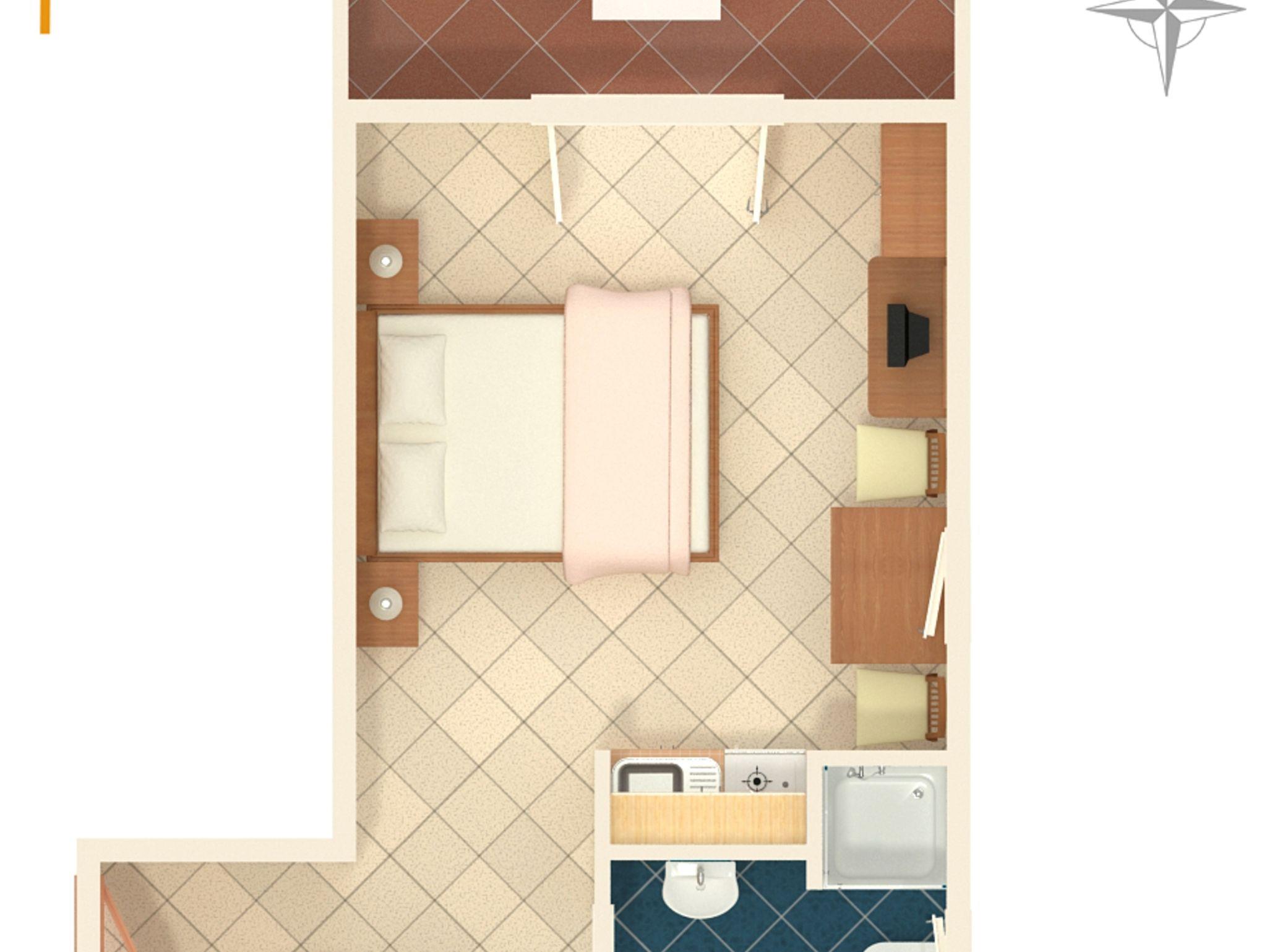 Studio bietet Platz für 2 Gäste. Die Betten sind in Schlafzimmern, die es 1 gibt, innerhalb einer Gesamtfläche von 26m2, angeordnet. Die Gäste haben eine eigene Terrasse zur Verfügung, auf der sie in warmen Sommernächten genießen können. Das Studio-Apartment bietet Meerblick. In der Unterkunftseinheit besteht die Möglichkeit des Mitbringens von Haustieren gegen Aufpreis. IM PREIS INBEGRIFFEN: Endreinigung, Klimatisierung, Parkplatz, Internet, Wäschewaschen, Kinderbett, Bügeleisen, Bügelbrett, Föhn. VERBINDLICHE ZUSÄTZLICHE KOSTEN: Kurtaxe (Erwachsene 0,93 € - 1,50 € Nacht/Person, Kinderermäßigung 12 - 17 Jahre), Aufzahlung für Kurzaufenthalte (prozentualer Zuschlag pro Nächtigungsanzahl: 30% - 1, 20% - 2, 10% - 3). UNVERBINDLICHE ZUSÄTZLICHE KOSTEN: Frühstück (13,00 €, 50% Nachlass für Kinder zwischen 4 und 12 Jahren, Kinder bis 4 Jahre sind frei.), Halbpension (40,00 €, 50% Nachlass für Kinder zwischen 4 und 12 Jahren, Kinder bis 4 Jahre sind frei.), Haustiere (3,00 € pro Nacht). Die Verfügbarkeit zusätzlicher Dienstleistungen in Ihrem reservierten Termin und die Preise derselben (falls nicht aufgeführt) müssen im Voraus überprüft werden. Zusätzliche Dienstleistungen die in der Zahlungsaufforderung nicht aufgeführt sind werden direkt beim Vermieter bezahlt, angenommen der Gast nutzt auch diese.