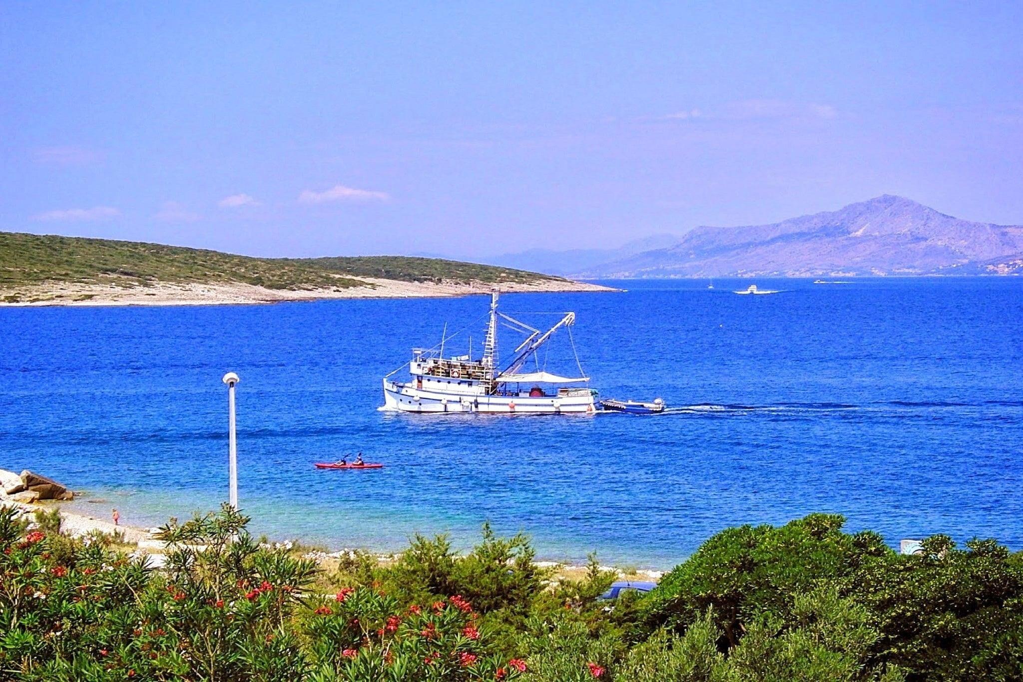 A traditional Dalmatian house, made of stone, in a very attractive and quiet location in Povlja on island Brac, in the immediate vicinity of the beach and 950 meters from the center of Povlja. Three one-bedroom and one studio apartments (cca. 25 m2 each) are on the ground floor of the house. The maximum capacity of each apartment is three adults or two adults with two children up to 12 years old. The third person or two children sleep on the couch in the living room. The couch in each of the apartments can be easily converted into a spacious bed approx. 1.90 m x 1.20 m. Each apartment has its own parking space in front of the house, a separate entrance, a shaded terrace with furniture, a bedroom with a double bed, a kitchen with a dining area and living room in one larger room, as well as a bathroom with shower. Air conditioning, Wi-Fi internet, satellite TV, safe box, bed linen, towels, pots, bowls, plates, cups, glasses, kitchen towels, cutlery, and kettle are standard equipment for each apartment. The washing machine in the laundry room is available to guests (see LAUNDRY on the floor plan). This studio apartment with furnished terrace is perfectly fit for up to three people. It features free WiFi, air conditioning as well as SAT LCD TV. Kitchenette is equipped with refrigerator, water kettle, , kitchen utensils, fan and dining area. The private bathroom comes with shower and toilet. Free toiletries, hair dryer as well as linens and towels are at your disposal. Due to excellent position of this beachfront house , everything you may need for a pleasant stay can be reached within walking distance. If you want to enjoy the sun and the sea this is the perfect location for you, since the property is located only 100 m away from the nearest beach, with many more of them in the surrounding area. Closest grocery store, bus station, caffe and restaurant can can be found within 900 m. Brac airport is 25 km from the property.