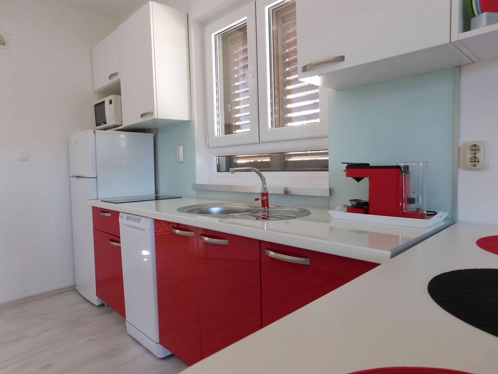 Studio bietet Platz für 2 Gäste. Die Betten sind in Schlafzimmern, die es 1 gibt, innerhalb einer Gesamtfläche von 28m2, angeordnet. Die Gäste haben einen eigenen Balkon zur Verfügung, auf der sie in warmen Sommernächten genießen können. Das Studio-Apartment bietet Meerblick. IM PREIS INBEGRIFFEN: Kurtaxe, Endreinigung, Klimatisierung, Parkplatz, Internet, Wäschewaschen, Bootsanlegeplatz, Zusatzbett, Bügeleisen, Bügelbrett, Föhn, Sonnenschirm. Die Verfügbarkeit zusätzlicher Dienstleistungen in Ihrem reservierten Termin und die Preise derselben (falls nicht aufgeführt) müssen im Voraus überprüft werden. Zusätzliche Dienstleistungen die in der Zahlungsaufforderung nicht aufgeführt sind werden direkt beim Vermieter bezahlt, angenommen der Gast nutzt auch diese. Ermäßigung auf den Grundpreis: Gratistag 14=13 (bei einem Aufenthalt von 14 Tagen oder mehr erhalten Sie einen Gratistag für den Aufenthalt bis 31.12.26).