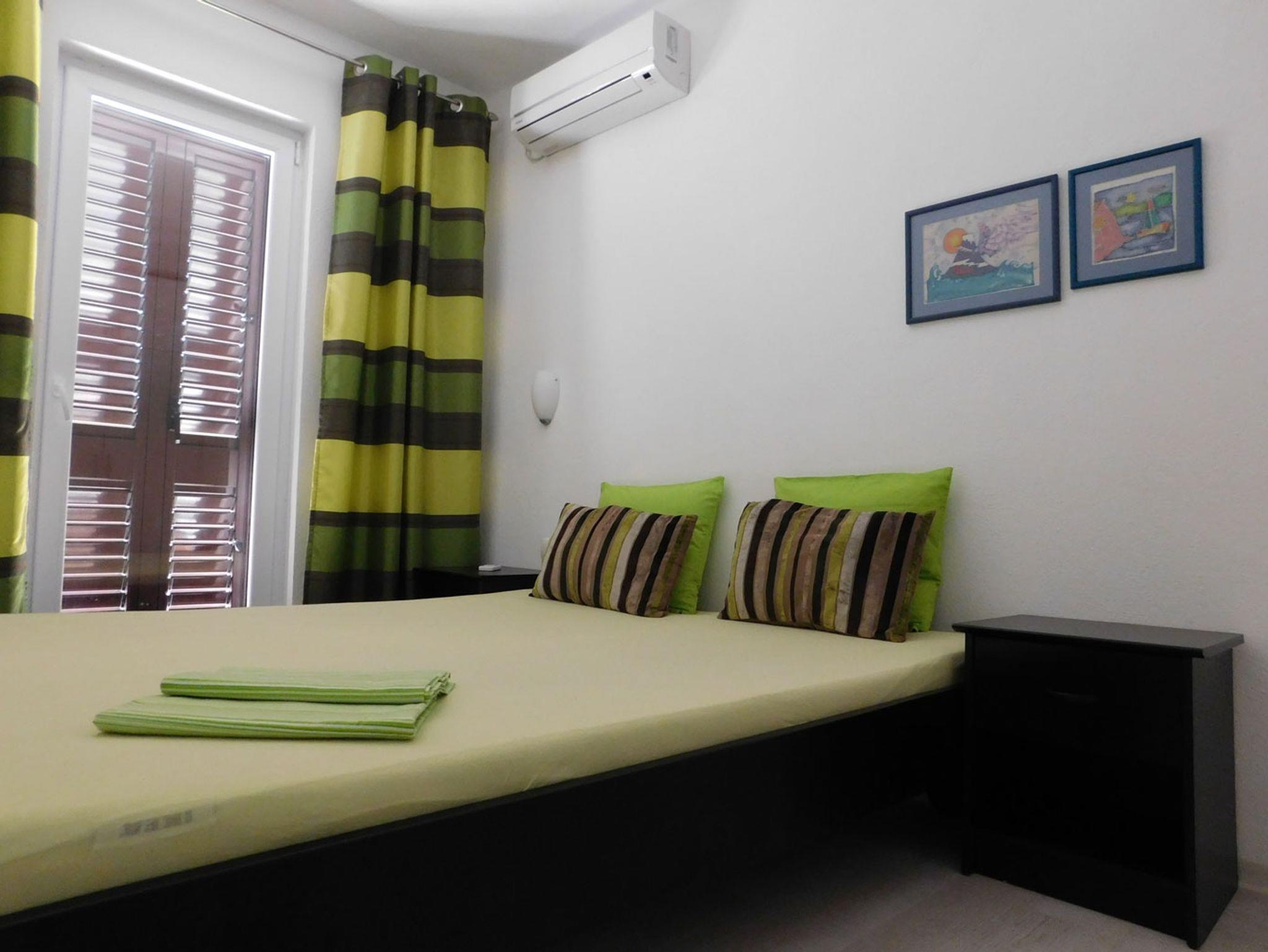 Ferienwohnung bietet Platz für 4 Gäste. Die Betten sind in Schlafzimmern, die es 2 gibt, innerhalb einer Gesamtfläche von 40m2, angeordnet. Die Gäste haben eine eigene Terrasse zur Verfügung, auf der sie in warmen Sommernächten genießen können. Für vollen Genuss und Entspannung gibt es einen privaten Grill für Gäste dieser Unterkunft. IM PREIS INBEGRIFFEN: Kurtaxe, Endreinigung, Klimatisierung, Parkplatz, Internet, Wäschewaschen, Bootsanlegeplatz, Bügeleisen, Bügelbrett, Föhn, Sonnenschirm. Die Verfügbarkeit zusätzlicher Dienstleistungen in Ihrem reservierten Termin und die Preise derselben (falls nicht aufgeführt) müssen im Voraus überprüft werden. Zusätzliche Dienstleistungen die in der Zahlungsaufforderung nicht aufgeführt sind werden direkt beim Vermieter bezahlt, angenommen der Gast nutzt auch diese. Ermäßigung auf den Grundpreis: Gratistag 14=13 (bei einem Aufenthalt von 14 Tagen oder mehr erhalten Sie einen Gratistag für den Aufenthalt bis 31.12.26).