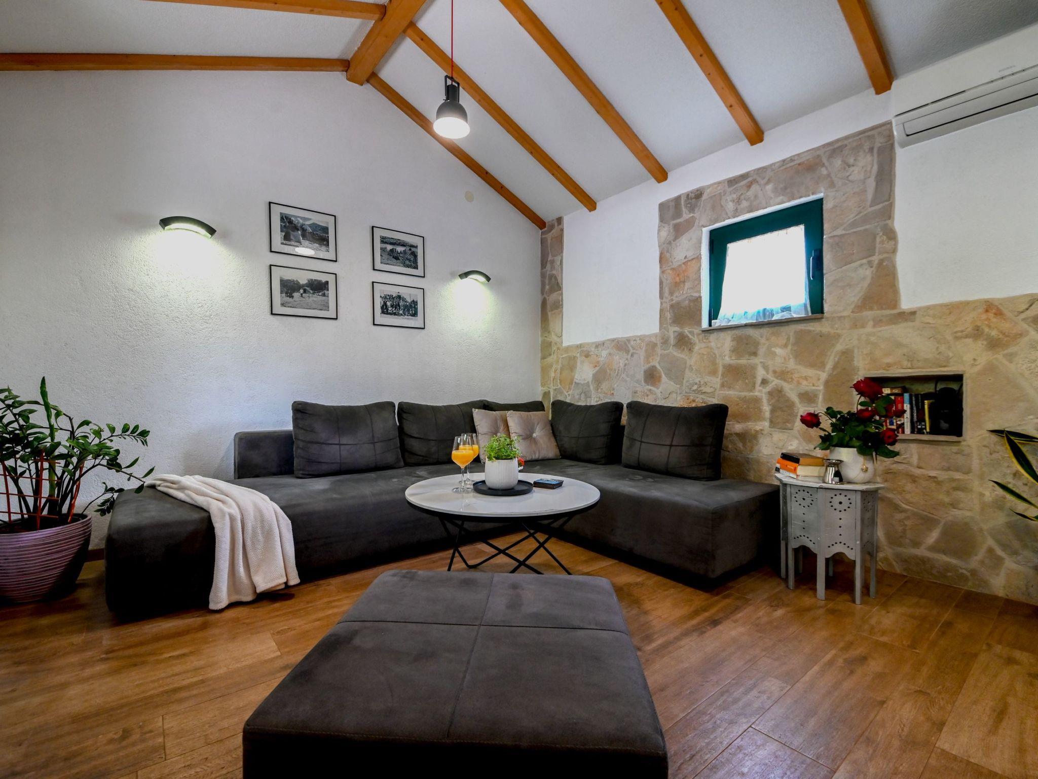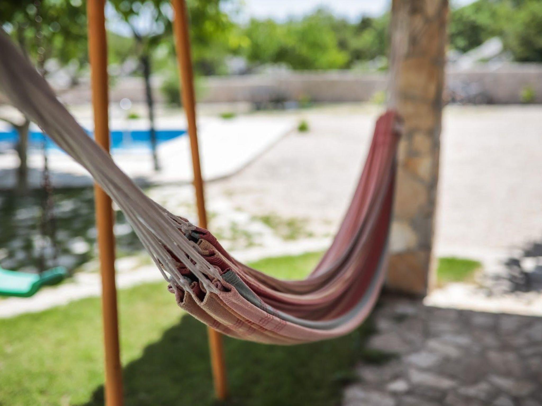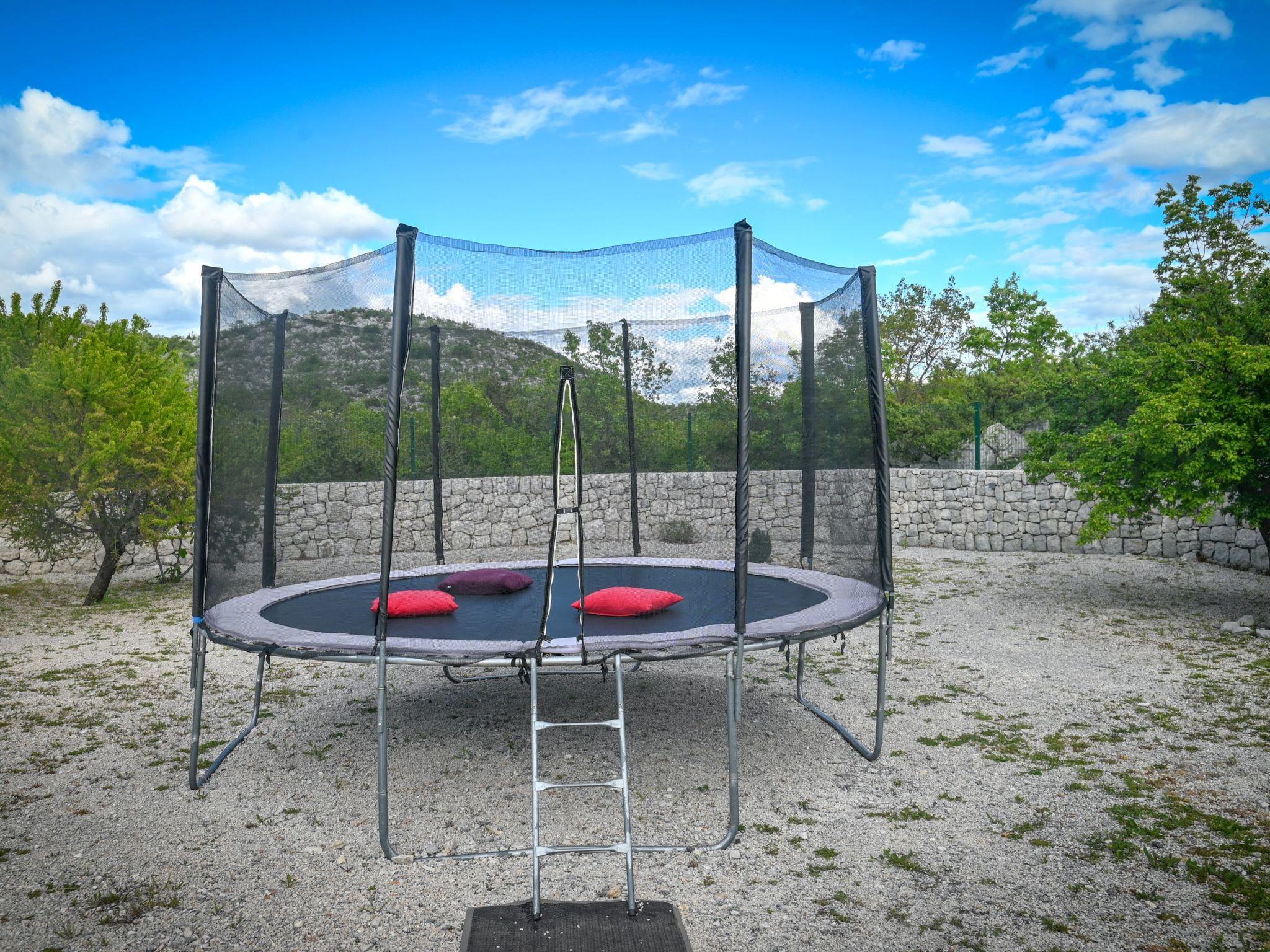 Majority of the house was built by using raw Croatian rocks. On the outside there is a wall surrounding the property to provide privacy , also included is a heated swimming pool,(works from 20.04.to 1.11.) lawn bowl area, barbecue ,table tennis ,trampoline and immense amount( about 3000m) of room for all kinds of activities.If you want to go around the area, there are 4 free bikes.Next to the house is a garden with seasonal fruits and vegetables which are grown on the principles of organic gardening. All in the garden guests can use for free (potatoes, tomatoes, peppers, salads....)