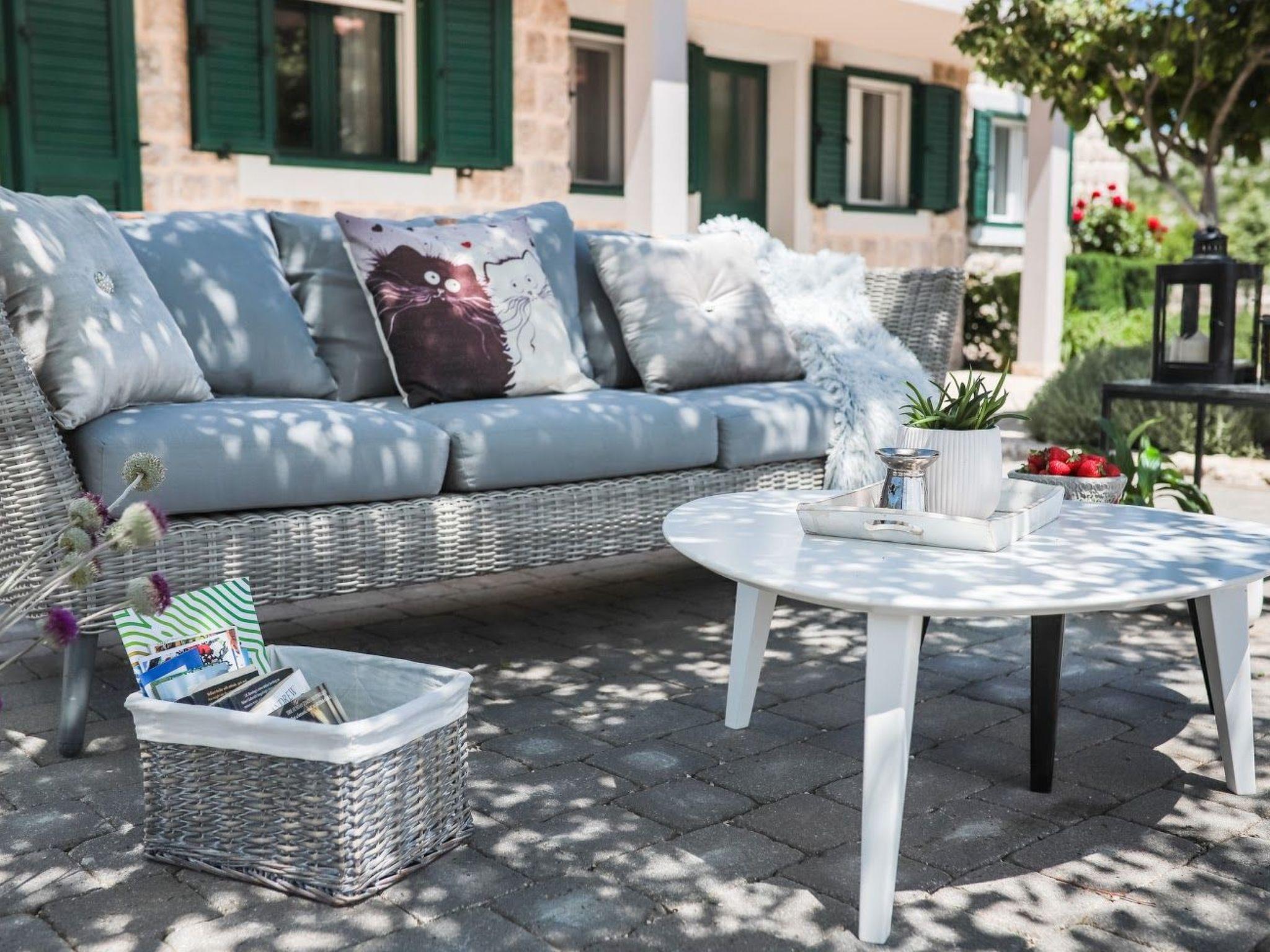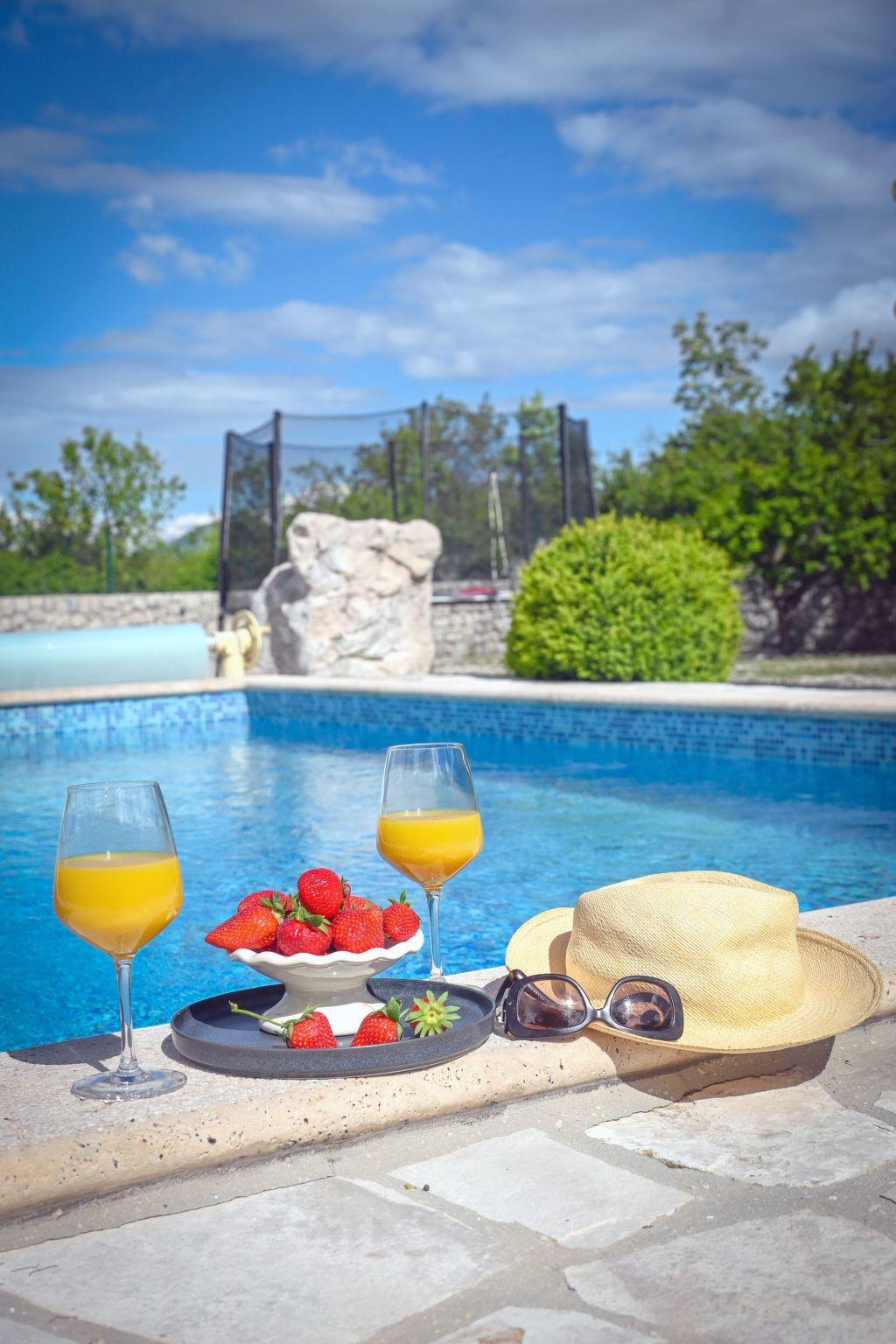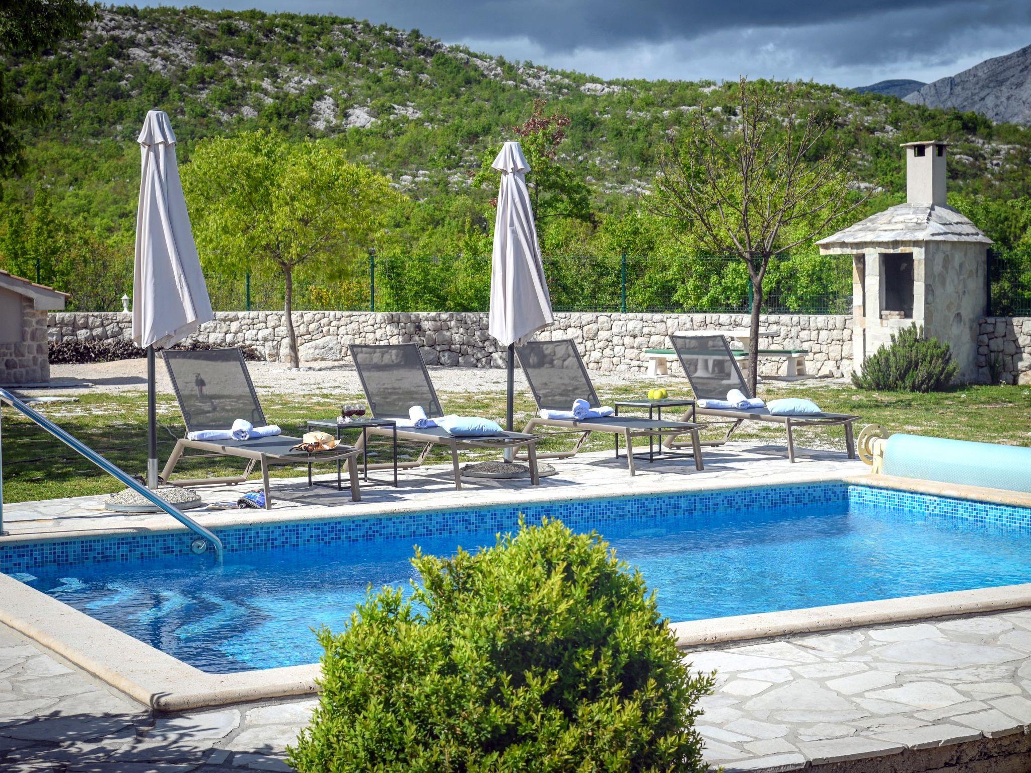 Majority of the house was built by using raw Croatian rocks. On the outside there is a wall surrounding the property to provide privacy , also included is a heated swimming pool,(works from 20.04.to 1.11.) lawn bowl area, barbecue ,table tennis ,trampoline and immense amount( about 3000m) of room for all kinds of activities.If you want to go around the area, there are 4 free bikes.Next to the house is a garden with seasonal fruits and vegetables which are grown on the principles of organic gardening. All in the garden guests can use for free (potatoes, tomatoes, peppers, salads....)