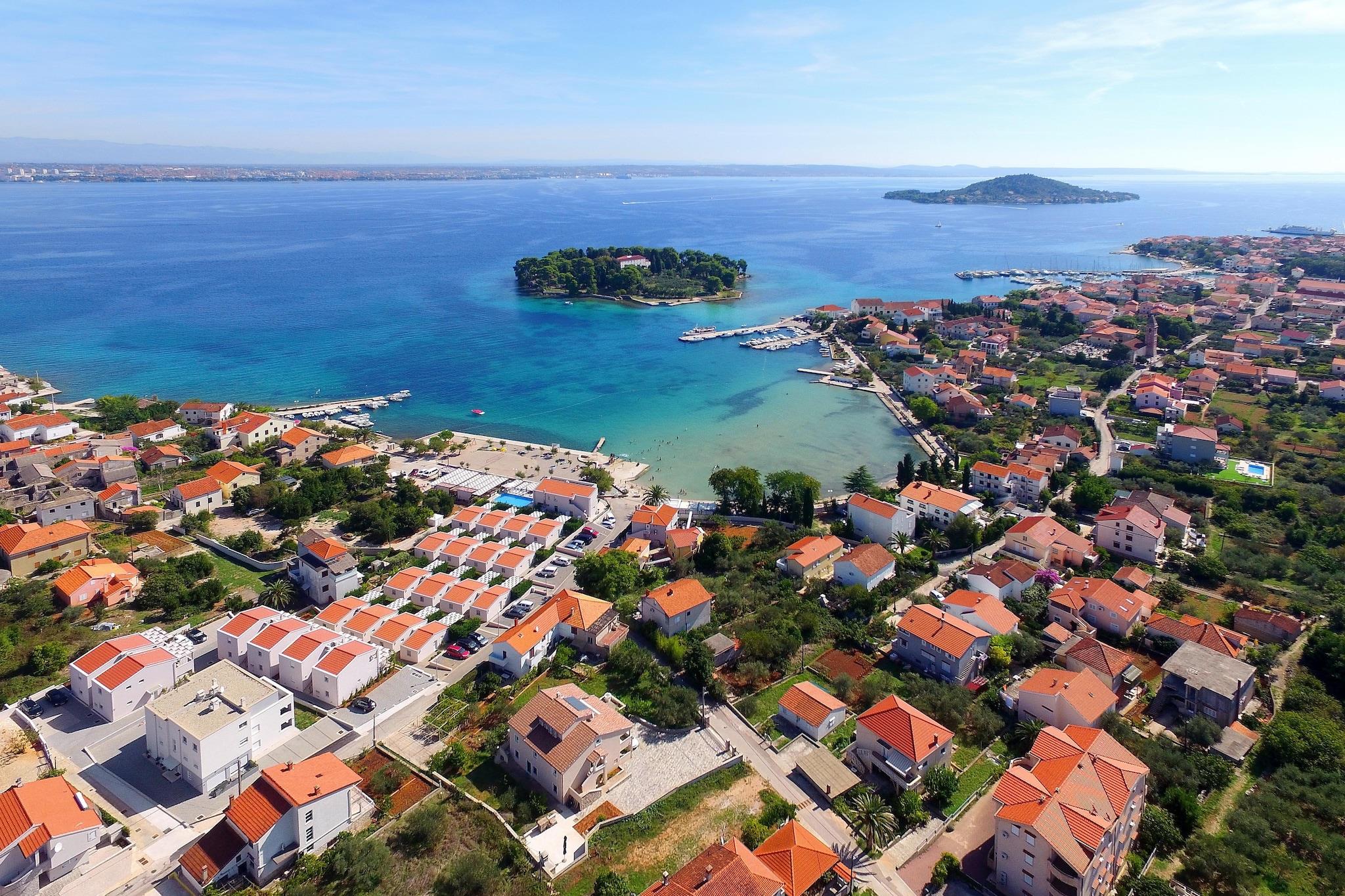 Moderne feriekompleks med komfortable lejligheder og stor fælles pool på øen Ugljan midt i øgruppen nær Zadar. Unik er den smukke beliggenhed direkte på stranden. De lyse, moderne lejligheder har alle WiFi og en smukt møbleret terrasse, hvor du kan tilbringe hyggelige aftener med dine kære. Hver lejlighed er i et enkelt hus. Havnen i Preko ligger midt på den idylliske ø Ugljan og er også en havn for færger fra Zadar. En livlig havn med restauranter og caféer, samt et væld af bygninger i dalmatisk stil og en smuk og meget ren sandstrand gør stedet så specielt. Detaljer: Forbrugsbaserede energiomkostninger, sengelinned, håndklæder, WiFi, registreringsgebyr. Aktiviteter i nærheden: Udover at bade og svømme i havet og i poolen, kan du dyrke forskellige sportsgrene såsom tennis, basketball og bordtennis. 20 officielle vandreruter fører dig tværs over øen, langs kysterne og også gennem det bakkede indre af øen. Derudover er der et veludbygget net af cykelstier. Naturligvis er vandsport meget vigtigt her: bådudlejning med kanoer og vandcykler, fiske- og fisketure, dykkercenter med dykkerskole og forskellige udflugter til de smukkeste dykkersteder. Ikke egnet til personer med nedsat mobilitet.