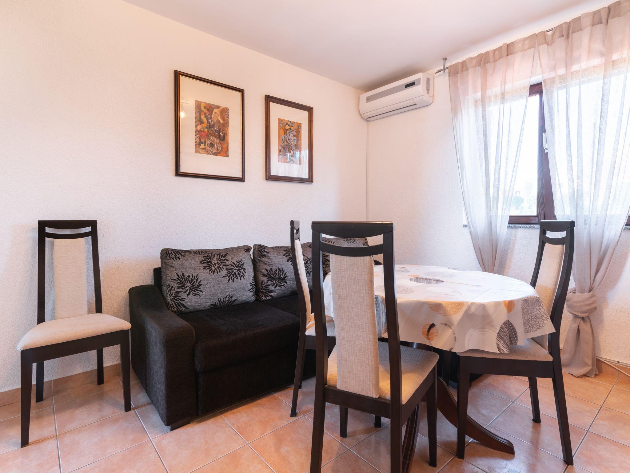 Ferienwohnung bietet Platz für 5 Gäste. Die Betten sind in Schlafzimmern, die es 3 gibt, innerhalb einer Gesamtfläche von 60m2, angeordnet. Die Gäste haben eine eigene Terrasse zur Verfügung, auf der sie in warmen Sommernächten genießen können. Das Apartment bietet Meerblick. Es ist erlaubt, Speisen auf dem Gemeinschafts-Grill vorzubereiten. IM PREIS INBEGRIFFEN: Kurtaxe, Endreinigung, Klimatisierung, Parkplatz, Internet, Wäschewaschen, Kinderbett, Zusatzbett, Bügeleisen, Bügelbrett, Föhn, Liegestühle. UNVERBINDLICHE ZUSÄTZLICHE KOSTEN: Boot (260,00 € pro Nacht), Fahrrad (20,00 € täglich (pro Stück)). Die Verfügbarkeit zusätzlicher Dienstleistungen in Ihrem reservierten Termin und die Preise derselben (falls nicht aufgeführt) müssen im Voraus überprüft werden. Zusätzliche Dienstleistungen die in der Zahlungsaufforderung nicht aufgeführt sind werden direkt beim Vermieter bezahlt, angenommen der Gast nutzt auch diese.