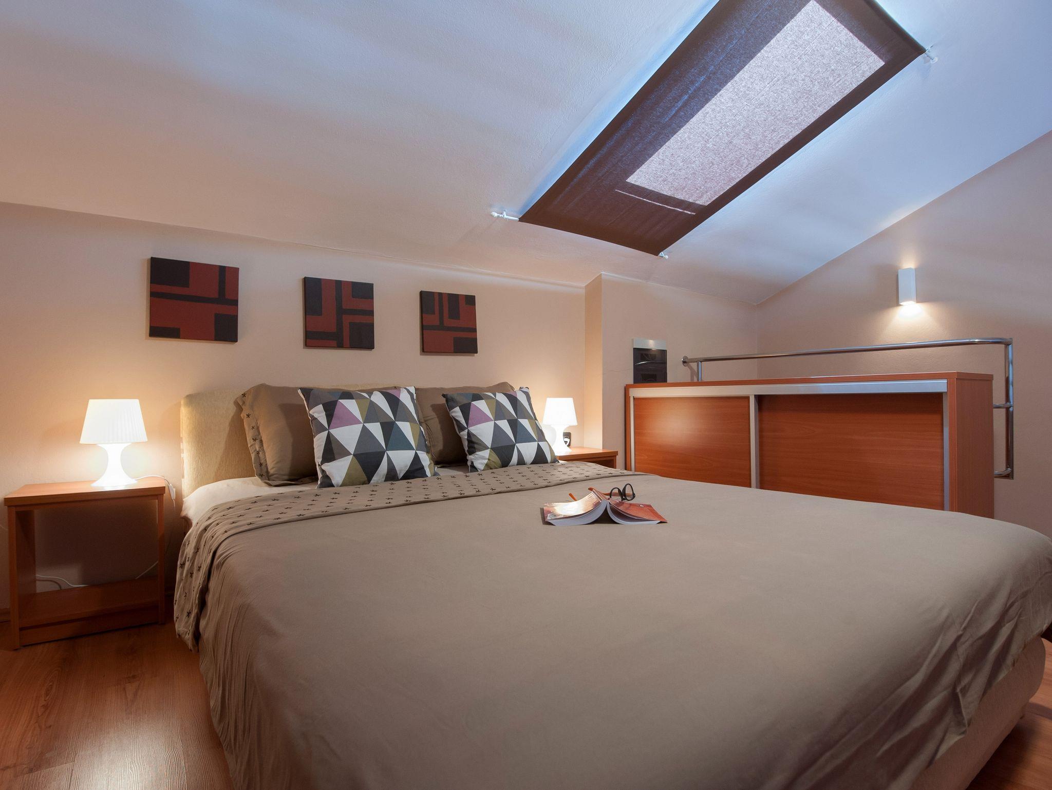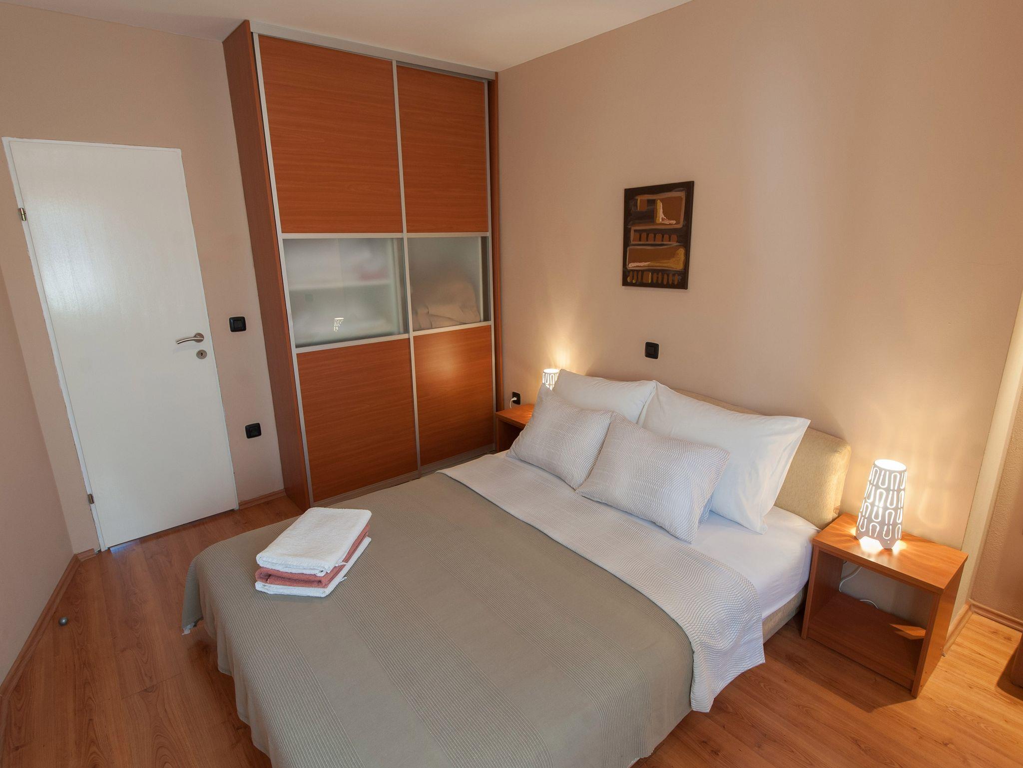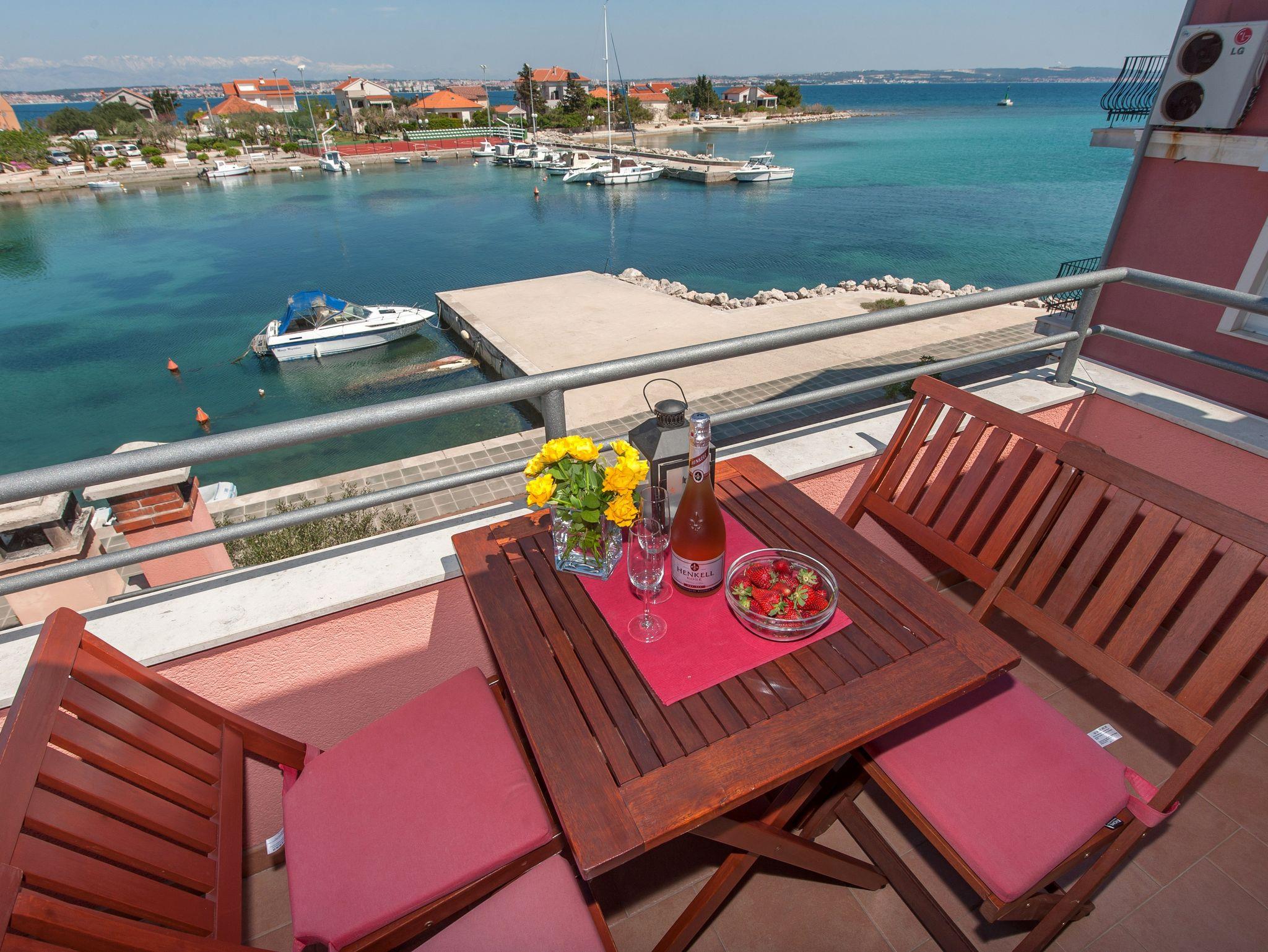 Ferienwohnung bietet Platz für 4 Gäste. Die Betten sind in Schlafzimmern, die es 2 gibt, innerhalb einer Gesamtfläche von 47m2, angeordnet. Die Gäste haben einen eigenen Balkon zur Verfügung, auf der sie in warmen Sommernächten genießen können. Das Apartment bietet Meerblick. Es ist erlaubt, Speisen auf dem Gemeinschafts-Grill vorzubereiten. IM PREIS INBEGRIFFEN: Kurtaxe, Endreinigung, Klimatisierung, Internet, Wäschewaschen, Bootsanlegeplatz, Kinderbett, Bügeleisen, Bügelbrett, Föhn. Die Verfügbarkeit zusätzlicher Dienstleistungen in Ihrem reservierten Termin und die Preise derselben (falls nicht aufgeführt) müssen im Voraus überprüft werden. Zusätzliche Dienstleistungen die in der Zahlungsaufforderung nicht aufgeführt sind werden direkt beim Vermieter bezahlt, angenommen der Gast nutzt auch diese.