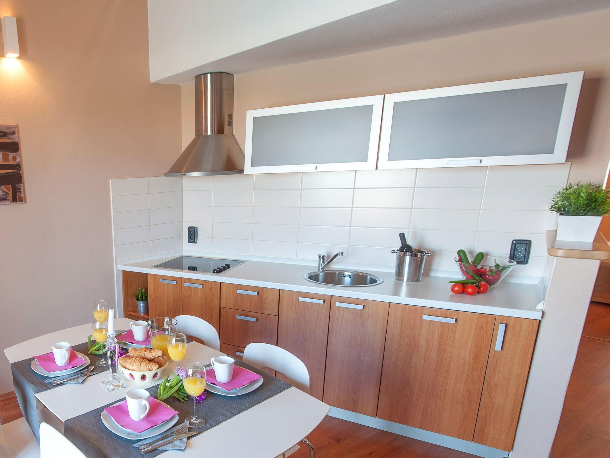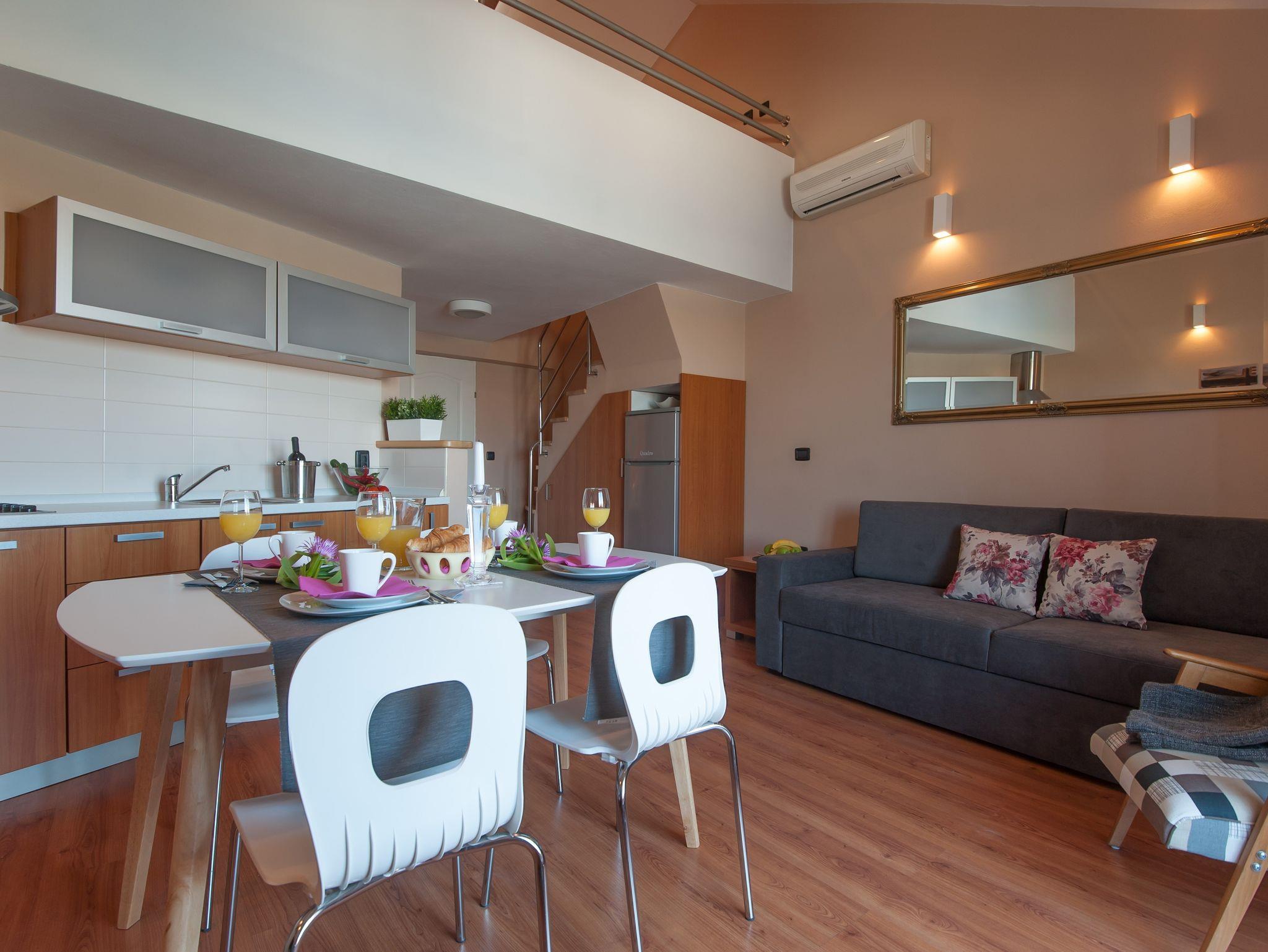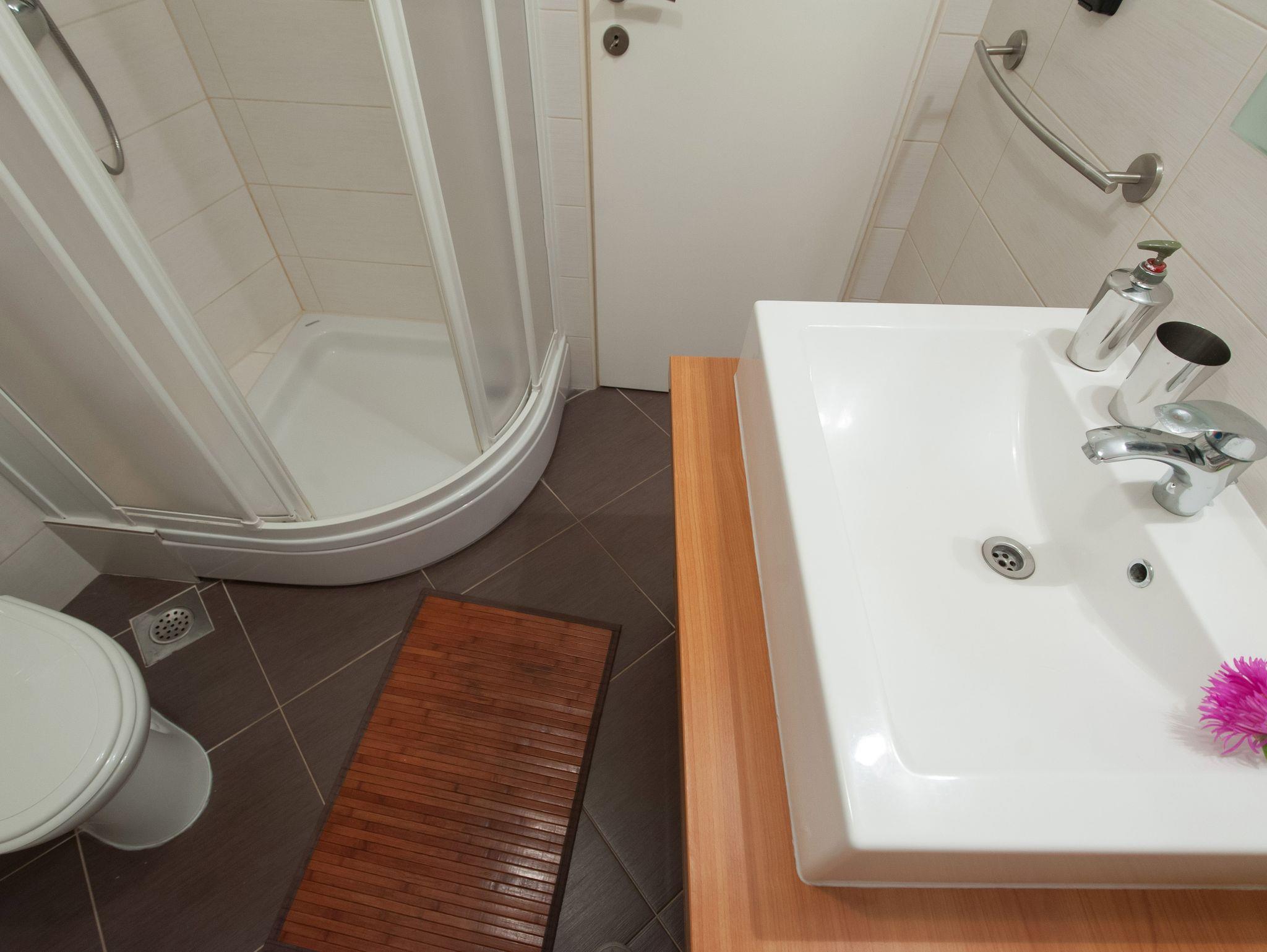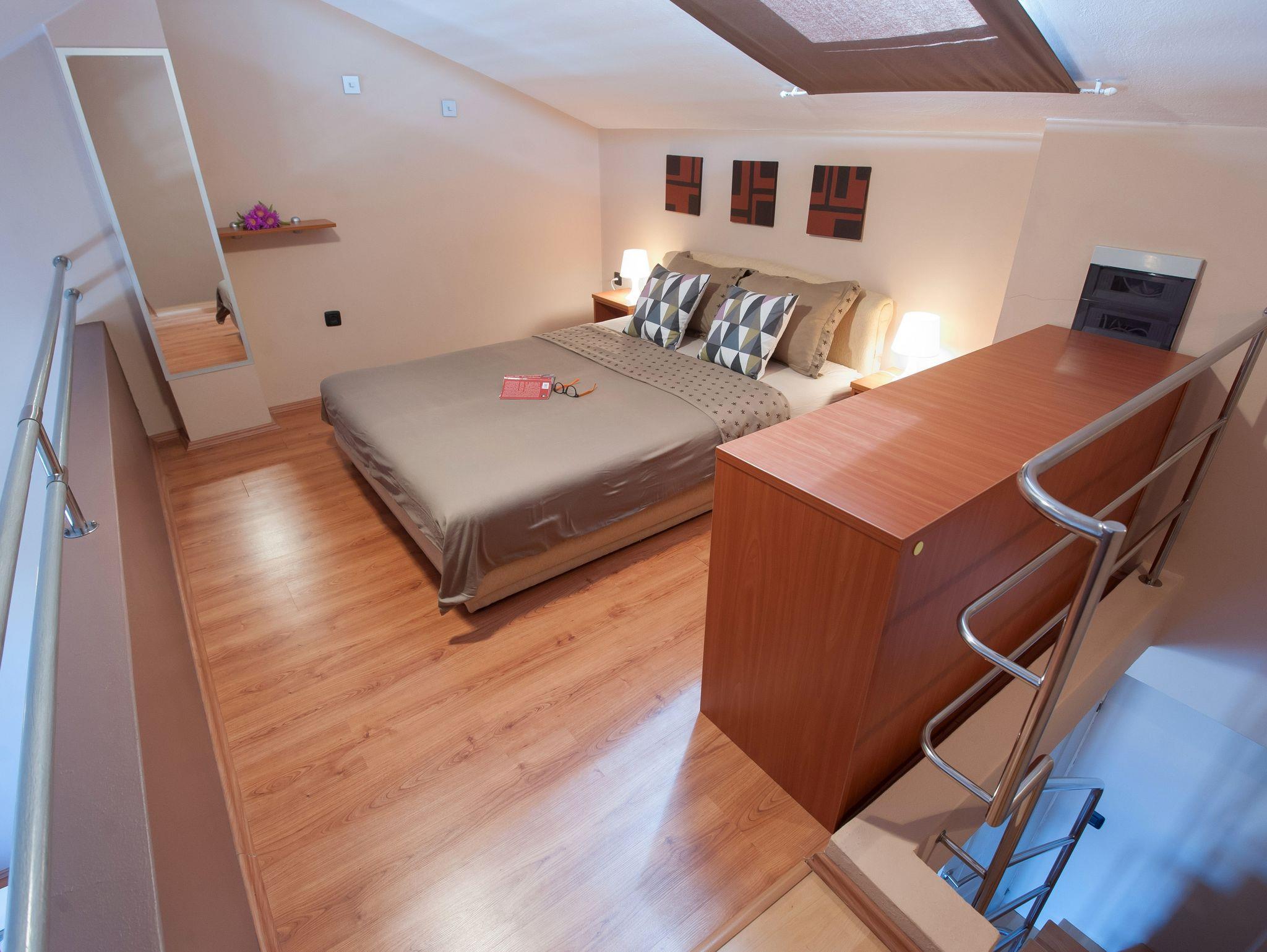 Ferienwohnung bietet Platz für 4 Gäste. Die Betten sind in Schlafzimmern, die es 2 gibt, innerhalb einer Gesamtfläche von 47m2, angeordnet. Die Gäste haben einen eigenen Balkon zur Verfügung, auf der sie in warmen Sommernächten genießen können. Das Apartment bietet Meerblick. Es ist erlaubt, Speisen auf dem Gemeinschafts-Grill vorzubereiten. IM PREIS INBEGRIFFEN: Kurtaxe, Endreinigung, Klimatisierung, Internet, Wäschewaschen, Bootsanlegeplatz, Kinderbett, Bügeleisen, Bügelbrett, Föhn. Die Verfügbarkeit zusätzlicher Dienstleistungen in Ihrem reservierten Termin und die Preise derselben (falls nicht aufgeführt) müssen im Voraus überprüft werden. Zusätzliche Dienstleistungen die in der Zahlungsaufforderung nicht aufgeführt sind werden direkt beim Vermieter bezahlt, angenommen der Gast nutzt auch diese.