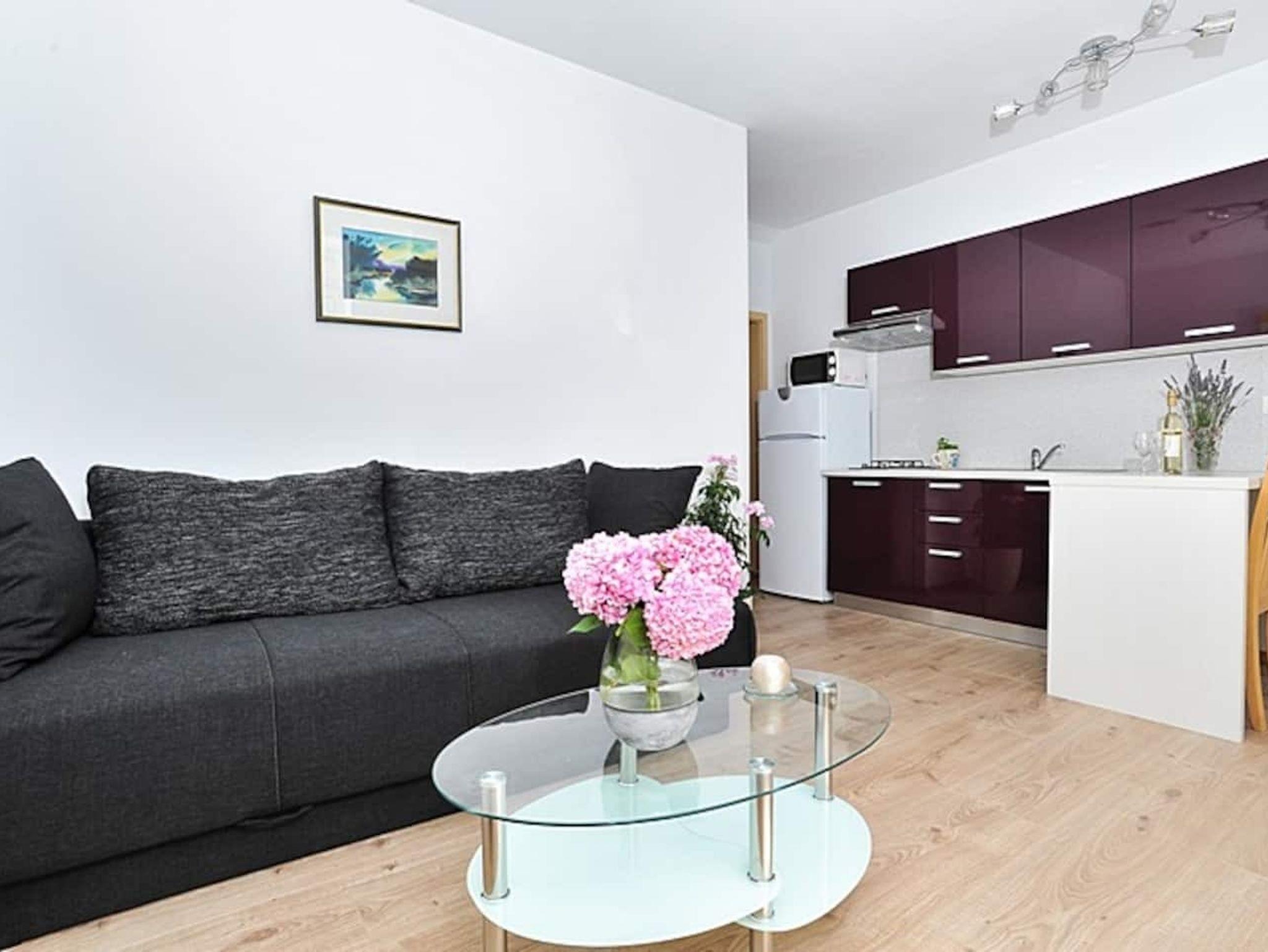 Ferienwohnung bietet Platz für 4 Gäste. Die Betten sind in Schlafzimmern, die es 1 gibt, und in Wohnzimmer, innerhalb einer Gesamtfläche von 39m2, angeordnet. Die Gäste haben eine eigene Terrasse zur Verfügung, auf der sie in warmen Sommernächten genießen können. Das Apartment bietet Meerblick. Es ist erlaubt, Speisen auf dem Gemeinschafts-Grill vorzubereiten. IM PREIS INBEGRIFFEN: Kurtaxe, Endreinigung, Klimatisierung, Parkplatz, Internet, Wäschewaschen, Kinderbett, Bügeleisen, Föhn. VERBINDLICHE ZUSÄTZLICHE KOSTEN: Aufzahlung für Kurzaufenthalte (prozentualer Zuschlag pro Nächtigungsanzahl: 30% - 1, 20% - 2, 10% - 3). UNVERBINDLICHE ZUSÄTZLICHE KOSTEN: Bootsanlegeplatz (20,00 € pro Nacht). Die Verfügbarkeit zusätzlicher Dienstleistungen in Ihrem reservierten Termin und die Preise derselben (falls nicht aufgeführt) müssen im Voraus überprüft werden. Zusätzliche Dienstleistungen die in der Zahlungsaufforderung nicht aufgeführt sind werden direkt beim Vermieter bezahlt, angenommen der Gast nutzt auch diese. Ermäßigung auf den Grundpreis: Gratistag 14=13 (bei einem Aufenthalt von 14 Tagen oder mehr erhalten Sie einen Gratistag für den Aufenthalt bis 31.12.26).