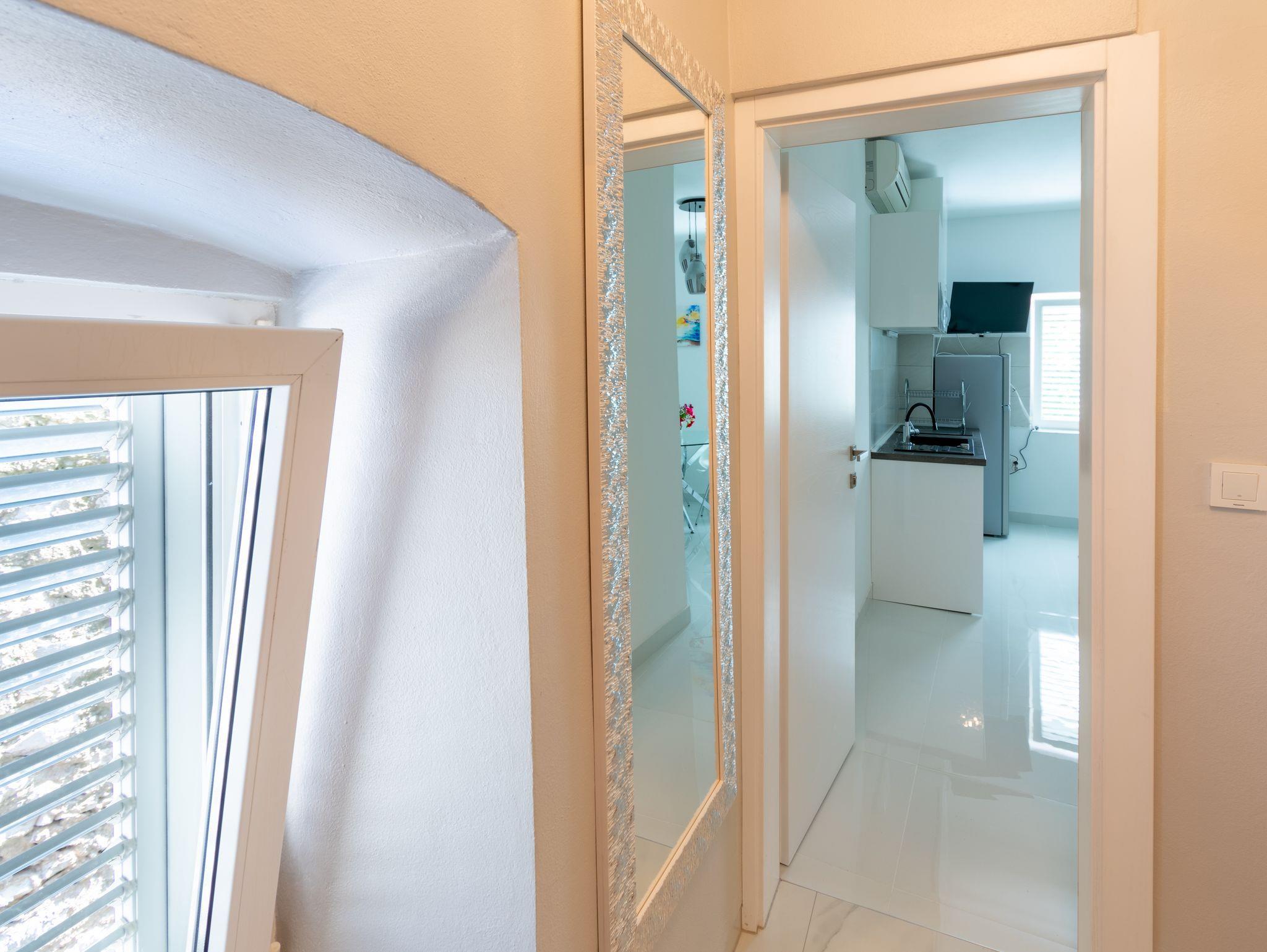 Ferienwohnung bietet Platz für 5 Gäste. Die Betten sind in Schlafzimmern, die es 2 gibt, innerhalb einer Gesamtfläche von 31m2, angeordnet. Das Apartment bietet Meerblick. Es ist erlaubt, Speisen auf dem Gemeinschafts-Grill vorzubereiten. Die reservierte Unterkunftseinheit verfügt über einen gemeinsame Terrasse. IM PREIS INBEGRIFFEN: Kurtaxe, Endreinigung, Klimatisierung, Internet, Wäschewaschen, Bootsanlegeplatz, Bügeleisen, Bügelbrett, Föhn. VERBINDLICHE ZUSÄTZLICHE KOSTEN: Aufzahlung für Kurzaufenthalte (prozentualer Zuschlag pro Nächtigungsanzahl: 30% - 1, 20% - 2, 10% - 3). Die Verfügbarkeit zusätzlicher Dienstleistungen in Ihrem reservierten Termin und die Preise derselben (falls nicht aufgeführt) müssen im Voraus überprüft werden. Zusätzliche Dienstleistungen die in der Zahlungsaufforderung nicht aufgeführt sind werden direkt beim Vermieter bezahlt, angenommen der Gast nutzt auch diese.