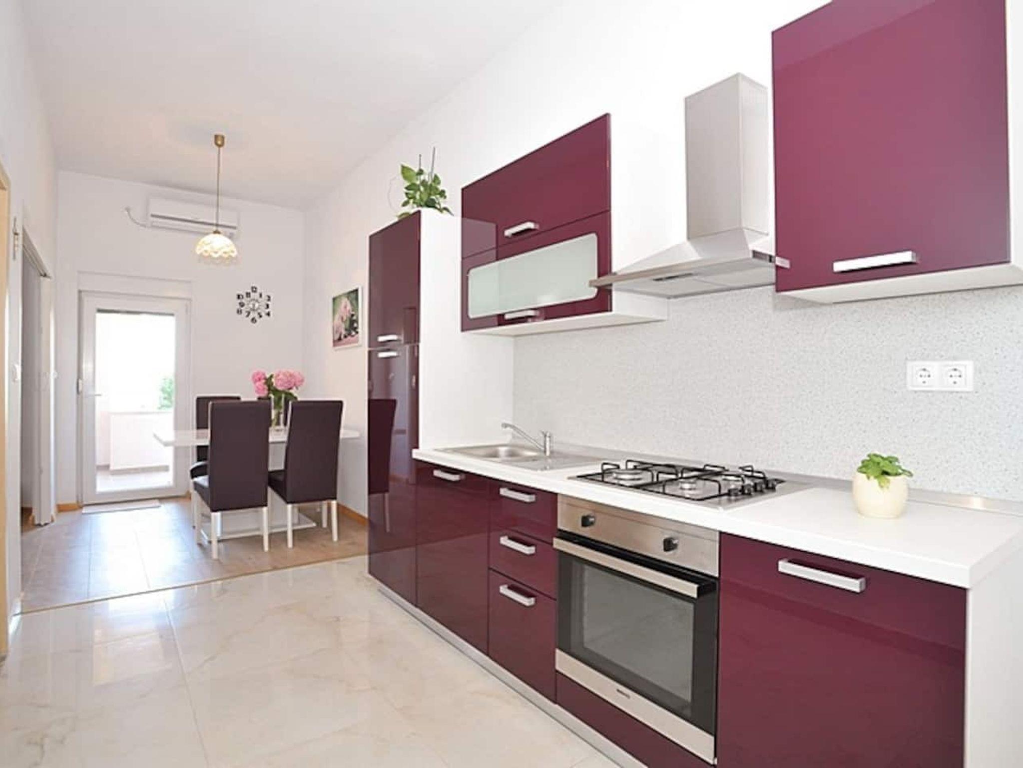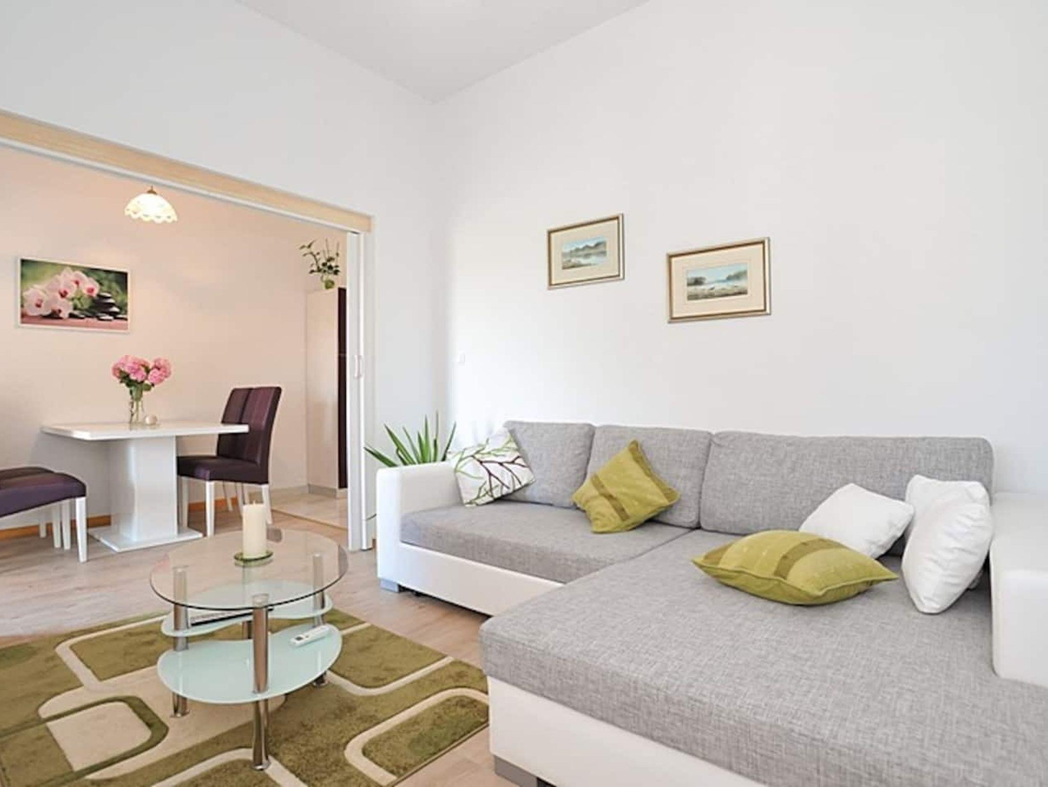 Ferienwohnung bietet Platz für 4 Gäste. Die Betten sind in Schlafzimmern, die es 1 gibt, und in Wohnzimmer, innerhalb einer Gesamtfläche von 45m2, angeordnet. Die Gäste haben eine eigene Terrasse zur Verfügung, auf der sie in warmen Sommernächten genießen können. Es ist erlaubt, Speisen auf dem Gemeinschafts-Grill vorzubereiten. IM PREIS INBEGRIFFEN: Kurtaxe, Endreinigung, Klimatisierung, Parkplatz, Internet, Wäschewaschen, Kinderbett, Bügeleisen, Föhn. VERBINDLICHE ZUSÄTZLICHE KOSTEN: Aufzahlung für Kurzaufenthalte (prozentualer Zuschlag pro Nächtigungsanzahl: 30% - 1, 20% - 2, 10% - 3). UNVERBINDLICHE ZUSÄTZLICHE KOSTEN: Bootsanlegeplatz (20,00 € pro Nacht). Die Verfügbarkeit zusätzlicher Dienstleistungen in Ihrem reservierten Termin und die Preise derselben (falls nicht aufgeführt) müssen im Voraus überprüft werden. Zusätzliche Dienstleistungen die in der Zahlungsaufforderung nicht aufgeführt sind werden direkt beim Vermieter bezahlt, angenommen der Gast nutzt auch diese. Ermäßigung auf den Grundpreis: Gratistag 14=13 (bei einem Aufenthalt von 14 Tagen oder mehr erhalten Sie einen Gratistag für den Aufenthalt bis 31.12.26).