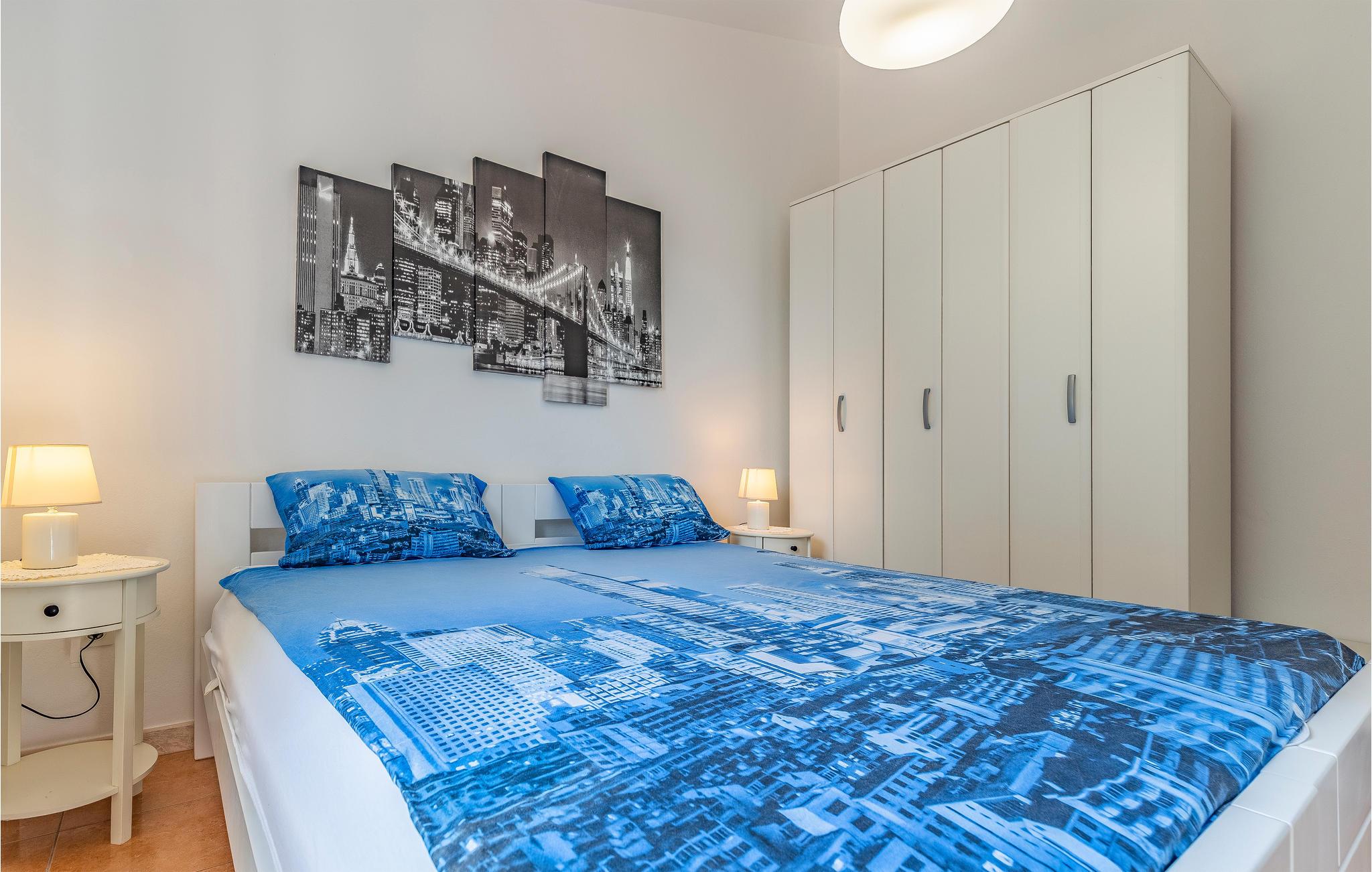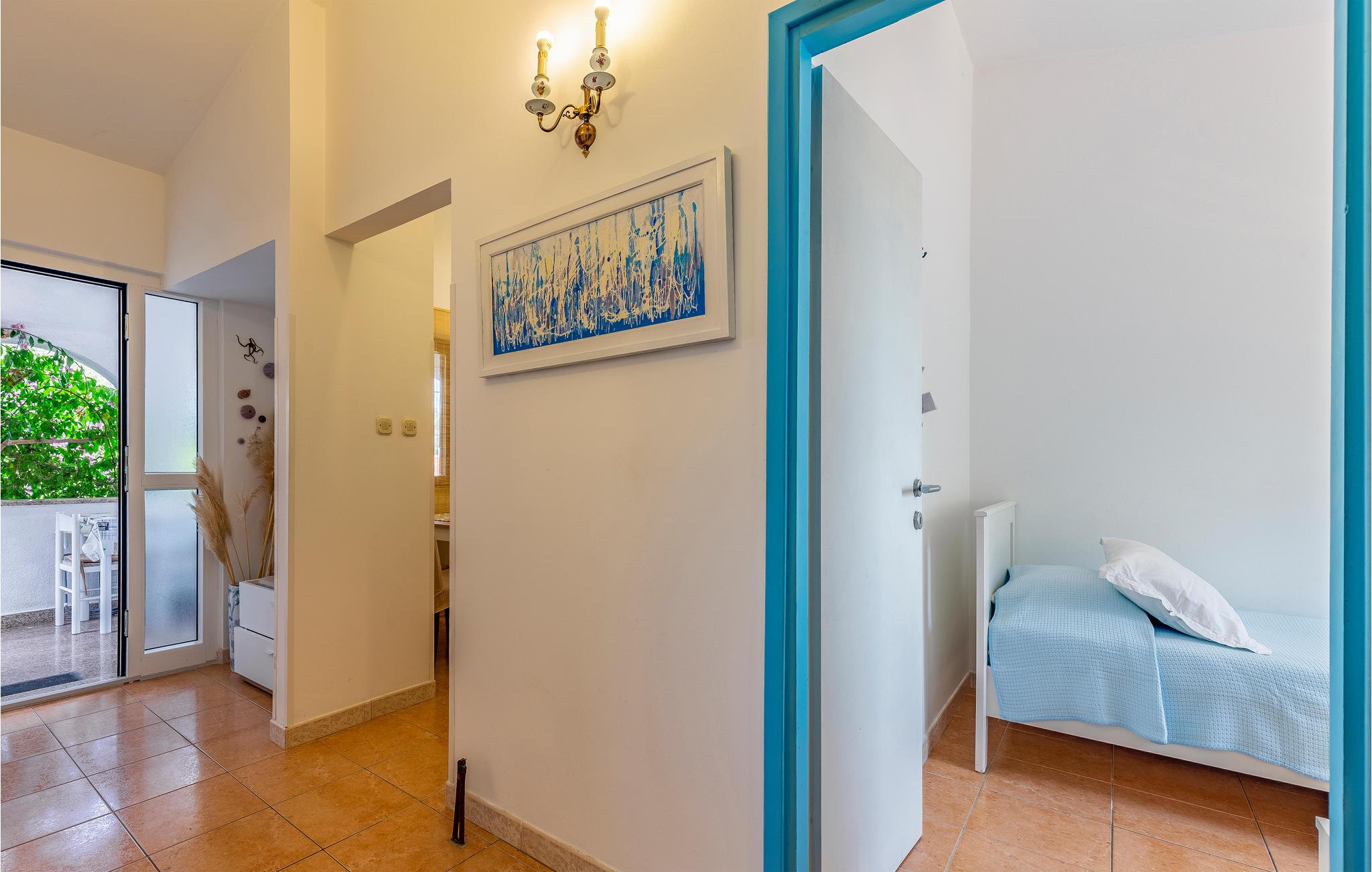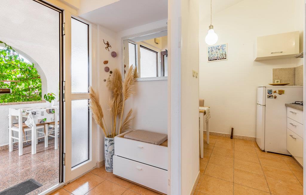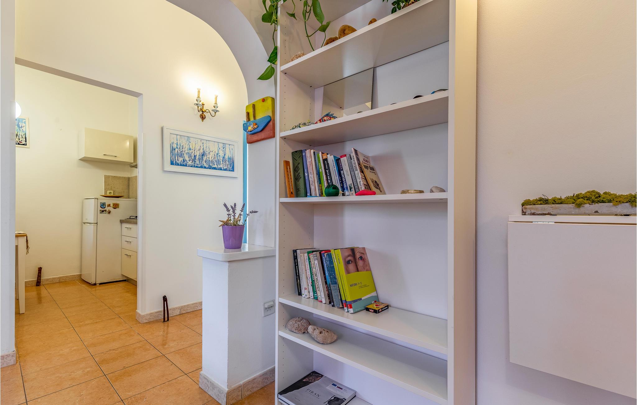 Jeres ferie i det sydligste Istrien begynder her. Den skønne ferielejlighed på 1. sal tilbyder jer alt, hvad I kan ønske jer af jeres badeferie. Tidløs indretning med dekorative elementer skaber en indbydende atmosfære. Den overdækkede terrasse tilbyder jer en vidunderlig ramme for at spise jeres morgenmad i den friske luft, omgivet af blomstrende planter. Planlæg med jeres familie, hvilken af de mange strande I vil udforske den dag. Den nærmeste strand ligger omkring 500 m væk.