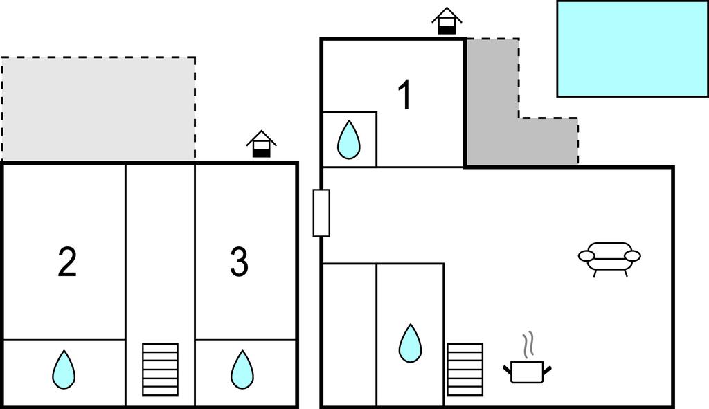 Stueetagen har en rummelig stue og et køkken, hvorfra I kan komme ind i haven med pool og sommerkøkken, som er ideel til hyggelige grillstunder. Der er også et soveværelse med et badeværelse og et toilet i stueetagen, mens der er to rummelige soveværelser med et badeværelse på første sal.