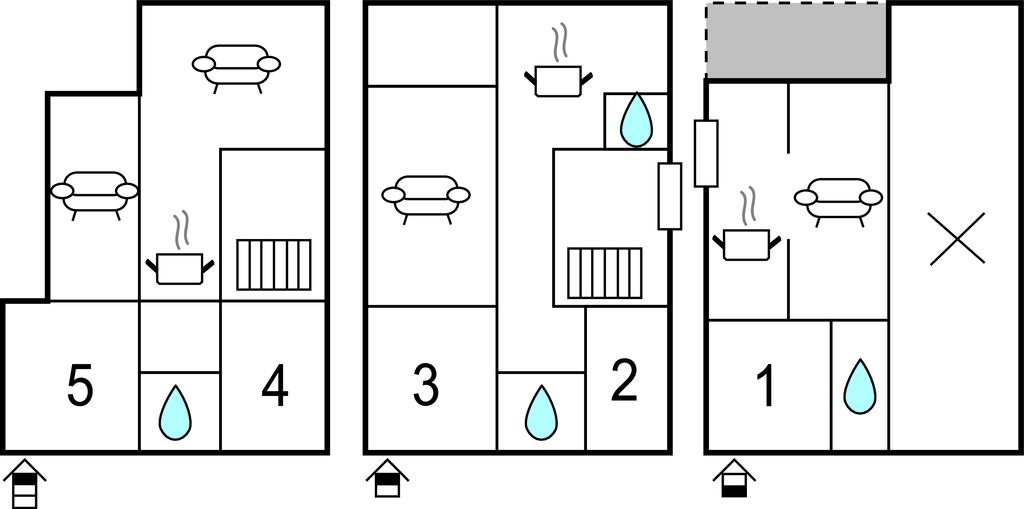 Badeværelse 4m2 (nr. 3) - WC. Varmt og koldt vand. Bruser