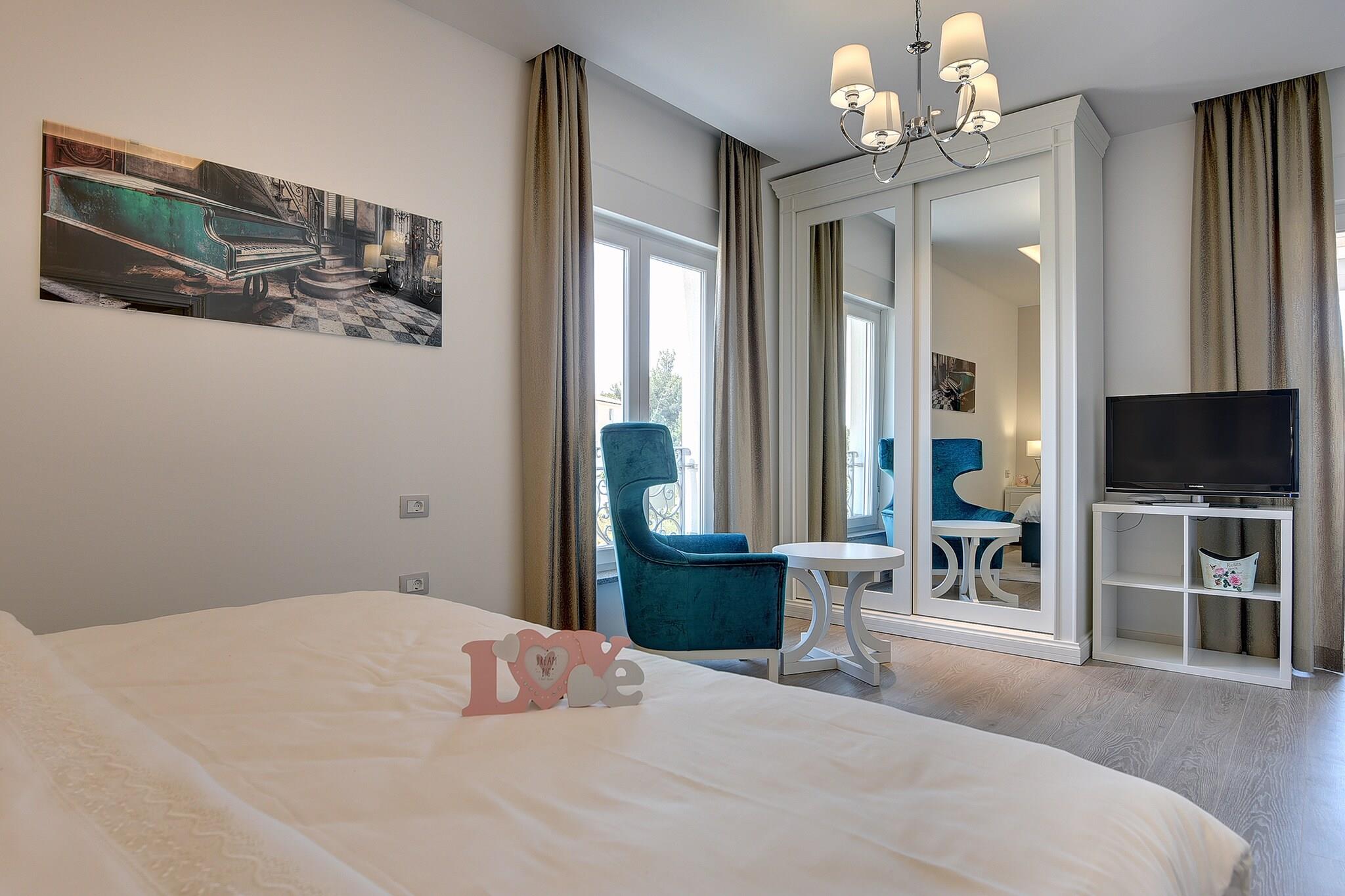 Villa Dream med privat pool ligger i det sydligste punkt i Istrien, i landsbyen Premantura. Du bor inden for gåafstand af restauranter og et par butikker og ikke langt fra de smukke strande i Kamenjak Nature Park. Den historiske by Pula med et hyggeligt centrum og med monumenter fra romertiden ligger 10 km væk. Du har et indhegnet grund med swimmingpool, solterrasse og liggestole samt en overdækket terrasse med bordfodbold, spisebord og grill på din Indvendigt i denne villa er der lyse farver og farverige møbler. I stueetagen finder du en stue med opholdsområde, spisebord og billard, et veludstyret køkken, et soveværelse med eget badeværelse og et fitnessrum. På første sal er der tre soveværelser med eget badeværelse og en privat balkon.