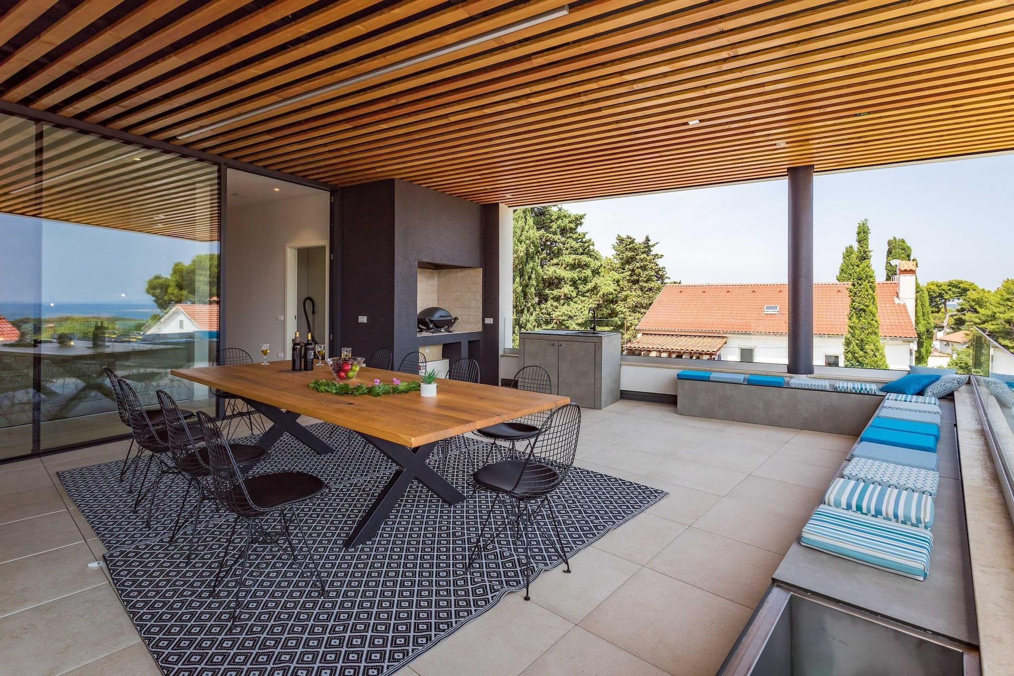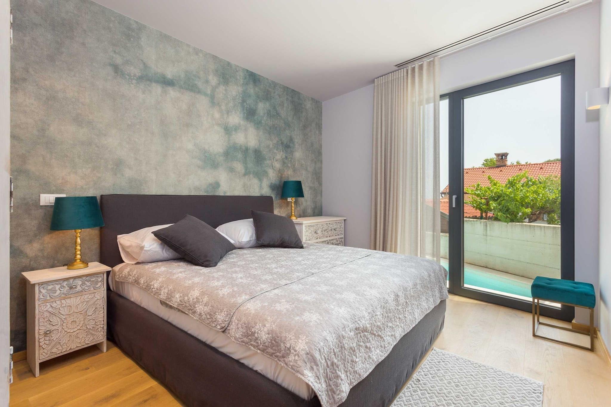 Oplev et fantastisk hus med tre soveværelser beliggende i den pulserende landsby Premantura, med en betagende havudsigt i hele ejendommen. Denne arkitektoniske perle tilbyder gæsterne en privat swimmingpool, der giver mulighed for afslapning, mens du nyder de maleriske omgivelser. Stueetagen indeholder tre rummelige soveværelser, hver med eget badeværelse, hvilket sikrer komfort og privatliv for alle besøgende. En smuk trappe fører til et åbent koncept opholdsområde, der kan prale af et loungeområde, et stort køkken med spiseplads og en ekspansiv terrasse til udendørs spisning midt i den forfriskende havbrise. Bekvemmelighed er nøglen, med privat parkering til to biler inkluderet, samt gratis Wi-Fi og aircondition. For familier, der rejser med spædbørn, er en barneseng tilgængelig uden ekstra gebyr efter anmodning. Dette indbydende hjem er ideelt beliggende kun 50 meter fra hjertet af Premantura, hvor du kan udforske lokale markeder med friske råvarer, charmerende bagerier og dejlige restauranter. Talrige udendørs aktiviteter venter, herunder cykel-, kajak- og bådudlejning, samt organiserede ture til den nærliggende Cape Kamenjak for en dag med eventyr. Premantura er en malerisk, men livlig destination i sommermånederne, omgivet af uspoleret natur og tilbyder en række spisemuligheder. Området kan prale af over 500 plantearter, herunder nogle, der er truede eller endemiske. Gæsterne kan nyde det krystalklare hav sammen med lokale cykelstier og adgang til Munte-stranden, Runke-stranden og Camp Stupice, alle kun en kort 500 meter væk. Med Pula Lufthavn beliggende kun 6 kilometer væk, er dette charmerende hus den perfekte base for en uforglemmelig ferie i fantastiske naturlige omgivelser.