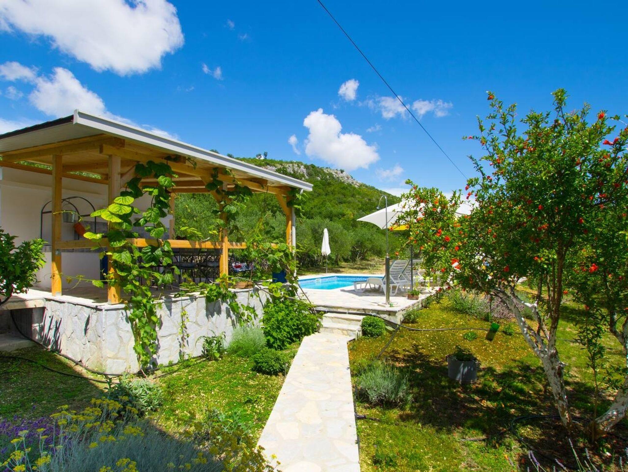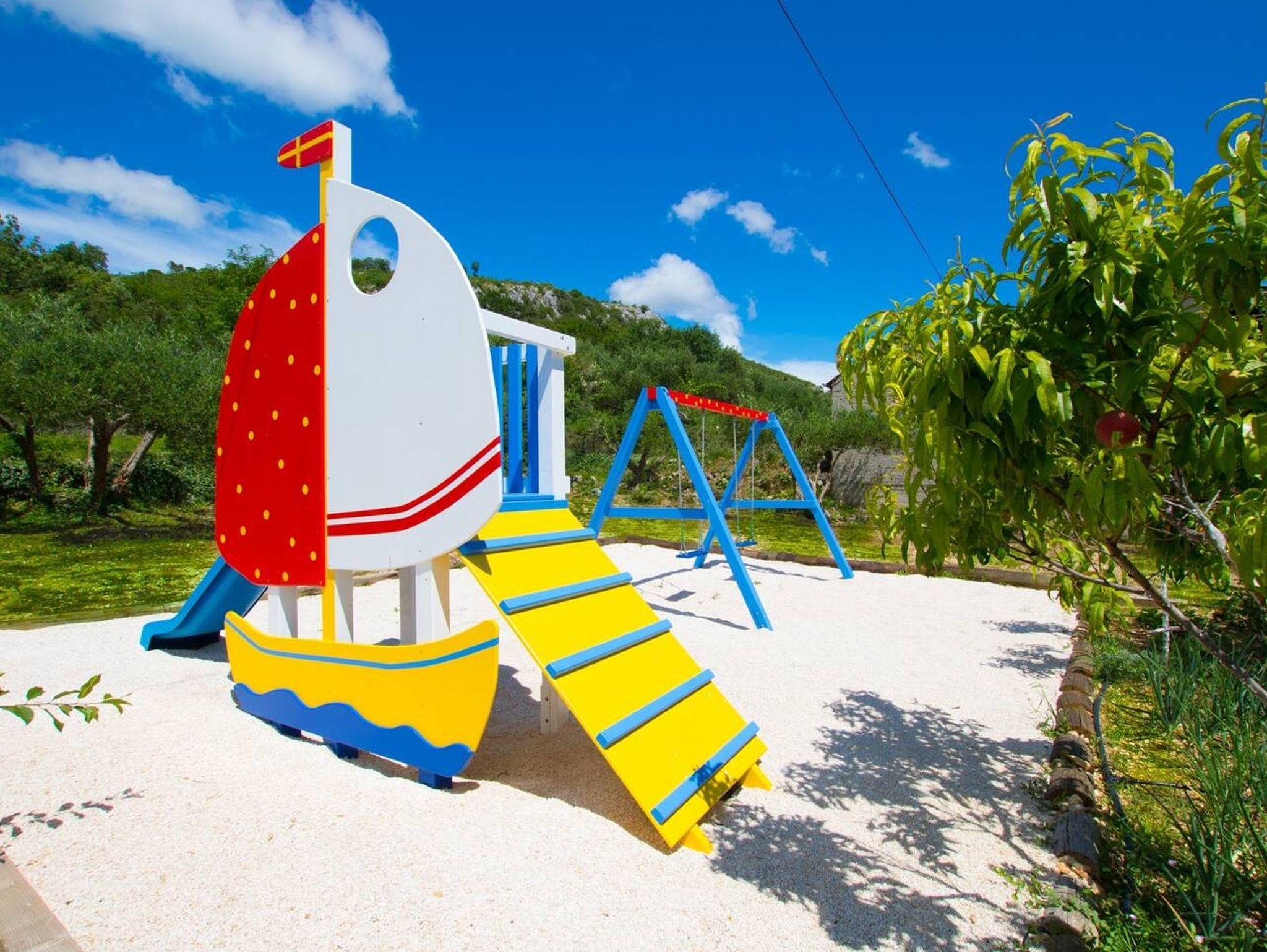 Umgebung des Objekts (Eingerichtet), Hof (1000m2, Kinderbereich, Sitzbereich), Parkplatz (Anzahl der Parkplätze: 6, Entfernung vom Objekt: im Hof), Pool: gemeinsam, Dimensionen: 7.5m x 3.5m x 1.6m, Wassertyp: Süßwasser, WiFi Internet, Föhn, Bügeleisen, Bügelbrett, Sonnenschirm, Liegestühle, Kinderbett