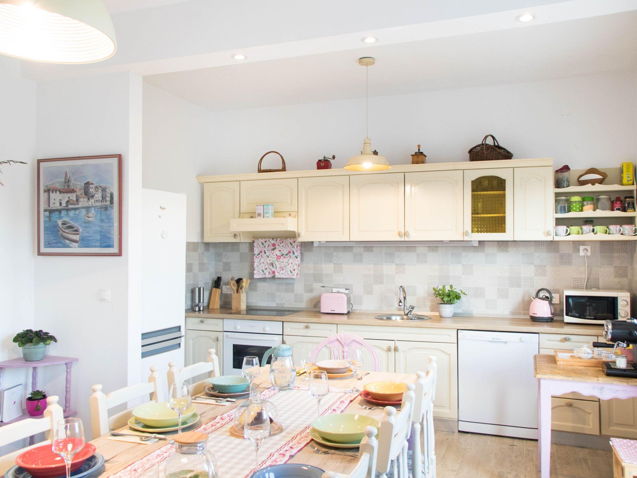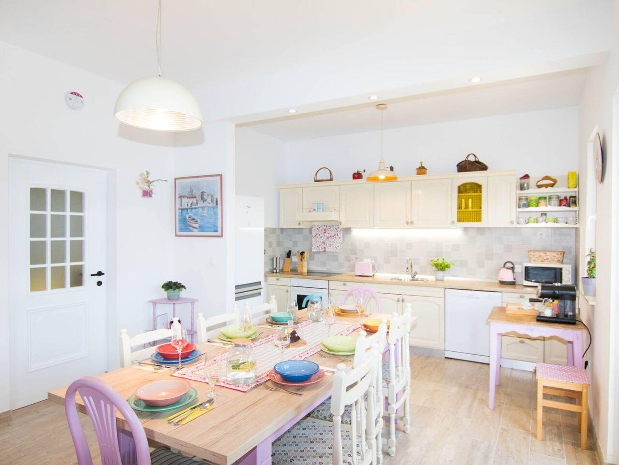 Haus bietet Platz für 10 Gäste. Die Betten sind in Schlafzimmern, die es 5 gibt, innerhalb einer Gesamtfläche von 170m2, angeordnet. Die Gäste haben eine eigene Terrasse zur Verfügung, auf der sie in warmen Sommernächten genießen können. Das Haus bietet Meerblick. Für vollen Genuss und Entspannung gibt es einen privaten Grill für Gäste dieser Unterkunft. Während ihres Aufenthalts können Gäste das gemeinsam zur Nutzung stehende Schwimmbad benutzen. IM PREIS INBEGRIFFEN: Kurtaxe, Endreinigung, Klimatisierung, Pool, Parkplatz, Internet, Kinderbett, Bügeleisen, Bügelbrett, Föhn, Sonnenschirm, Liegestühle. UNVERBINDLICHE ZUSÄTZLICHE KOSTEN: Zusatzbett (100,00 € pro Nacht). Die Verfügbarkeit zusätzlicher Dienstleistungen in Ihrem reservierten Termin und die Preise derselben (falls nicht aufgeführt) müssen im Voraus überprüft werden. Zusätzliche Dienstleistungen die in der Zahlungsaufforderung nicht aufgeführt sind werden direkt beim Vermieter bezahlt, angenommen der Gast nutzt auch diese. Ermäßigung auf den Grundpreis: Gratistag 21=19 (bei einem Aufenthalt von 21 Tagen oder mehr erhalten Sie 2 Gratistage für den Aufenthalt bis 31.12.26).