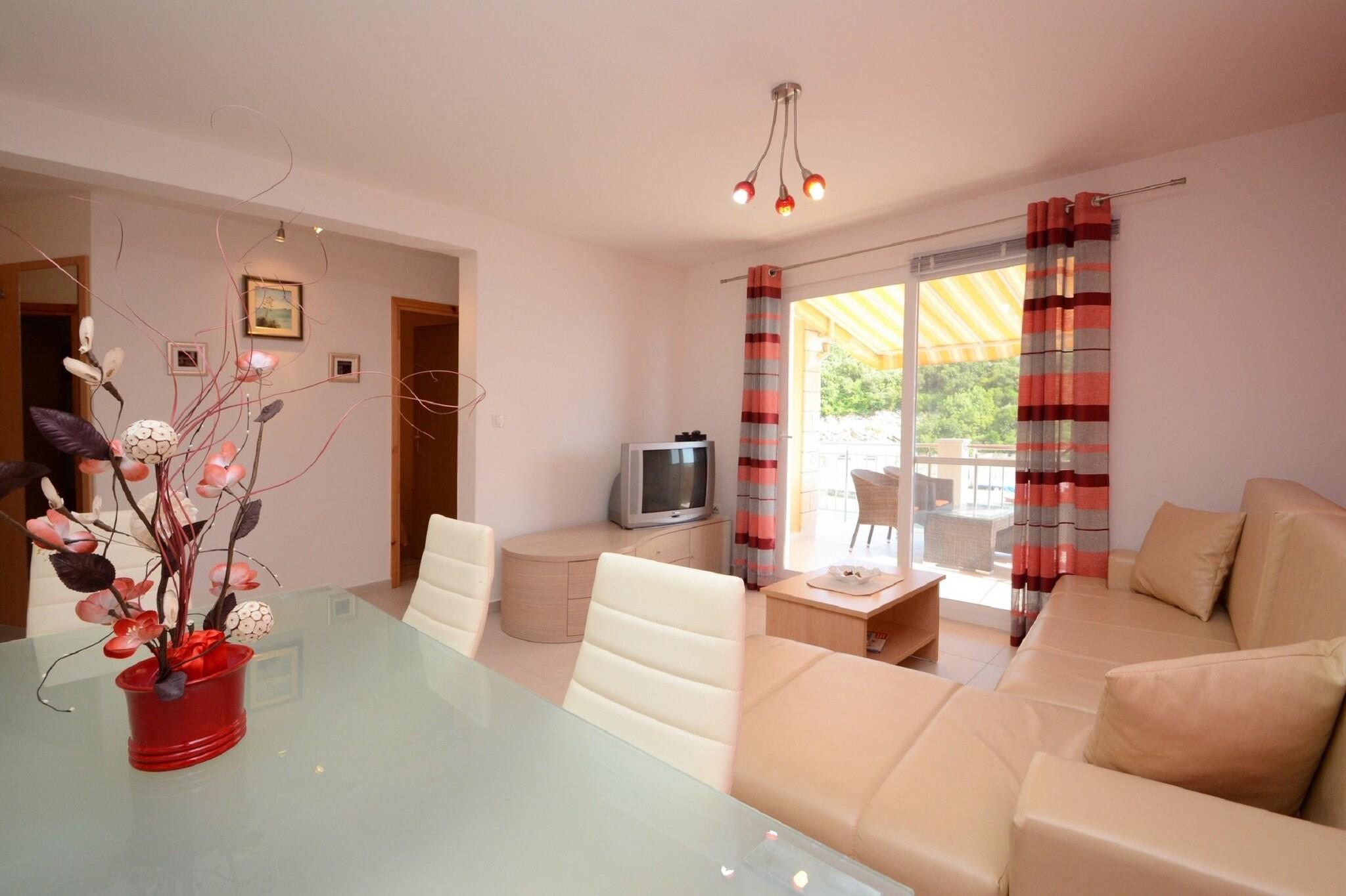 Apartments Korcula er indkvartering med egen forplejning beliggende i Prižba på øen Korcula. Ejendommen har 4 boligenheder.Privat parkering er til rådighed, reservation er ikke påkrævet.Denne toværelses lejlighed har egen indgang og er beliggende på øverste etage. Det har opholdsområde med opholdsområde og fladskærms-satellit-tv. Køkkenet har ovn, komfur, køleskab, kedel, kaffemaskine, opvaskemaskine, mikroovn og spiseplads. Badeværelset har bruser, hårtørrer, sæbe og toiletpapir. Sengelinned og håndklæder leveres, så som gratis WiFi og aircondition. Lejligheden har terrasse med havudsigt. Apartments Korcula ligger kun 5 meter fra havet på øen Korcula. Øen Korcula er en af de grønneste øer i Adriaterhavet, med rigelige vinmarker og olivenlunde. Dens sydlige kyst er dannet af små strande og stille bugter. Den nærmeste strand ligger 100 m fra ejendommen. Den nærmeste restaurant ligger i stueetagen af overnatningsstedet. Marked og bar ligger 1 km fra ejendommen. Det nærmeste apotek ligger 7 km væk.Den nærmeste busstation ligger 7 km væk.