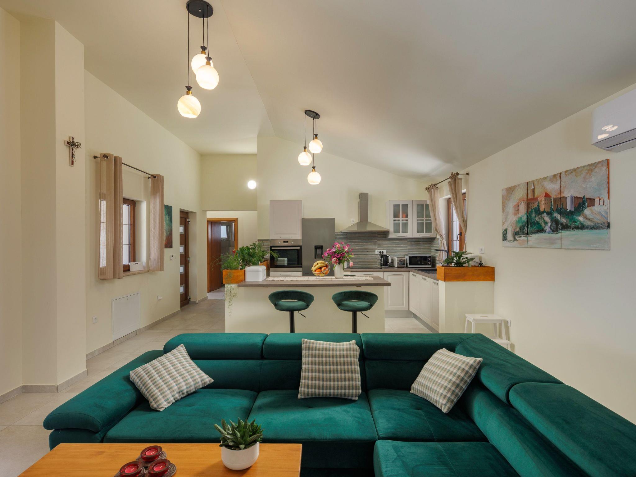 Inside the house, you will find carefully thought-out furnishings to make your stay as comfortable as possible. The air conditioning ensures pleasant temperatures in all rooms, no matter how hot the Dalmatian summer gets.