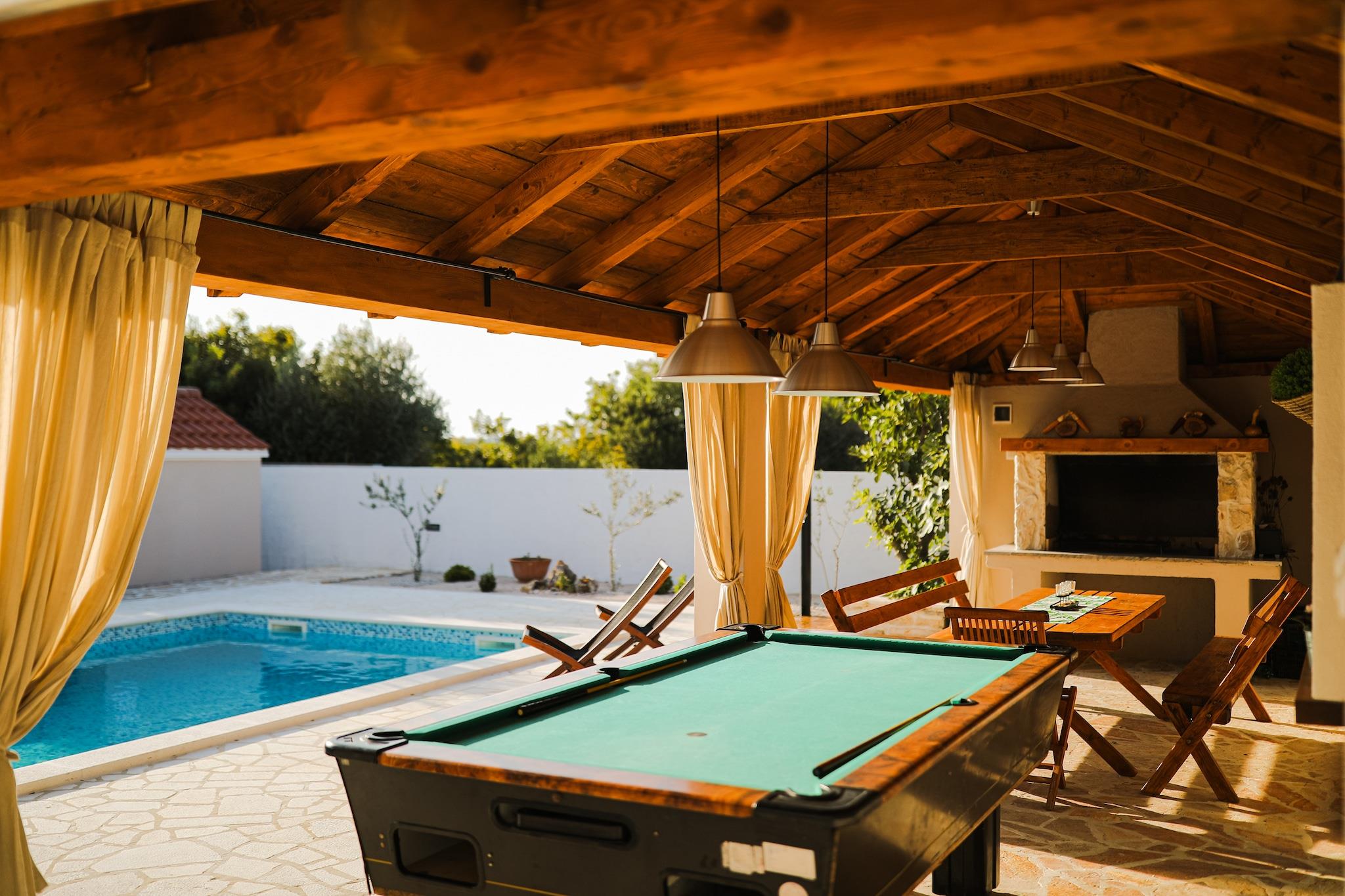 Villa Barka er beliggende i Pridraga, stor landsby kun 35 km fra den gamle by Zadar. Bygget i middelhavsstil ud af traditionelle materialer som sten og træ kan dette hus rumme op til 7 personer. Smuk Villa og dens indhegnet have giver sine gæster meget tiltrængt fred og privatliv. Rummelig stueetagen villa har charmerende stue / spisestue med dejligt åbent køkken, 3 rummelige soveværelser og 3 moderne badeværelser. Nice indhegnet have med smuk overdækket terrasse og 32m privat swimmingpool er simpelthen det perfekte sted for dine afslappende øjeblikke! L I nærheden af swimmingpoolen har du en god grill og billard. Parkering er til rådighed for dig foran huset. I afstand på mindre end 300m er der restauranter, købmandsforretninger og bageri.Du kan nå Adriaterhavet på få minutter, da den nærmeste stenstrand er kun 1,8 km fra dit hjem. Under en 45 minutters kørsel kan du besøge to nationalparker: Krka vandfald og Paklenica. Daglige udflugter til Kornati National Park er organiseret fra Zadar, som også er et attraktivt turistmål værd at besøge for sine gamle kirker, interessante museer og gode restauranter.