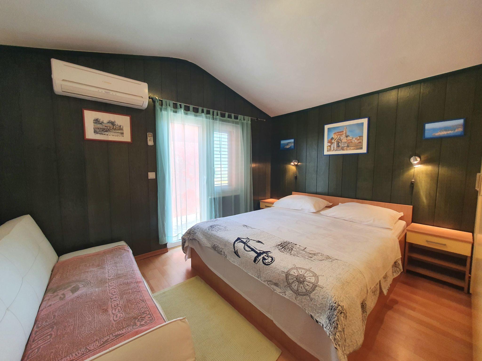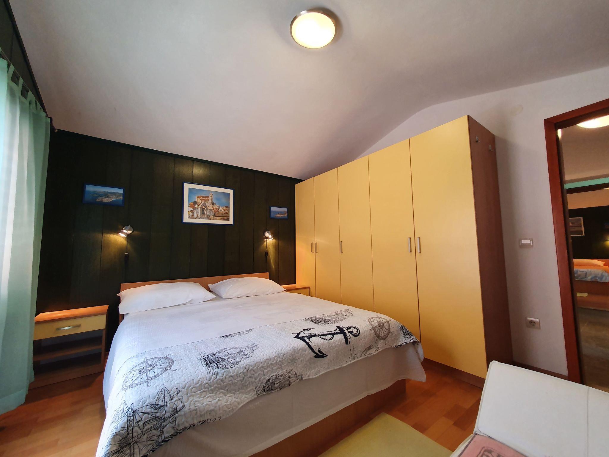 "Mali Ive", 4-room apartment 85 m2 on 1st floor. Living/dining room with satellite TV and air conditioning. Exit to the balcony. 2 rooms, each room with 1 double bed and air conditioning. Exit to the balcony. 1 room with 1 double bed and air conditioning. Open kitchen (2 hot plates, oven, dishwasher, 2 gas rings, toaster, kettle, freezer, electric coffee machine). 2 showers/WC. No heating option. 2 balconies 10 m2. Balcony furniture, deck chairs. View of the sea. Facilities: washing machine. Internet (WiFi, free). Please note: maximum 2 pets/ dogs allowed. Private entrance.